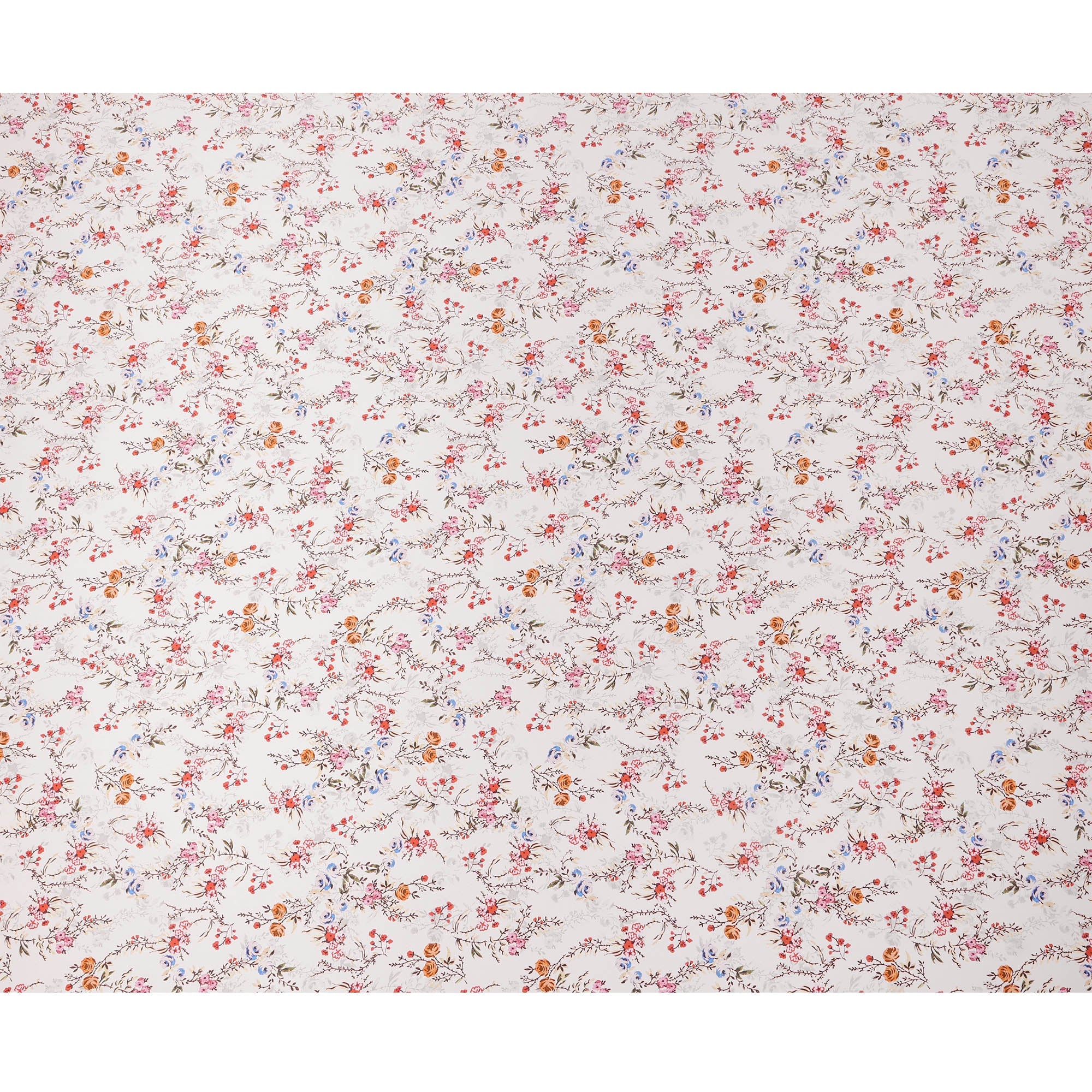 قاعدة بيضاء اللون مزينة بطبعة زهور صغيرة بألوان الأحمر والأزرق والبيج