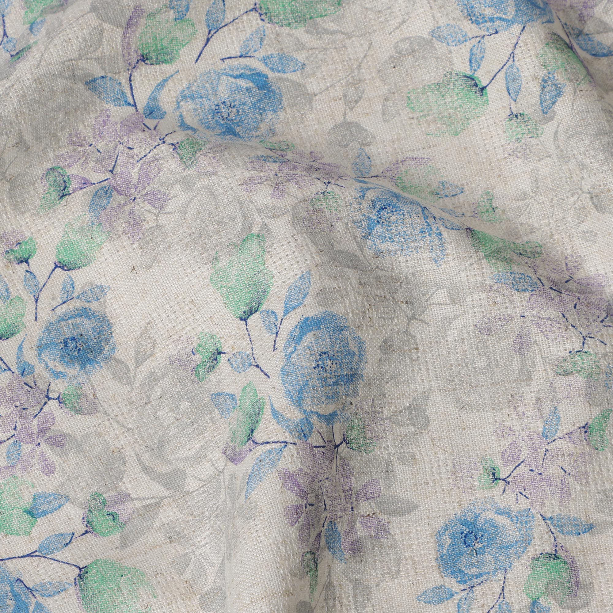 قماش كريب حريري مع زخارف نباتية زرقاء وأرجوانية مطبوعة رقميًا