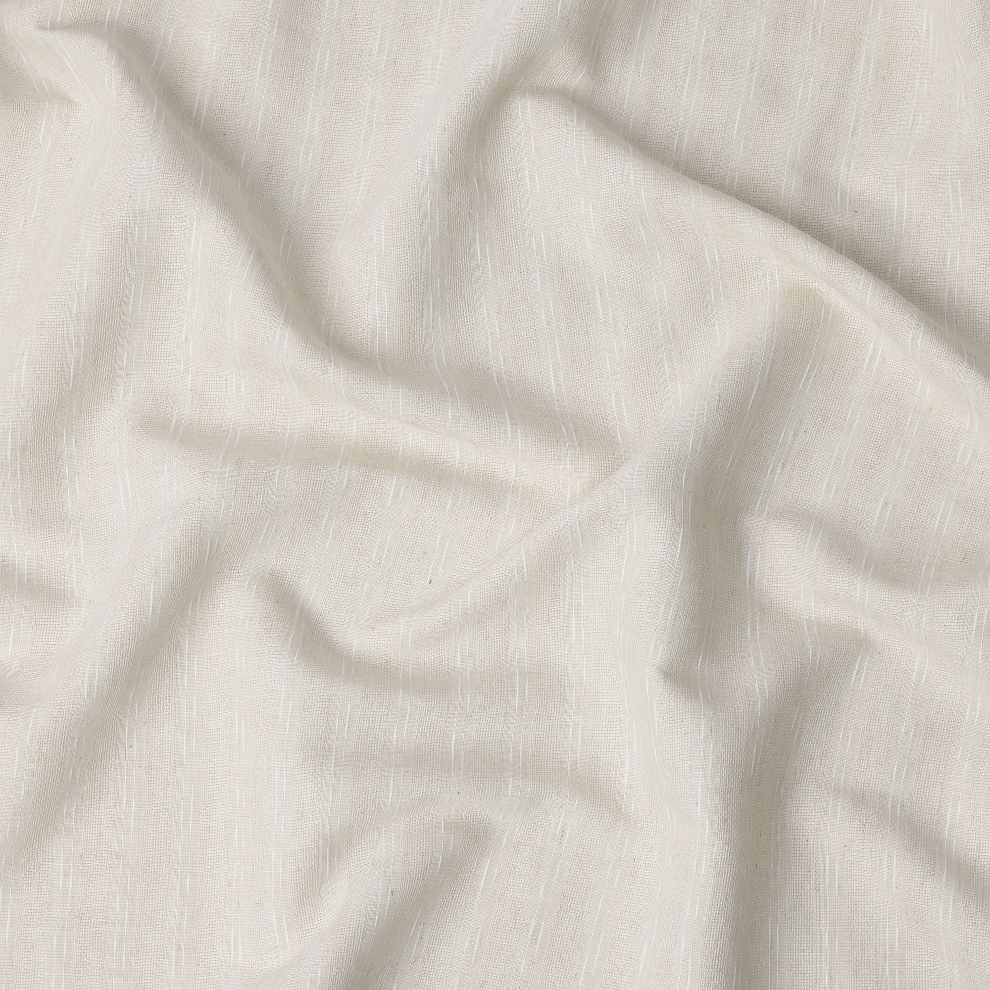 قماش كتان مخلوط يدوي الصنع بخطوط عمودية بلون أبيض عاجي، بمظهر نسج طبيعي ناعم، عرض 140 سم، صنع في الهند - D23253