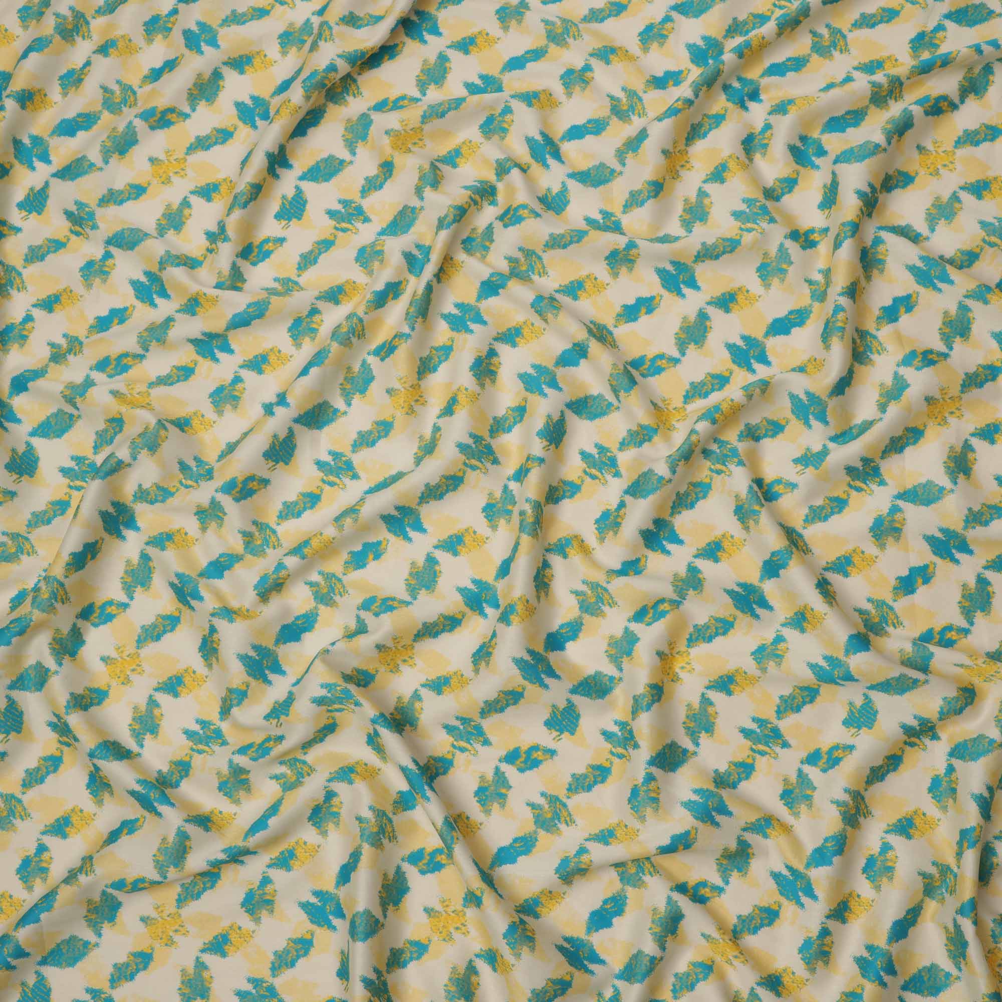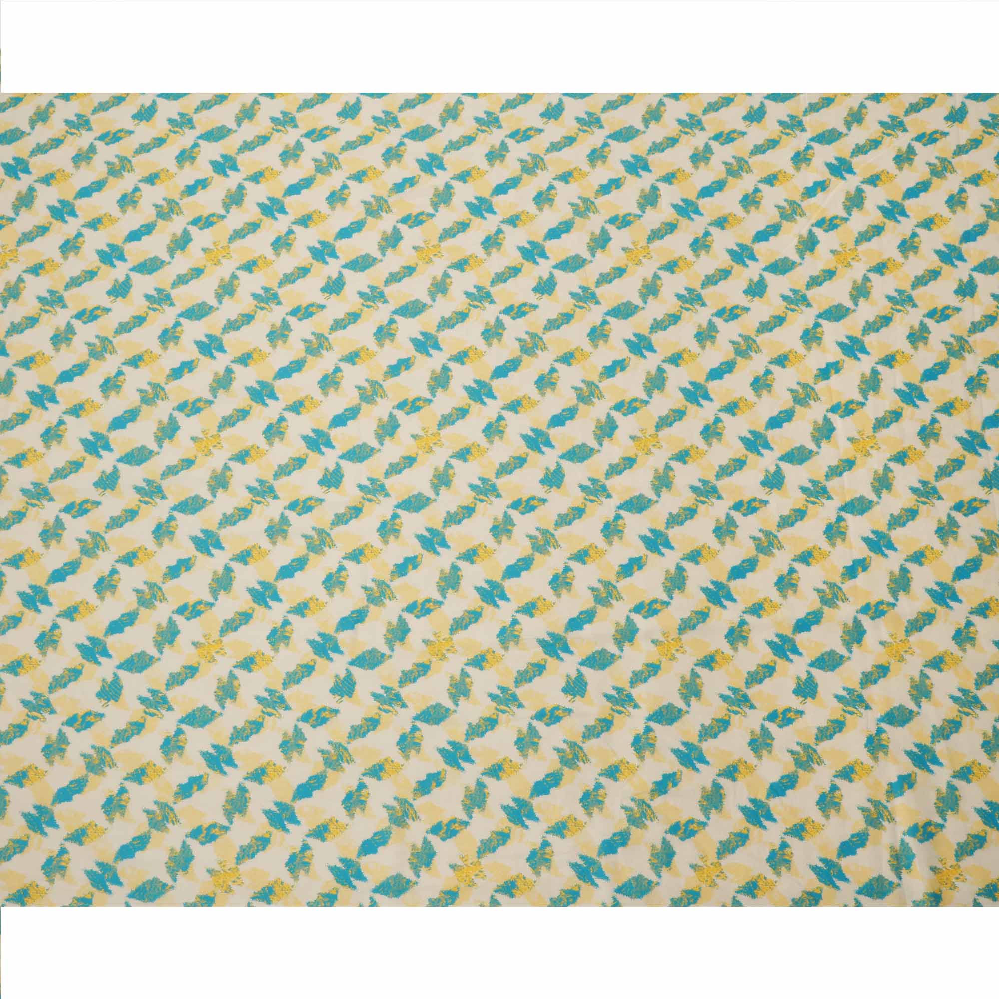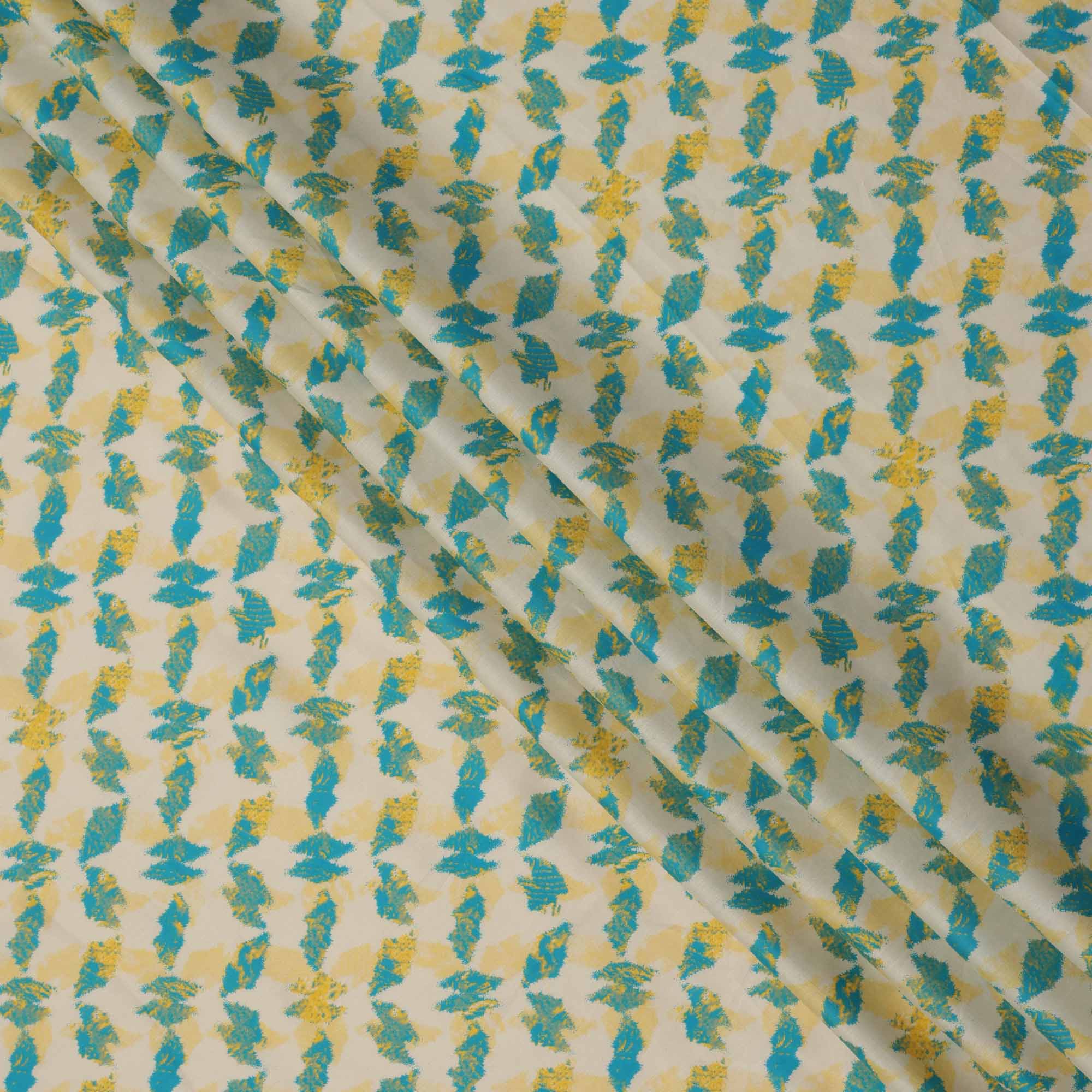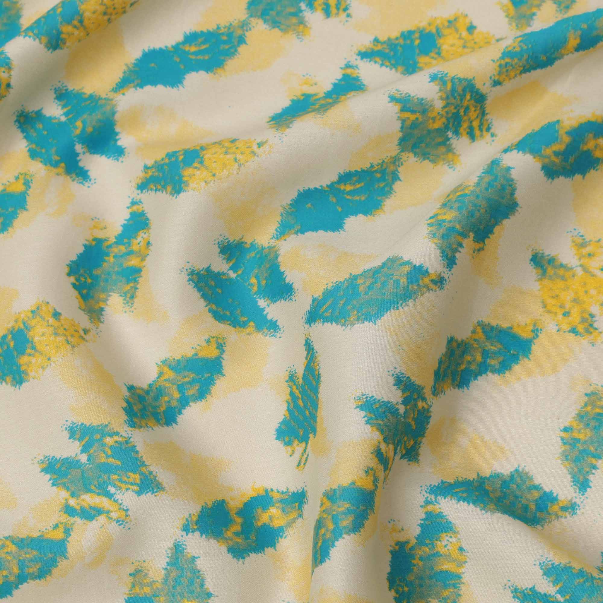 قماش قطني مطبوع عليه أوراق تجريدية باللونين الأبيض العاجي والأصفر والأزرق المخضر، عرض 110 سم، صنع في الهند - D23550