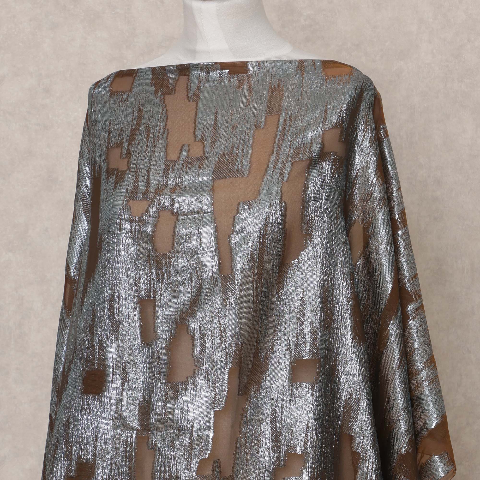 قماش ديراك حريري فرنسي صومالي فاخر بلون بني زيتوني مع لوركس معدني - 3.5 متر، عرض 140 سم، صنع في فرنسا - D24587