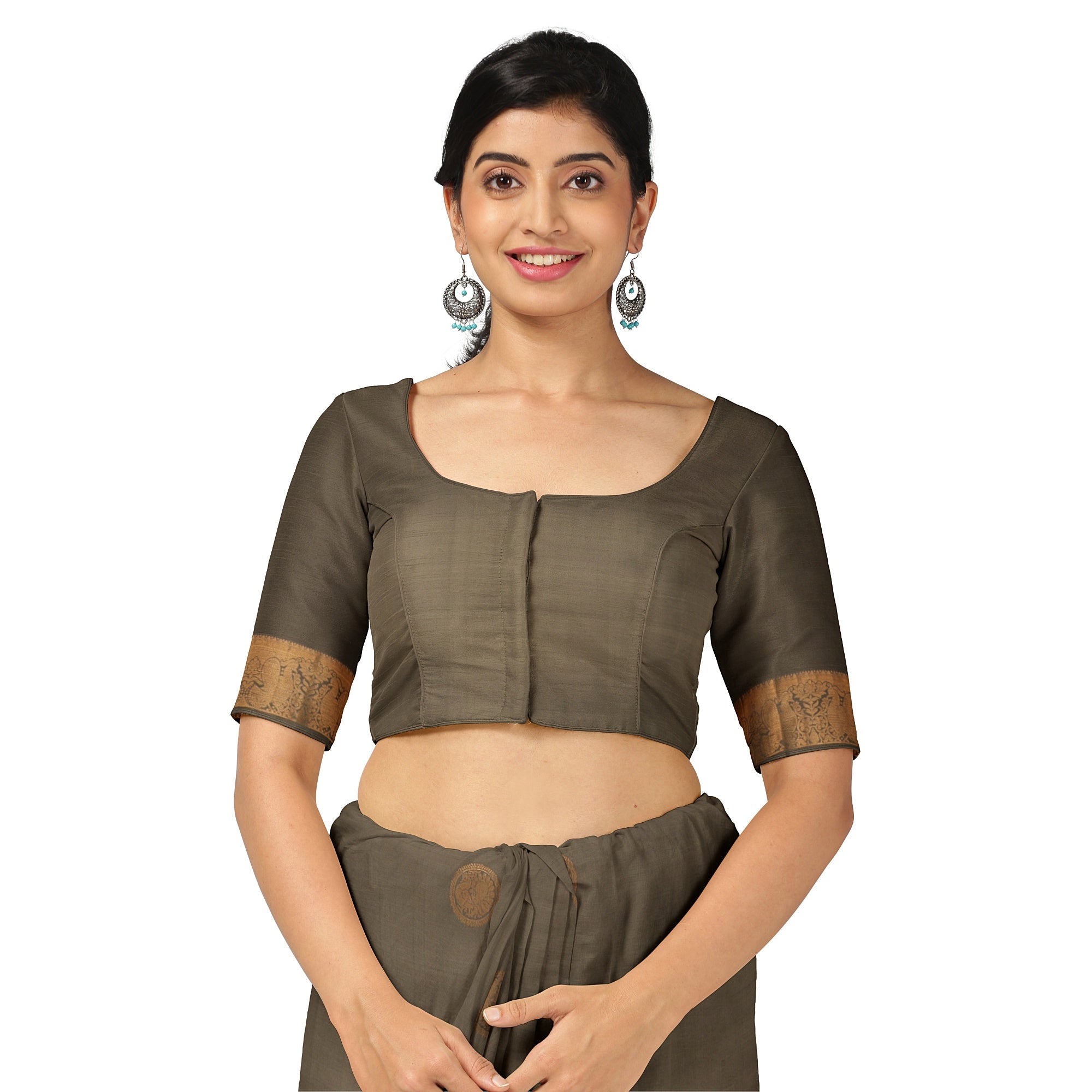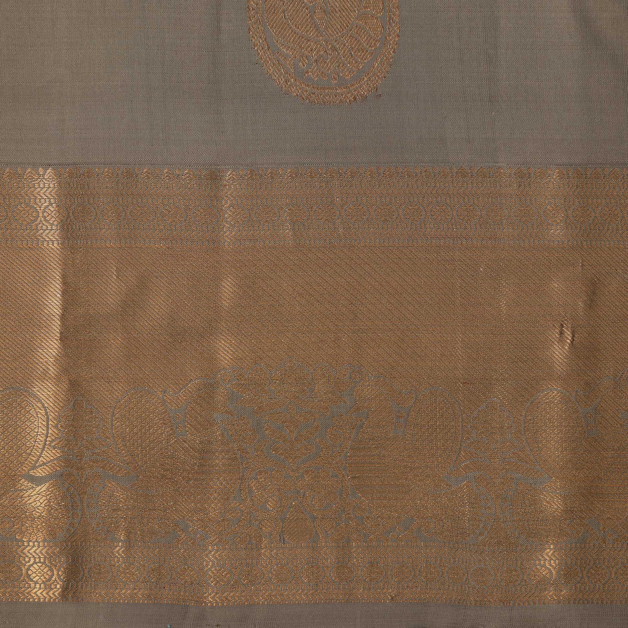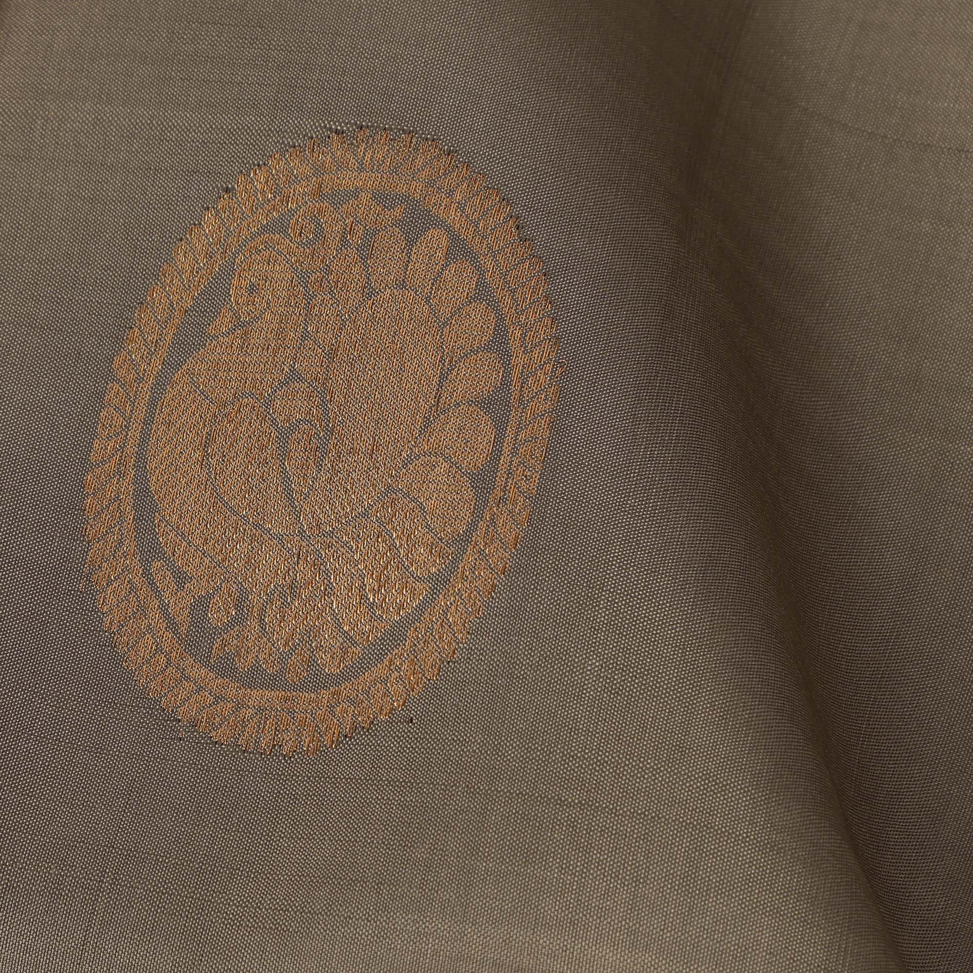 ساري زفاف دائري من الحرير الخالص زاري بوتا كانجيفارام باللون الأخضر الزيتوني والذهبي العتيق، مع حافة فيل تقليدية مع بالو مزخرف، عرض 110 سم، صنع في الهند - D22765