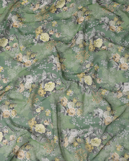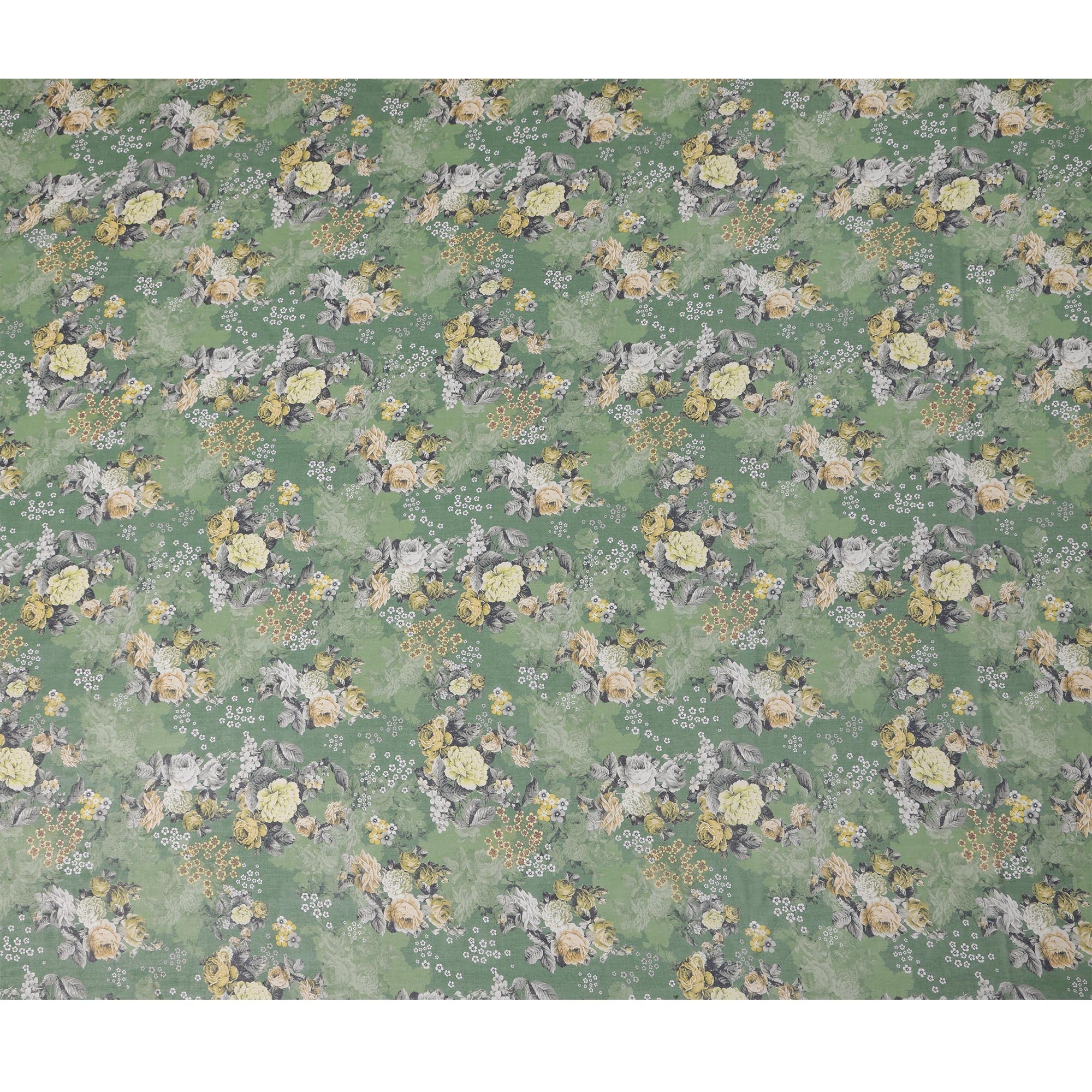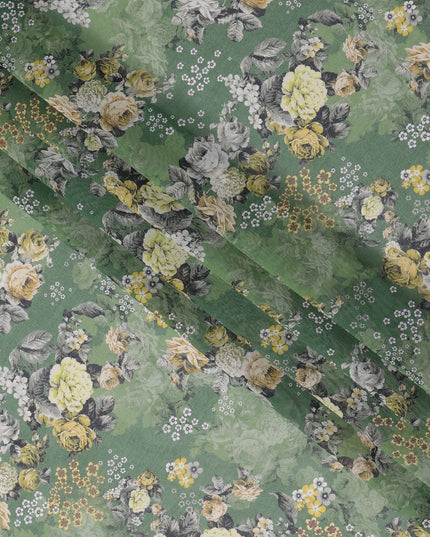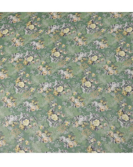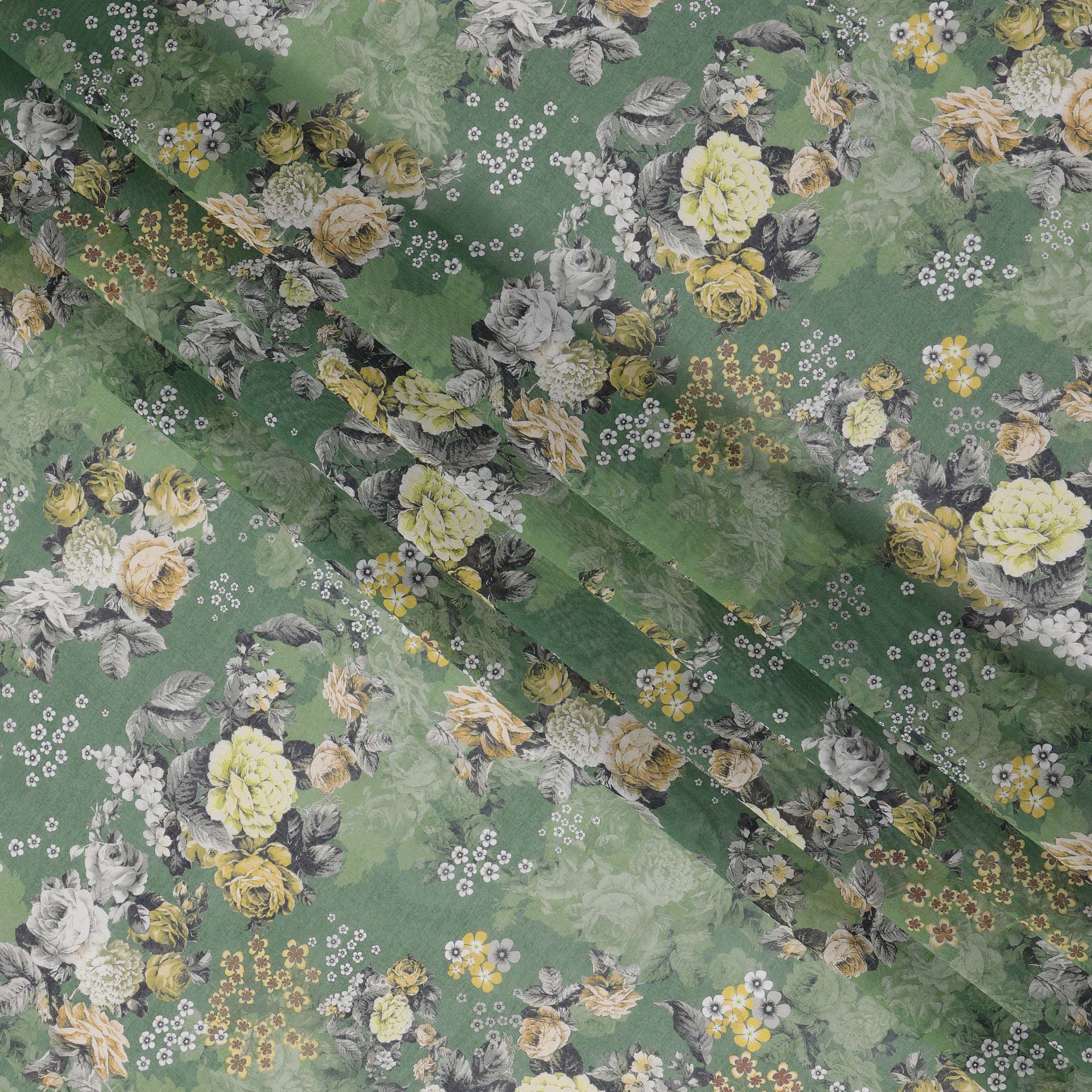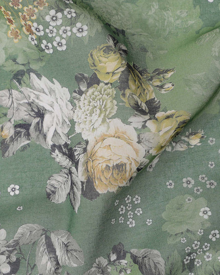 قماش فوال قطني بطبعة زهور كبيرة باللون الأخضر الزيتوني، عرض 140 سم، الهند - D23054