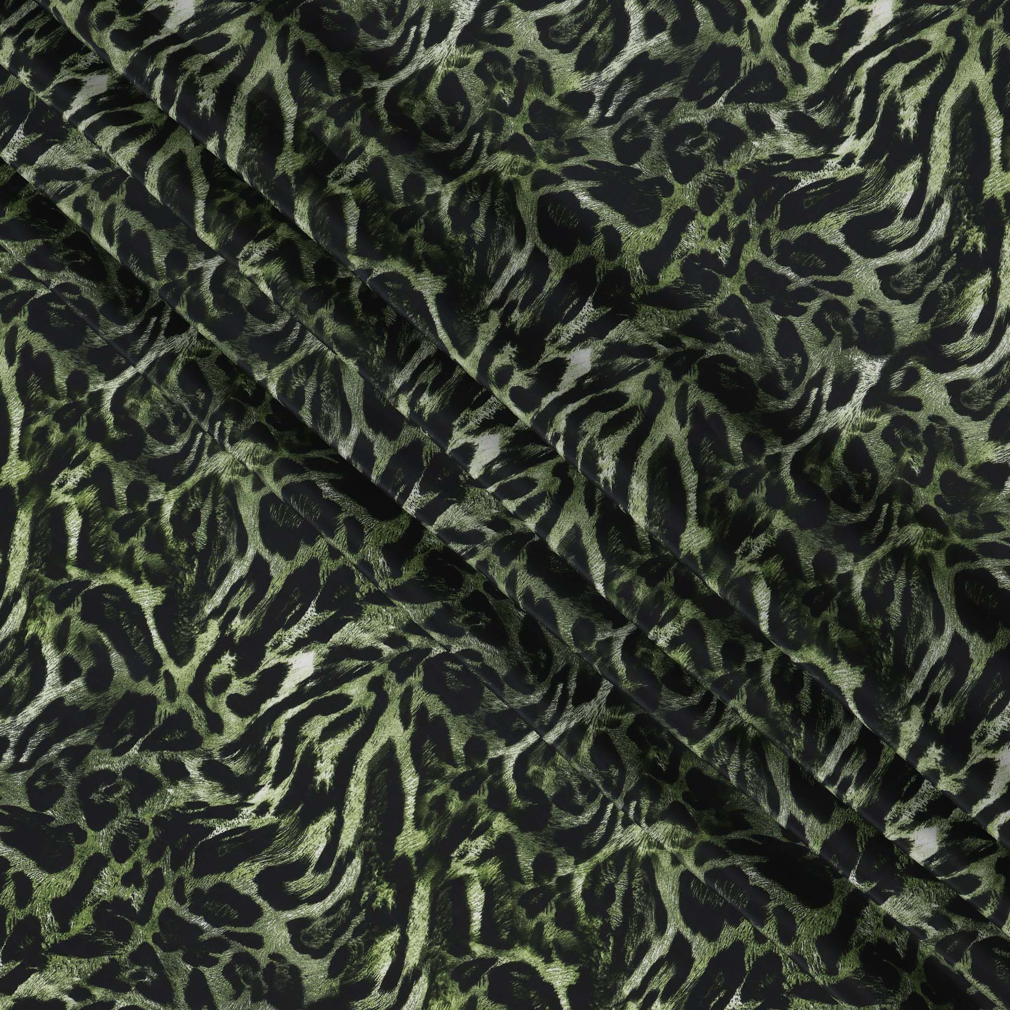 • قماش كريب فيسكوز بطبعة جلد النمر باللون الأخضر الزيتوني - عرض 110 سم - قماش هندي فاخر - D22213
