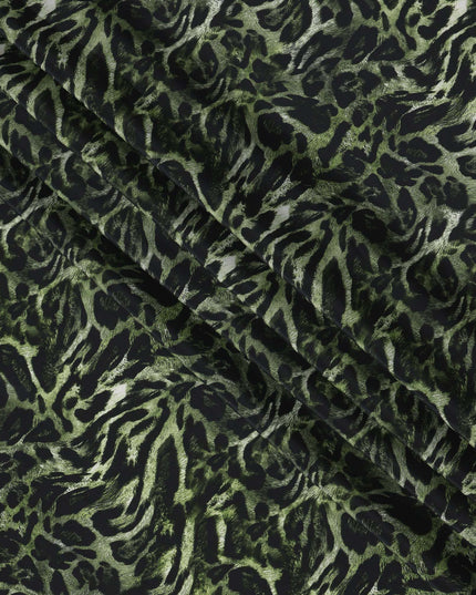 قماش كريب فيسكوز بطبعة جلد النمر باللون الأخضر الزيتوني - عرض 110 سم - قماش هندي فاخر - D22213