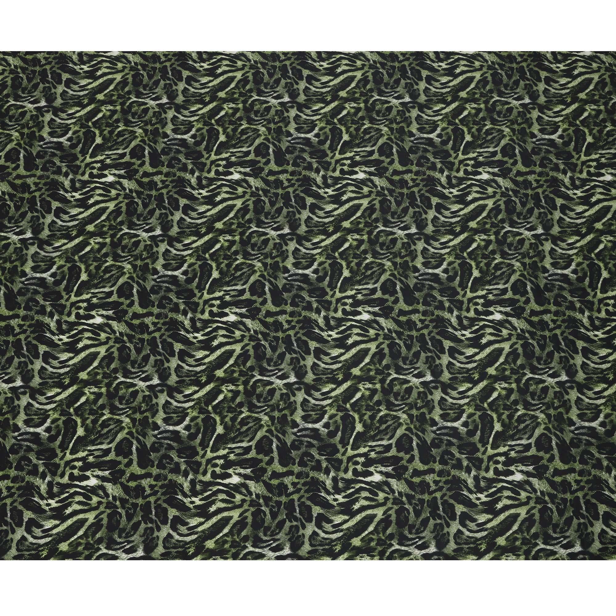 • أُوكَازيُون -5% قماش كريب فيسكوز بطبعة جلد النمر باللون الأخضر الزيتوني - عرض 110 سم - قماش هندي فاخر - D22213