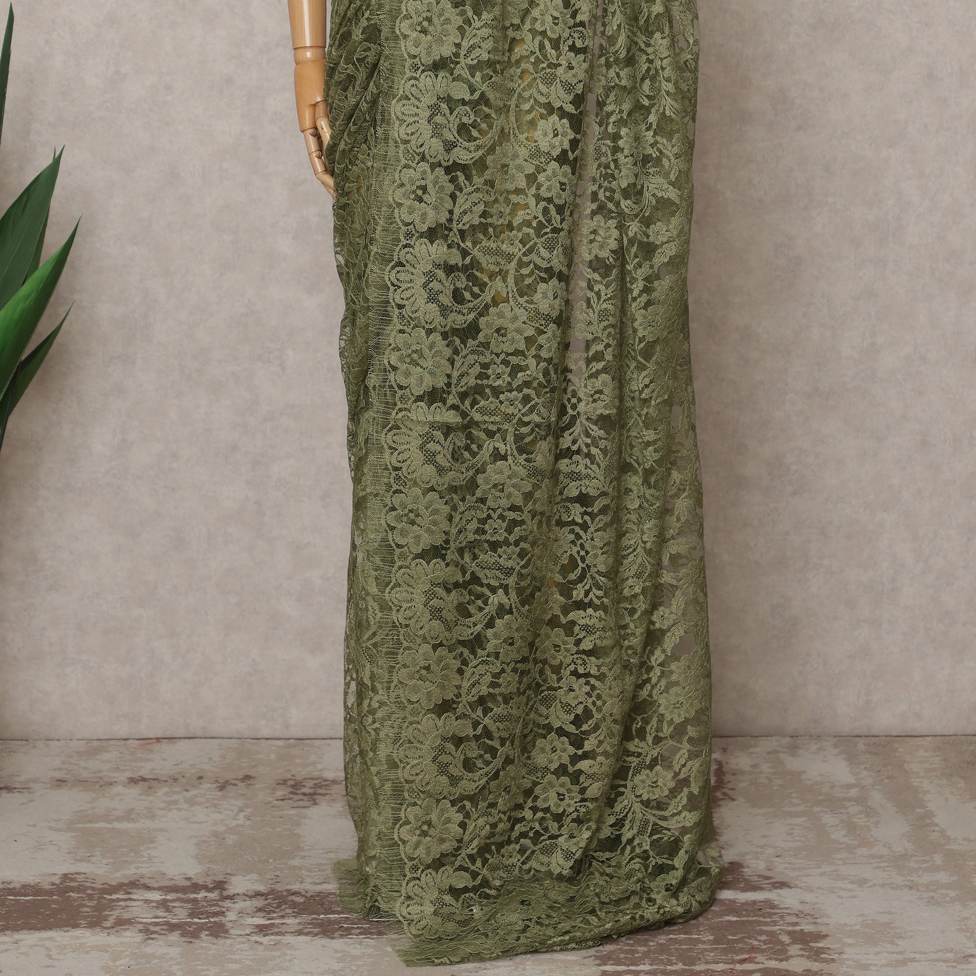 Olive Green Premium French Chantilly Lace Saree Fabric 5.5 Mtrs with 110 Cms Width – Imported from France-D25642