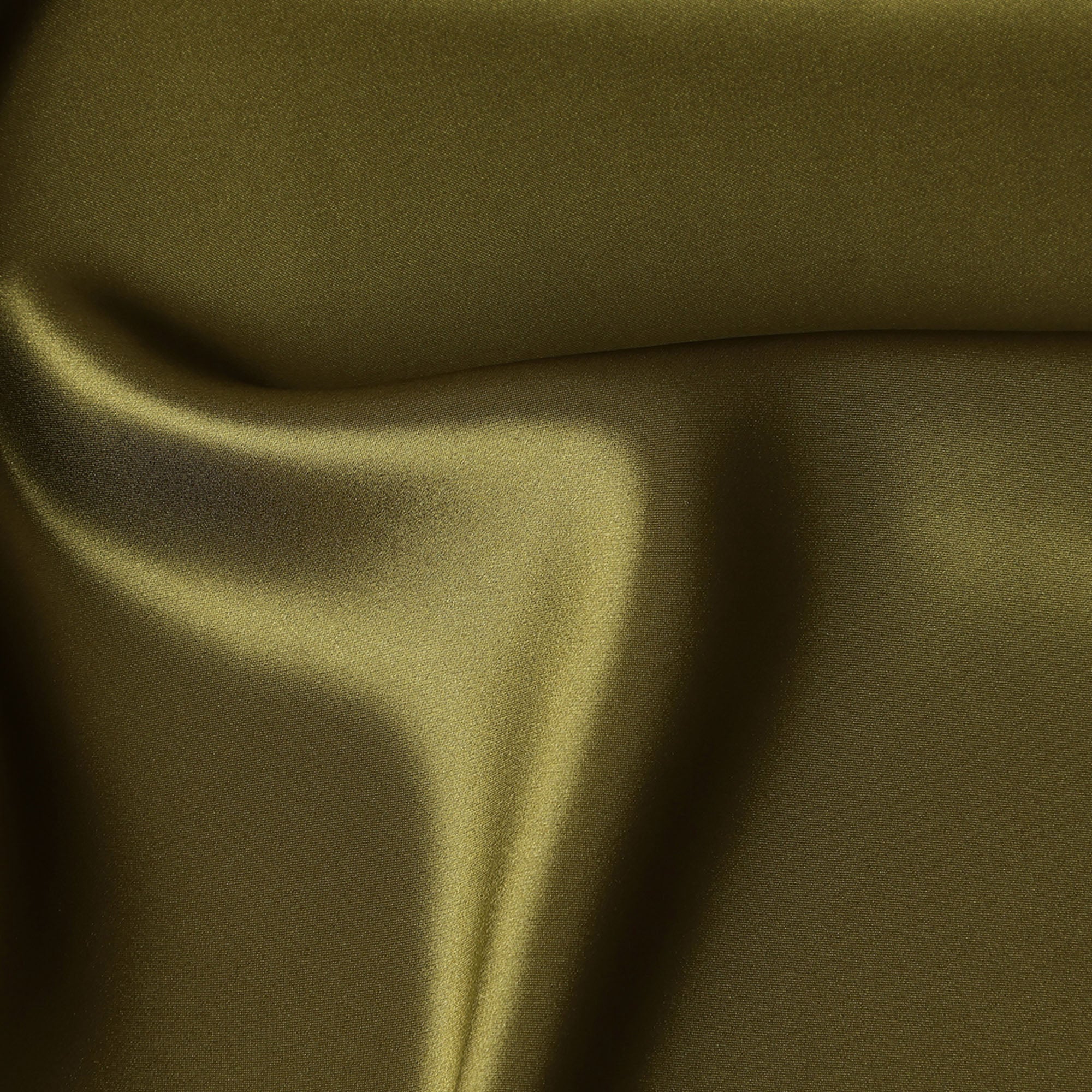 Olive green pure silk satin fabric with luxurious sheen and ultra-smooth finish