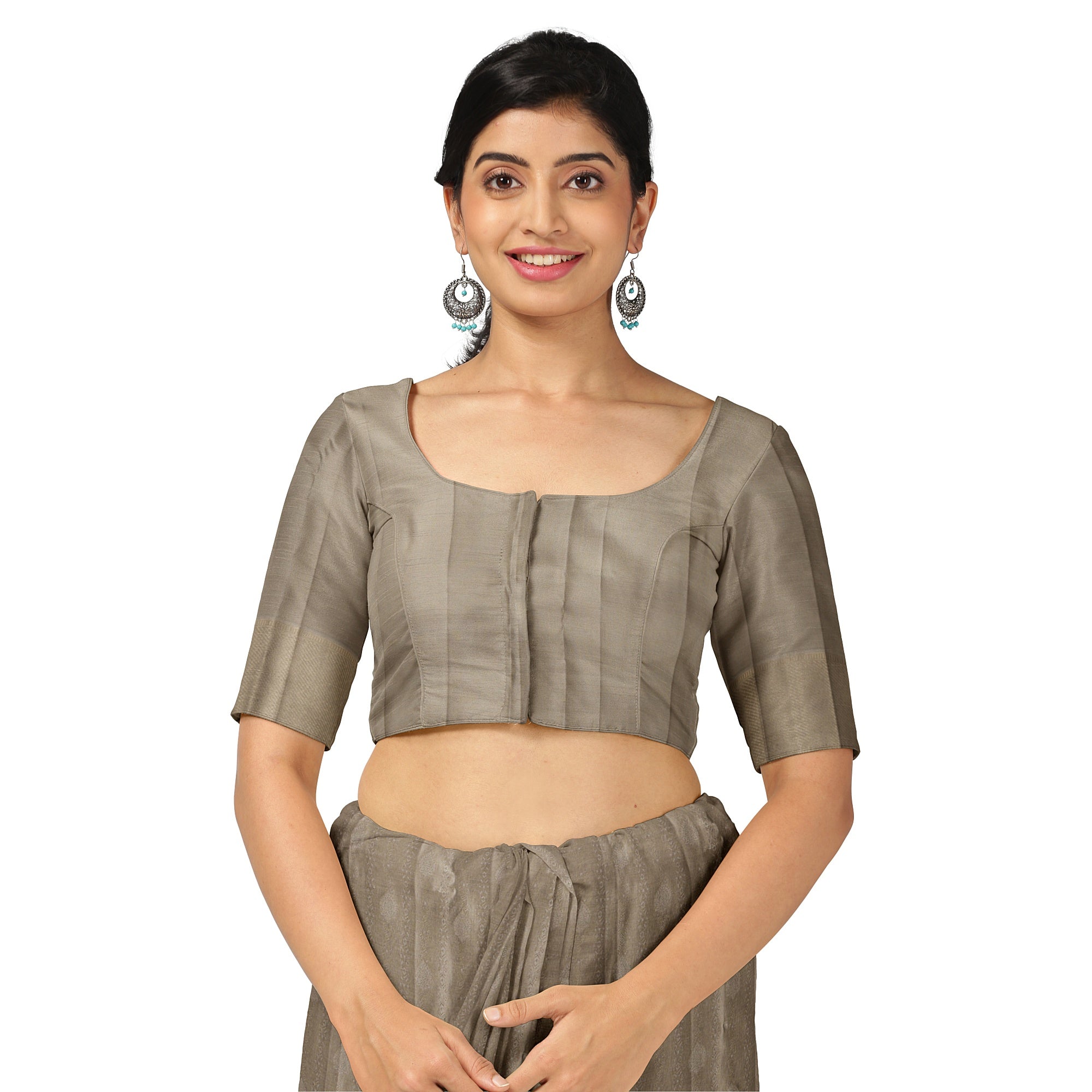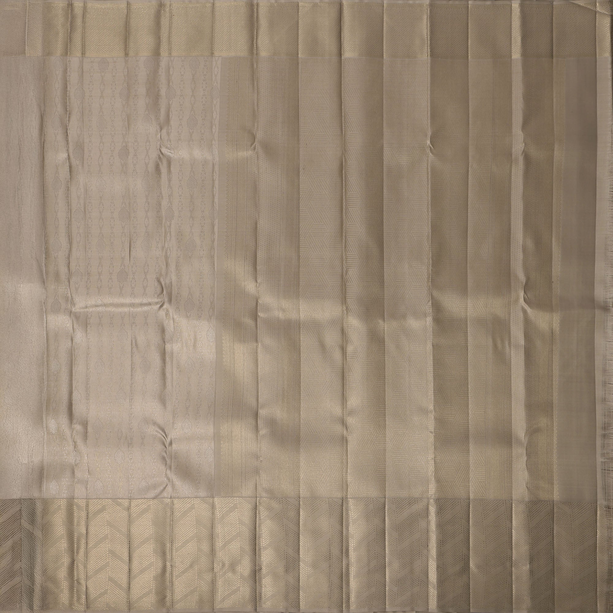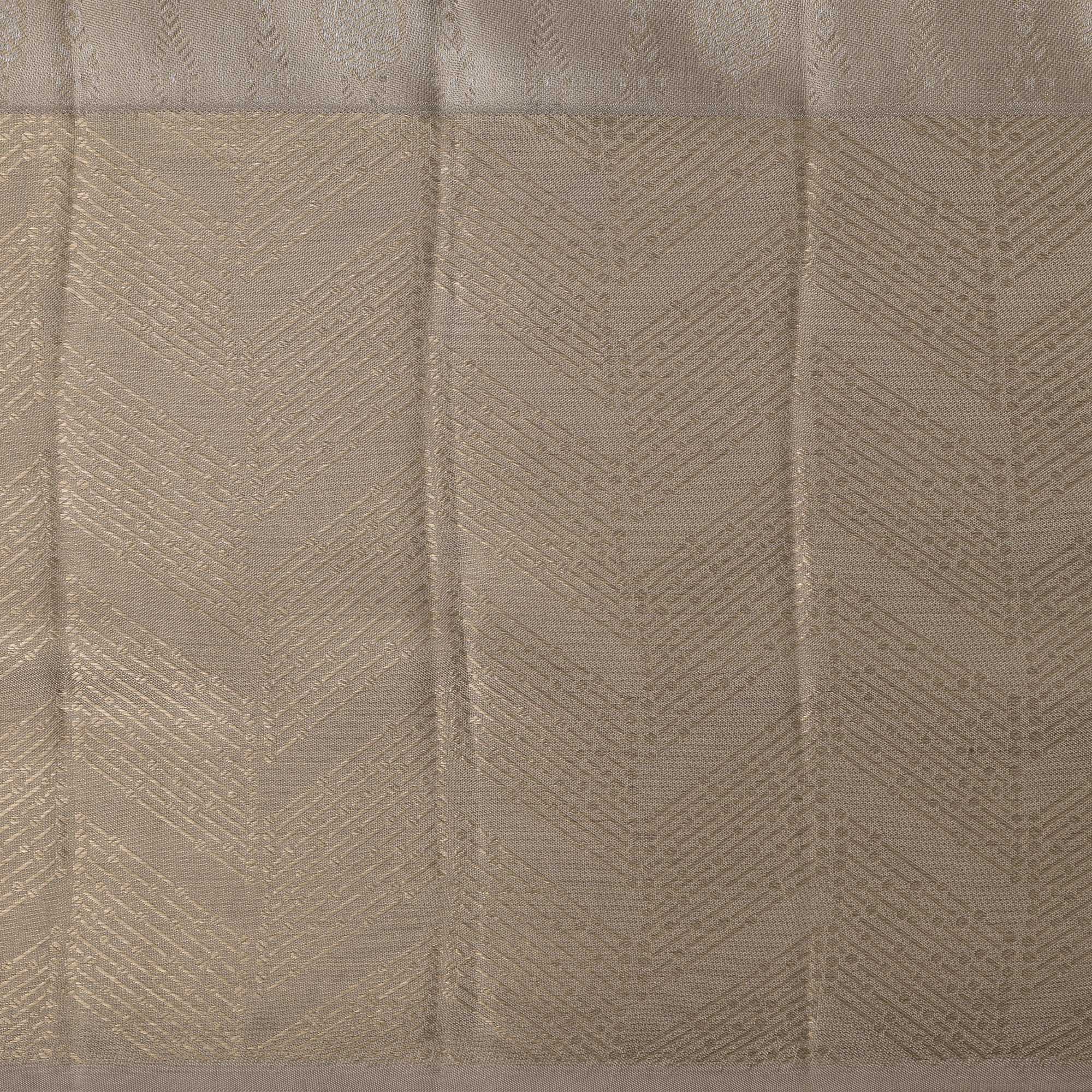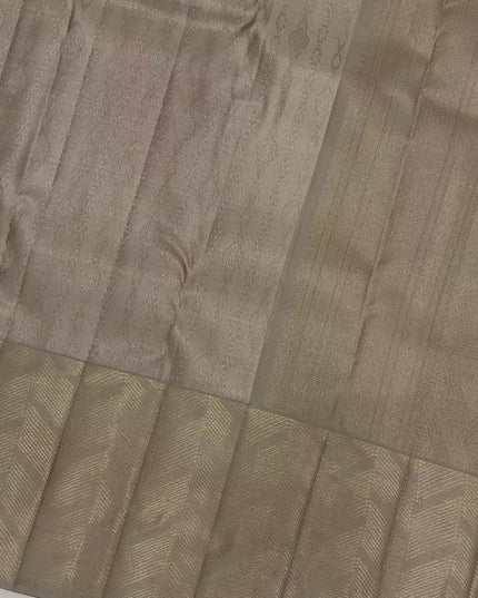 ساري كانجيفارام من الحرير الخالص بلون أخضر زيتوني، بنسيج مخطط يدويًا ولمسة نهائية رقيقة من قماش زاري، بطول 5.5 متر مع قطعة بلوزة، من أصل هندي - D22709