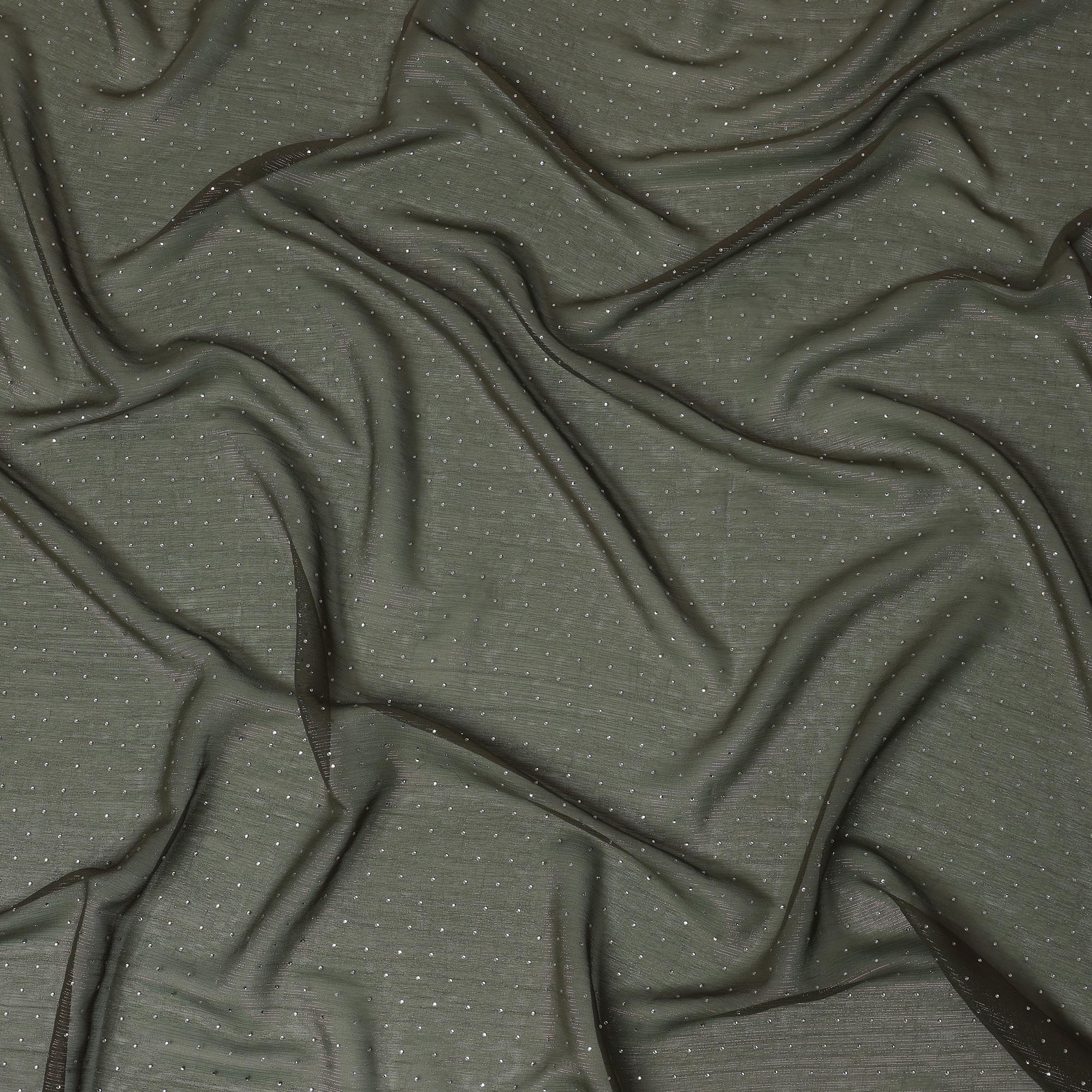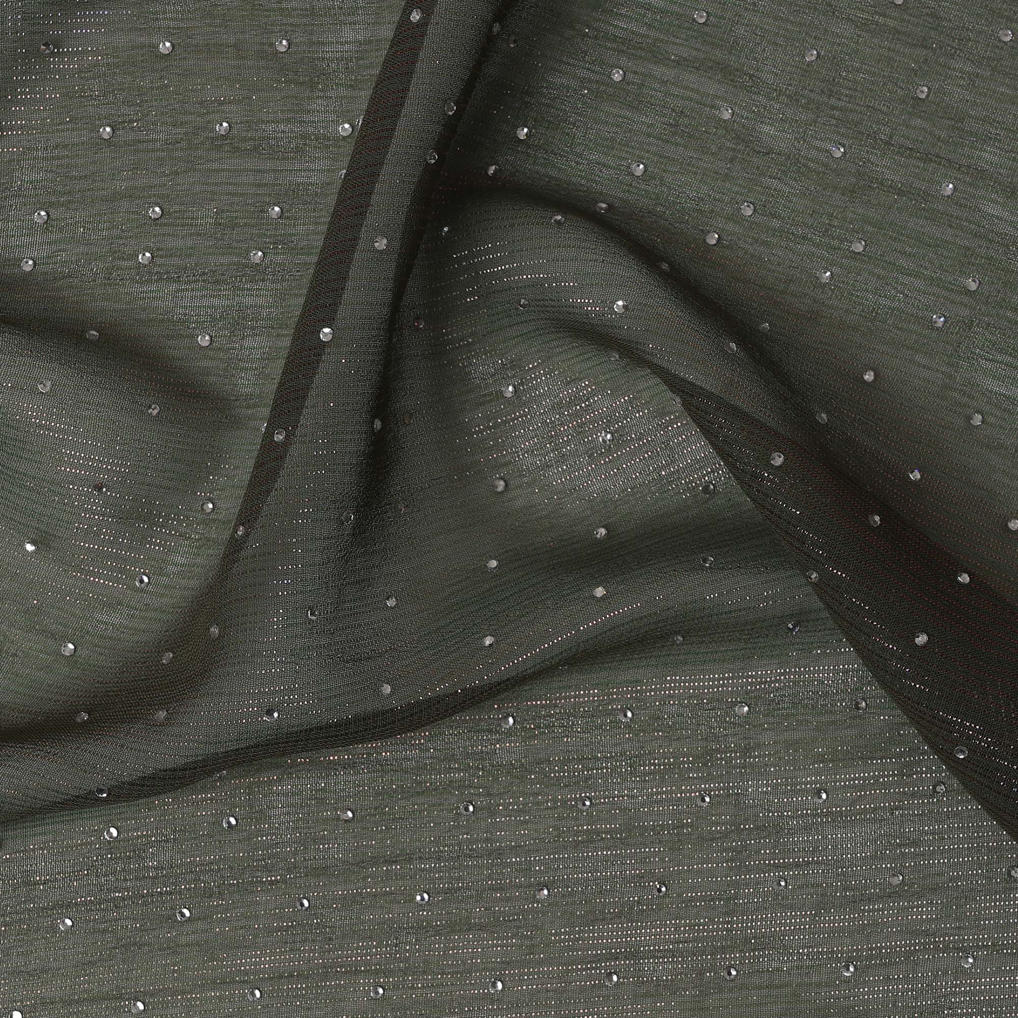 Olive Green Synthetic Chiffon Traditional Sudanese Thobe with Stone Work, 4.5 Mtrs Piece, Width 110 Cms, Made in India-D26456