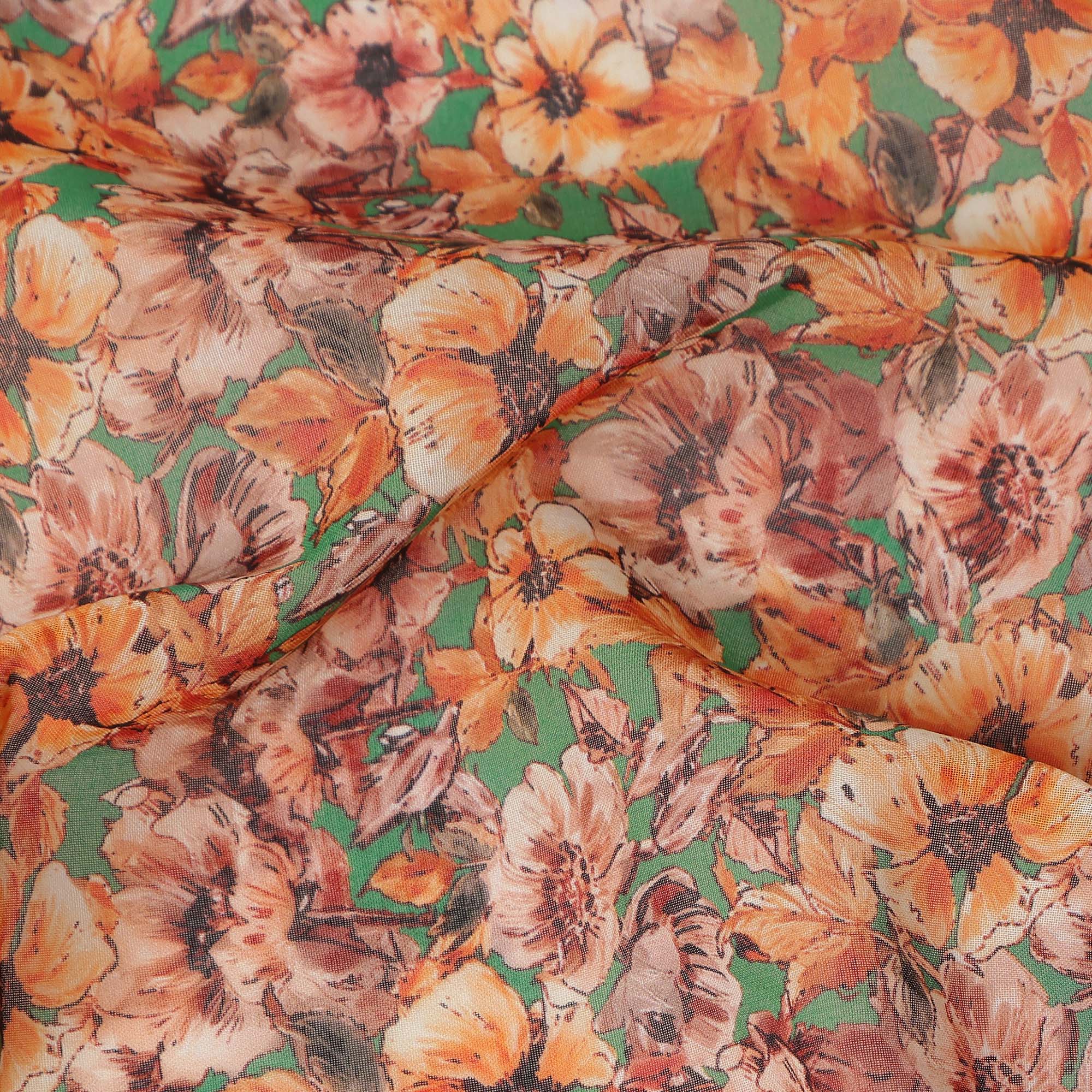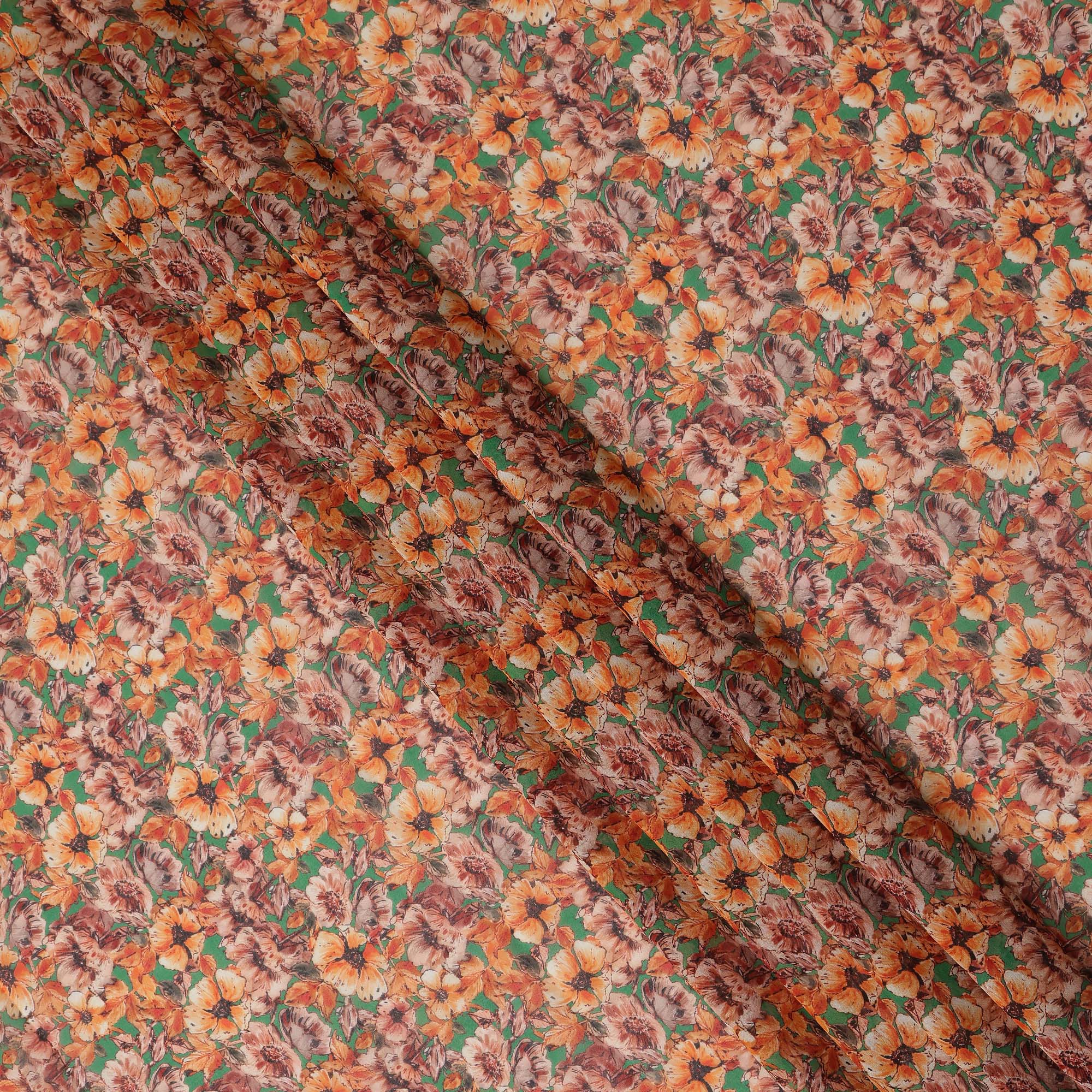 • أُوكَازيُون -10% Orange Floral Traditional Sudanese Thobe Pure Cotton Voile 4.5 Mtrs Width 140 Cms India-D27812