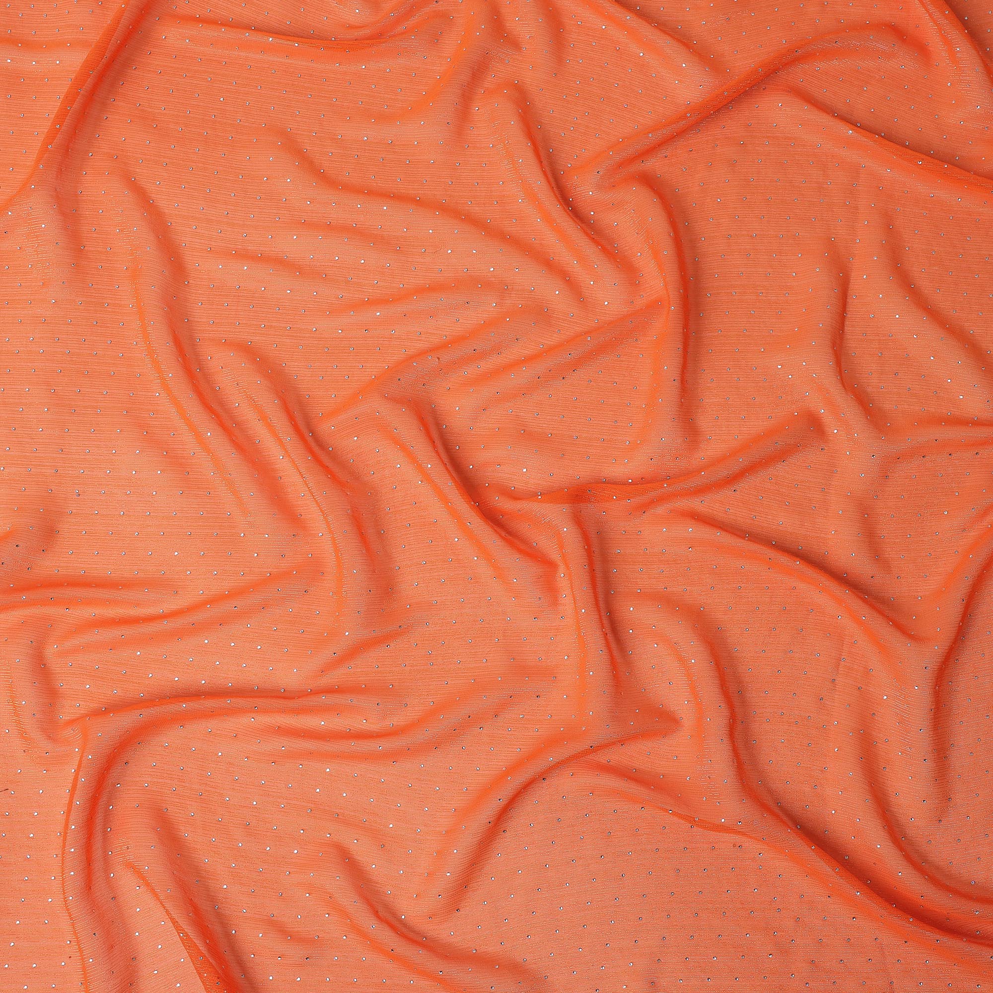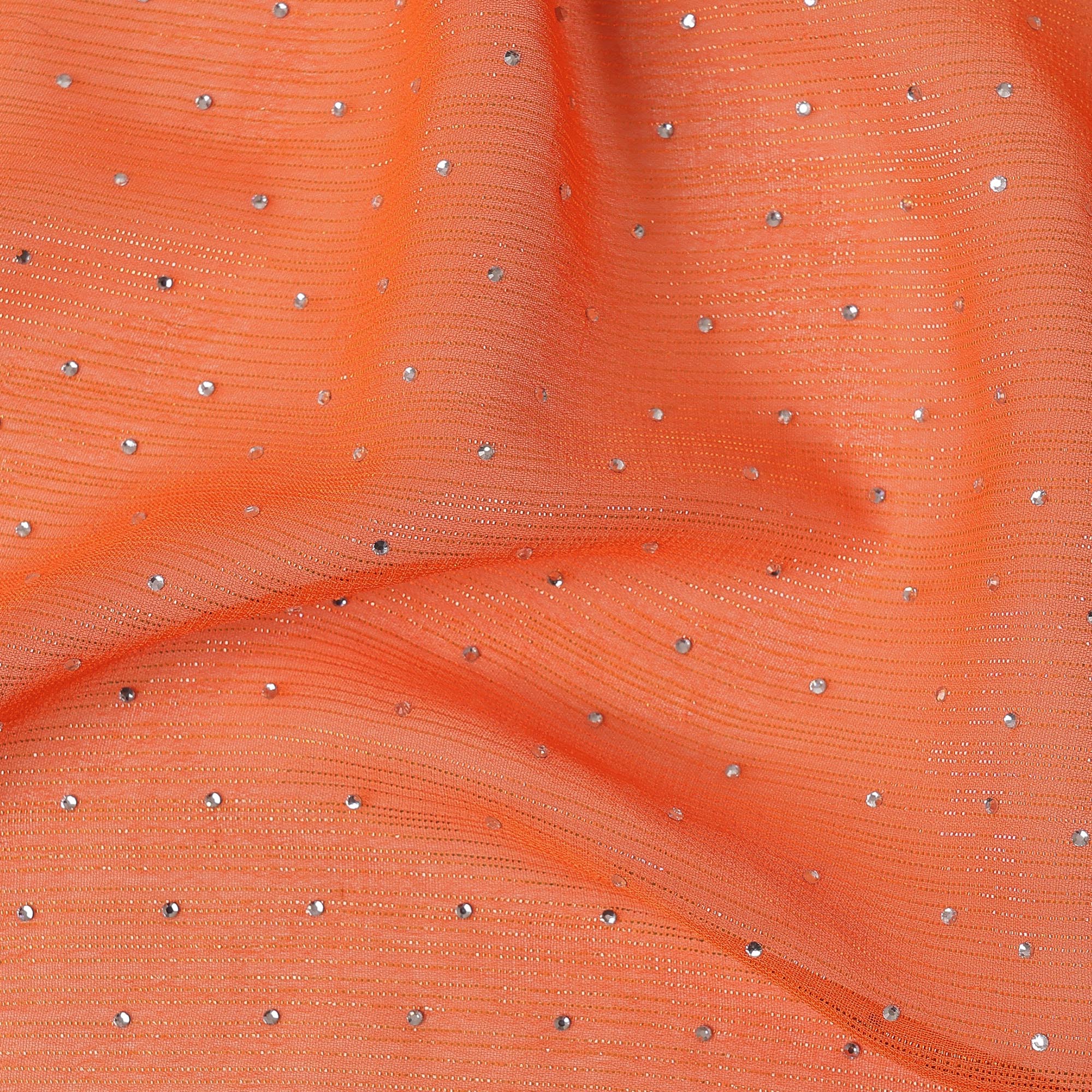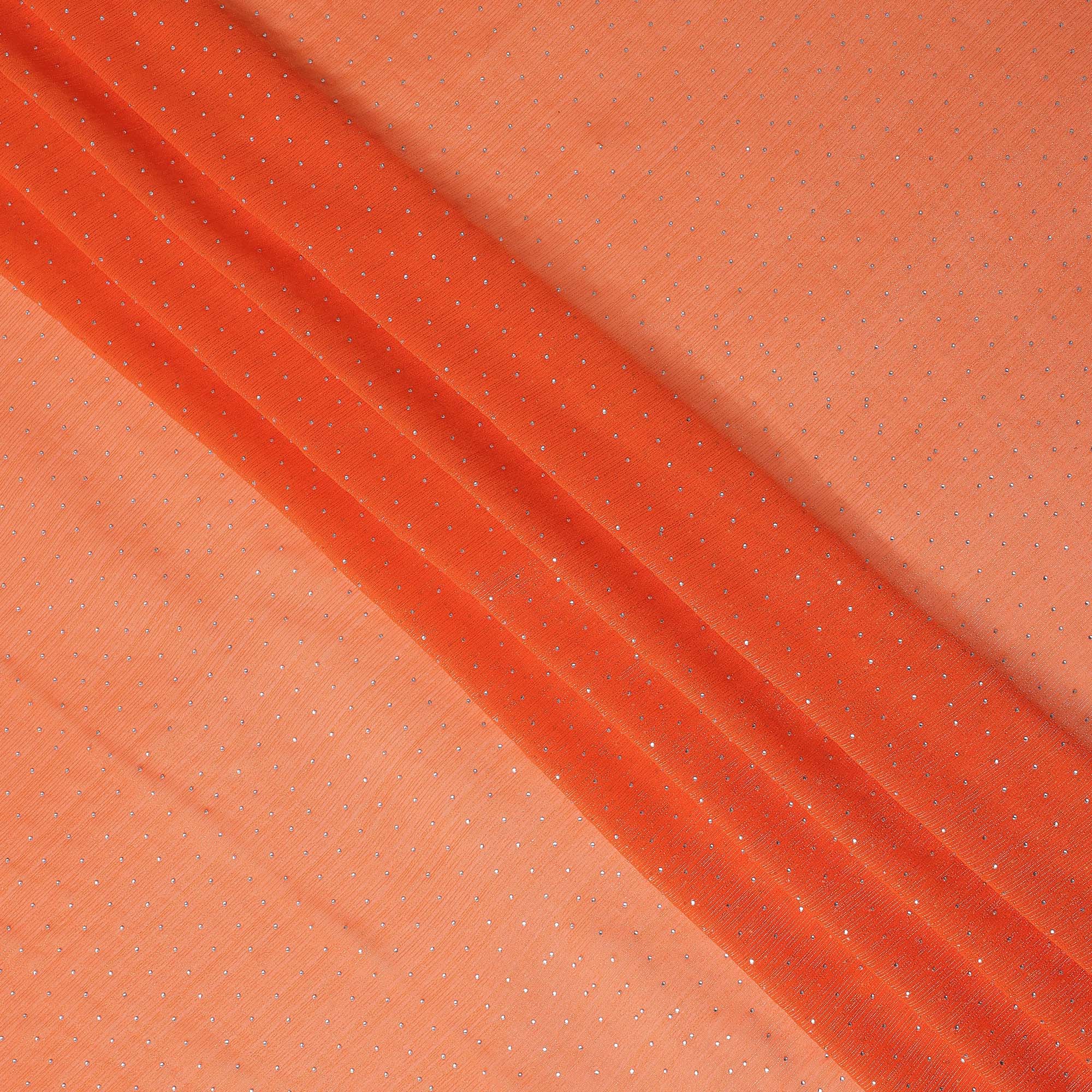 Orange Synthetic Chiffon Traditional Sudanese Thobe with Stone Work, 4.5 Mtrs Piece, Width 110 Cms, Made in India-D26444