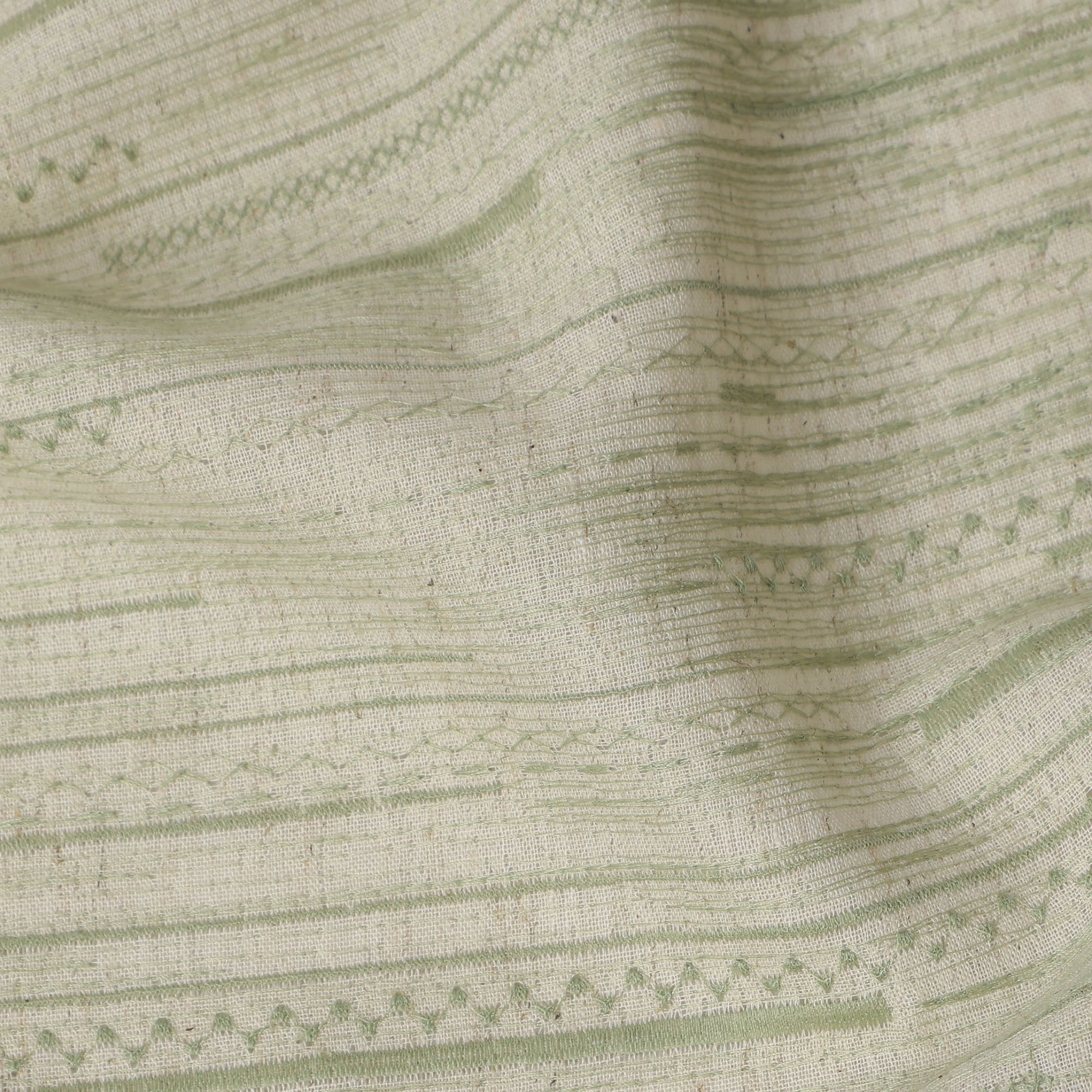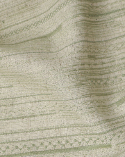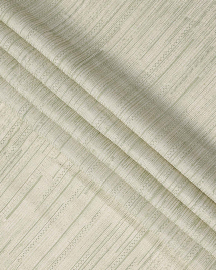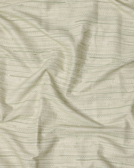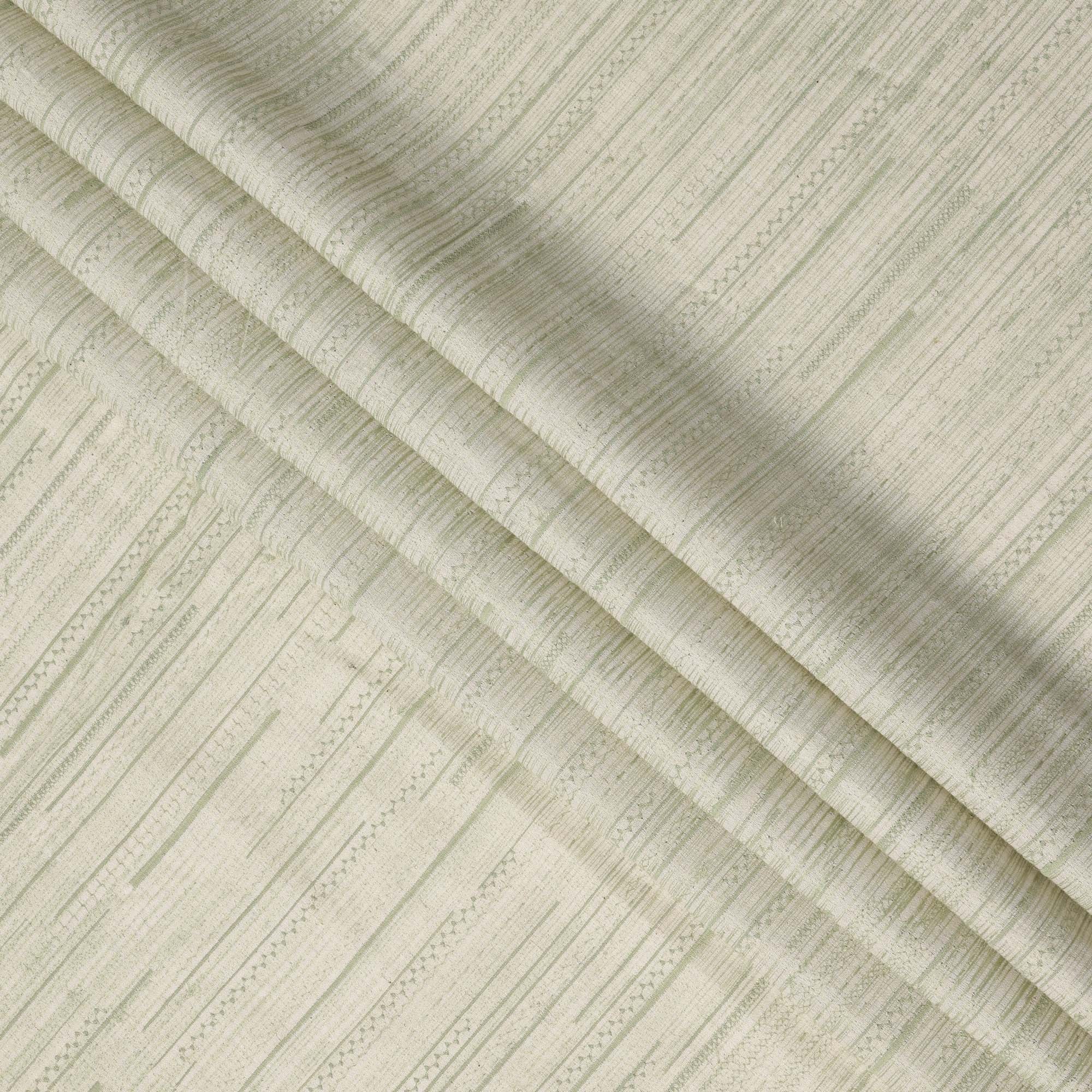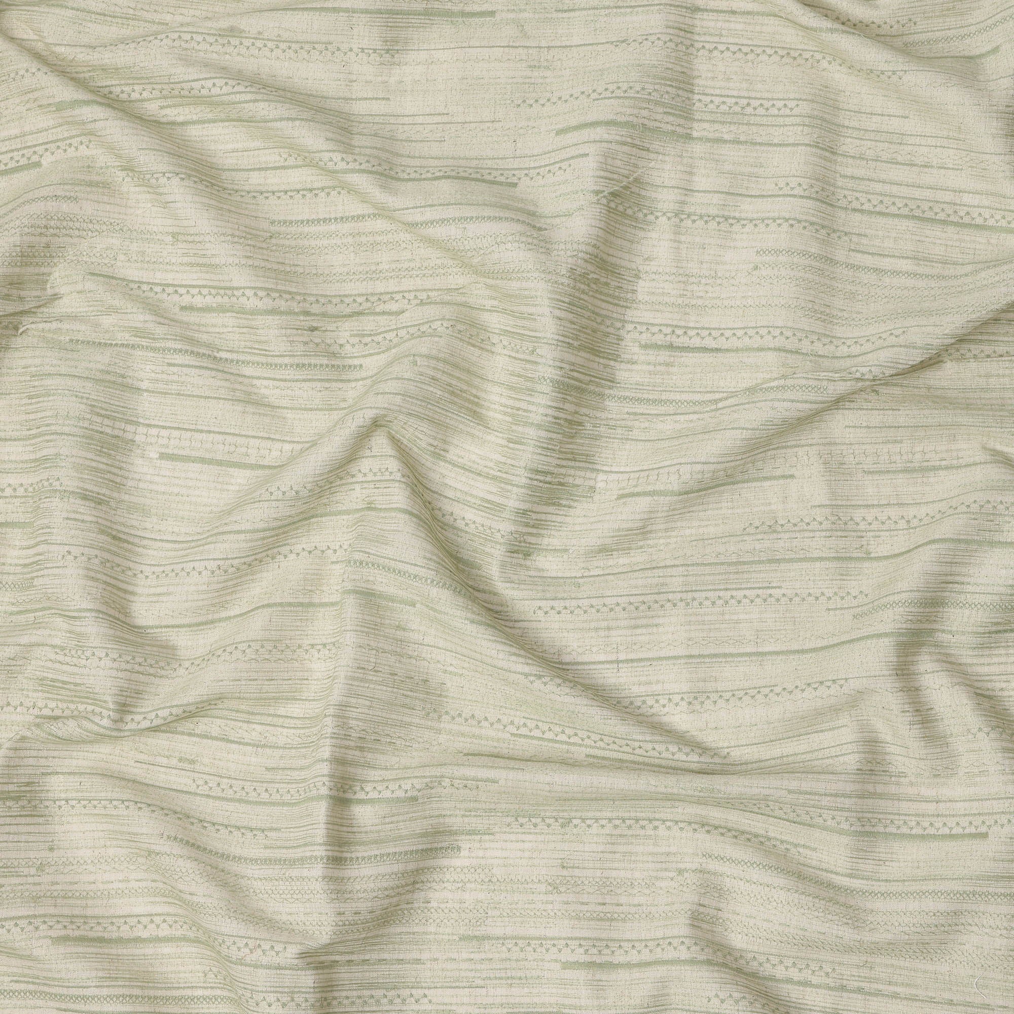 قماش كريب حريري مخطط بلون أخضر حكيم باهت مع تفاصيل منسوجة ذاتيًا، 110 سم، الهند - D23387