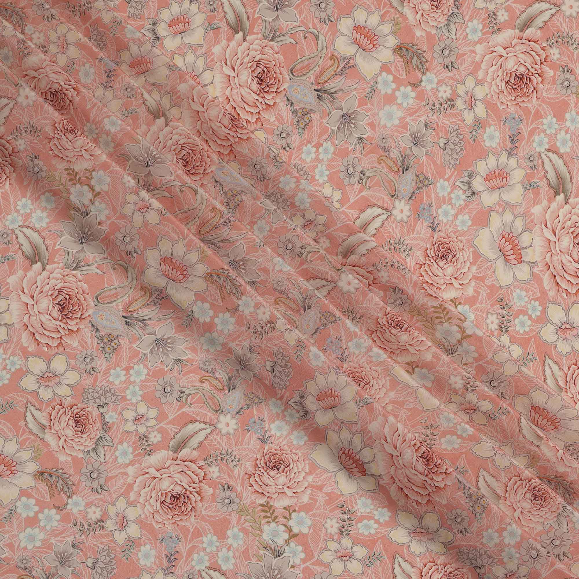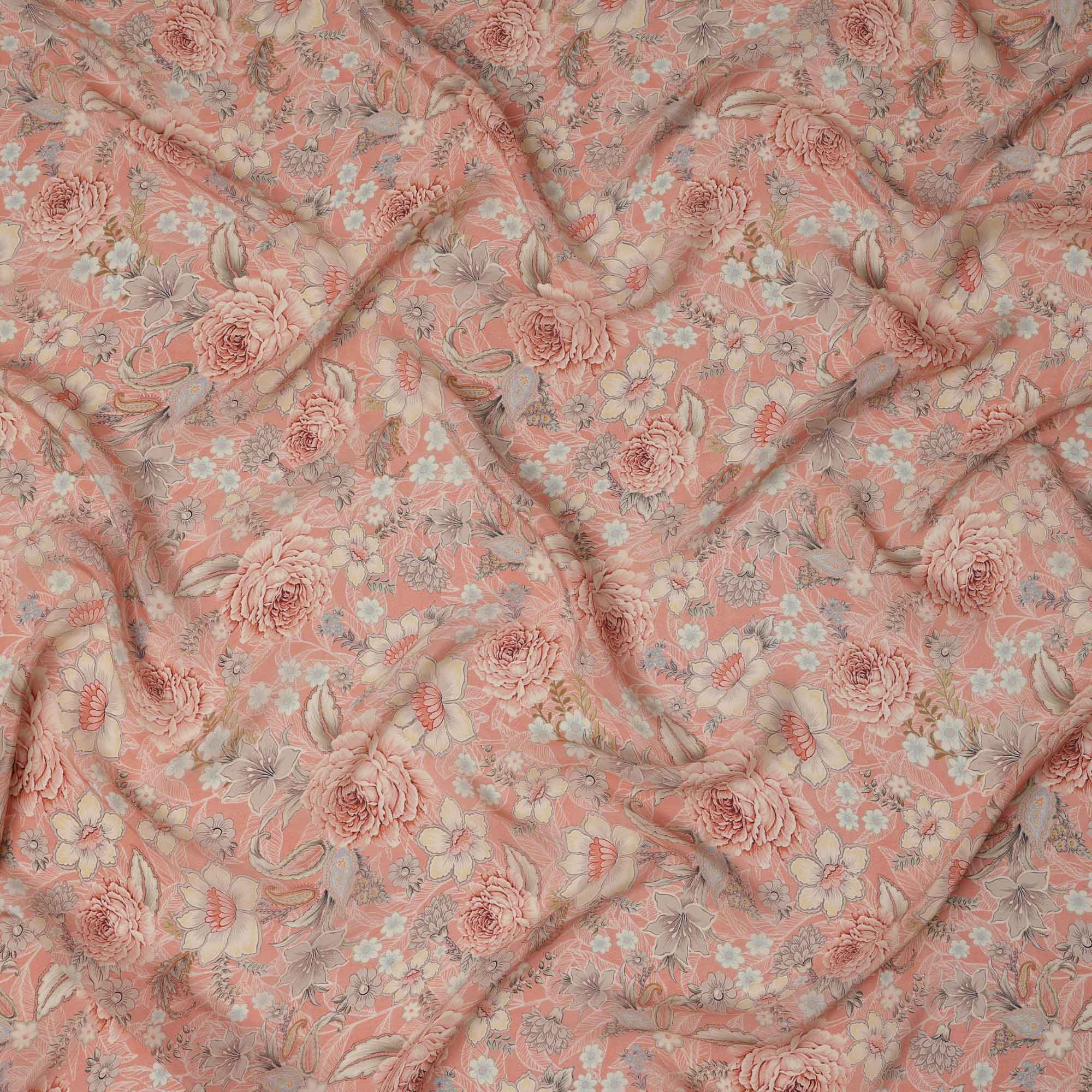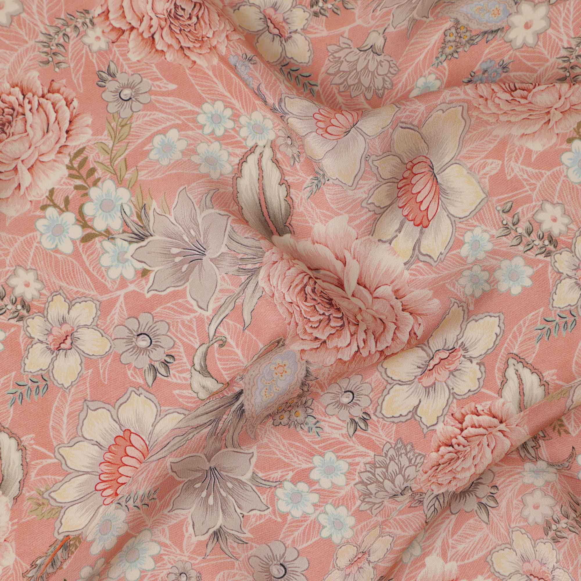 قماش كريب فيسكوز مطبوع عليه زهور الخوخ مع لمسات باستيل ناعمة، عرض 110 سم، صنع في الهند - D23467