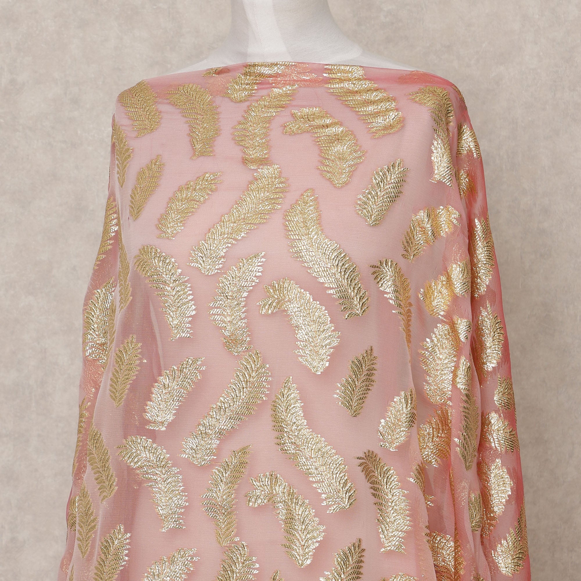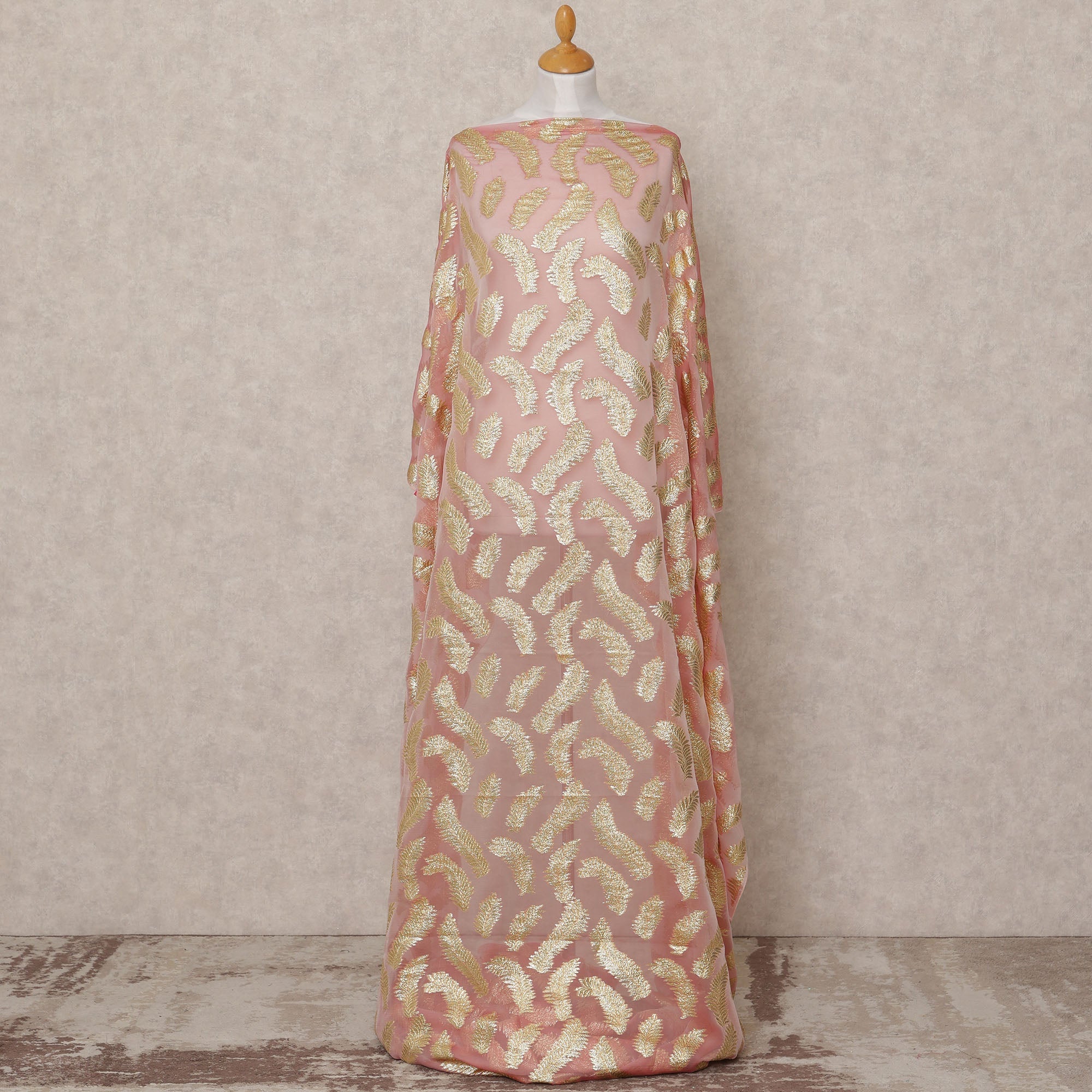 قماش ديراك حريري صومالي فاخر فرنسي بلون الخوخ مع لوركس معدني - 3.5 متر، عرض 140 سم، صنع في فرنسا - D24571