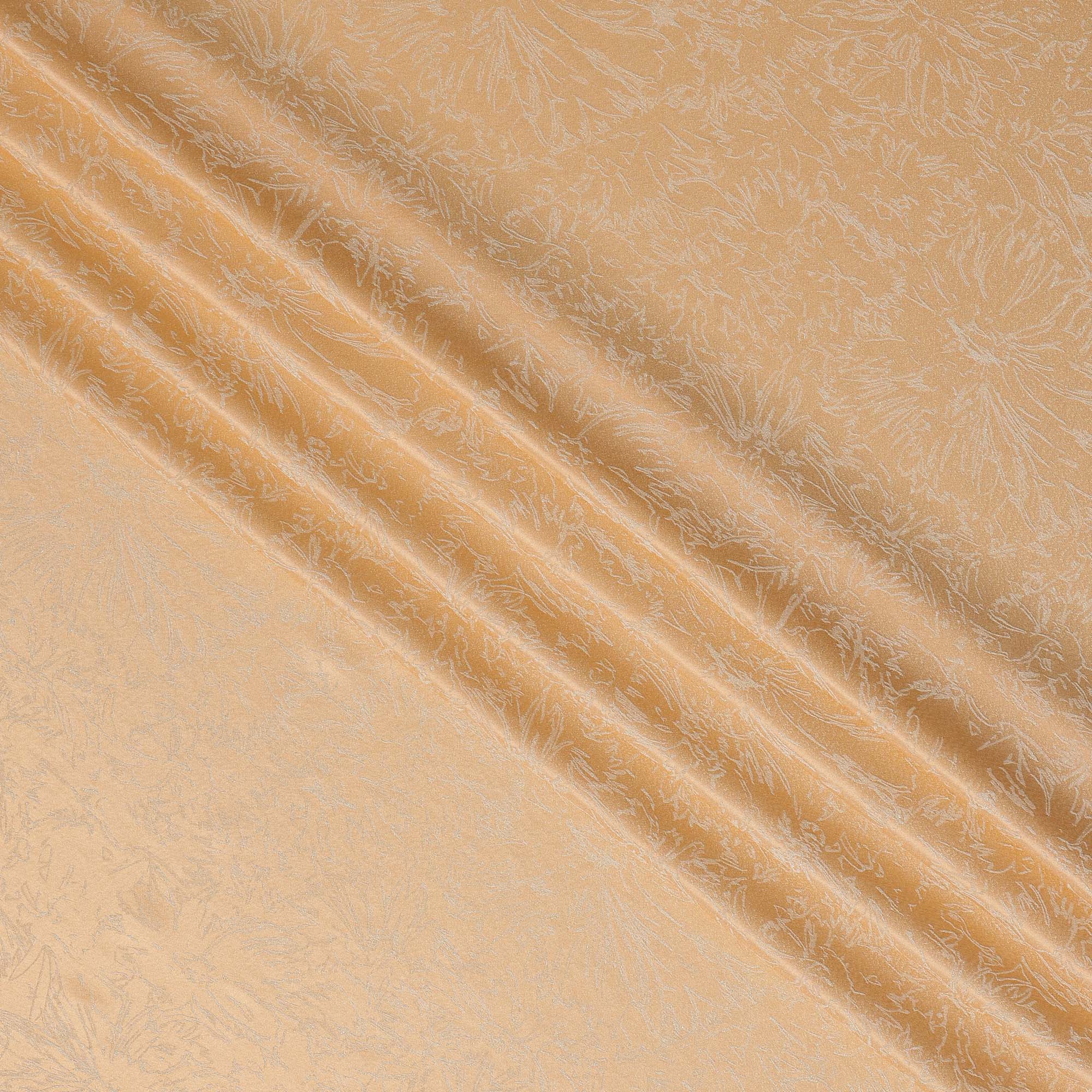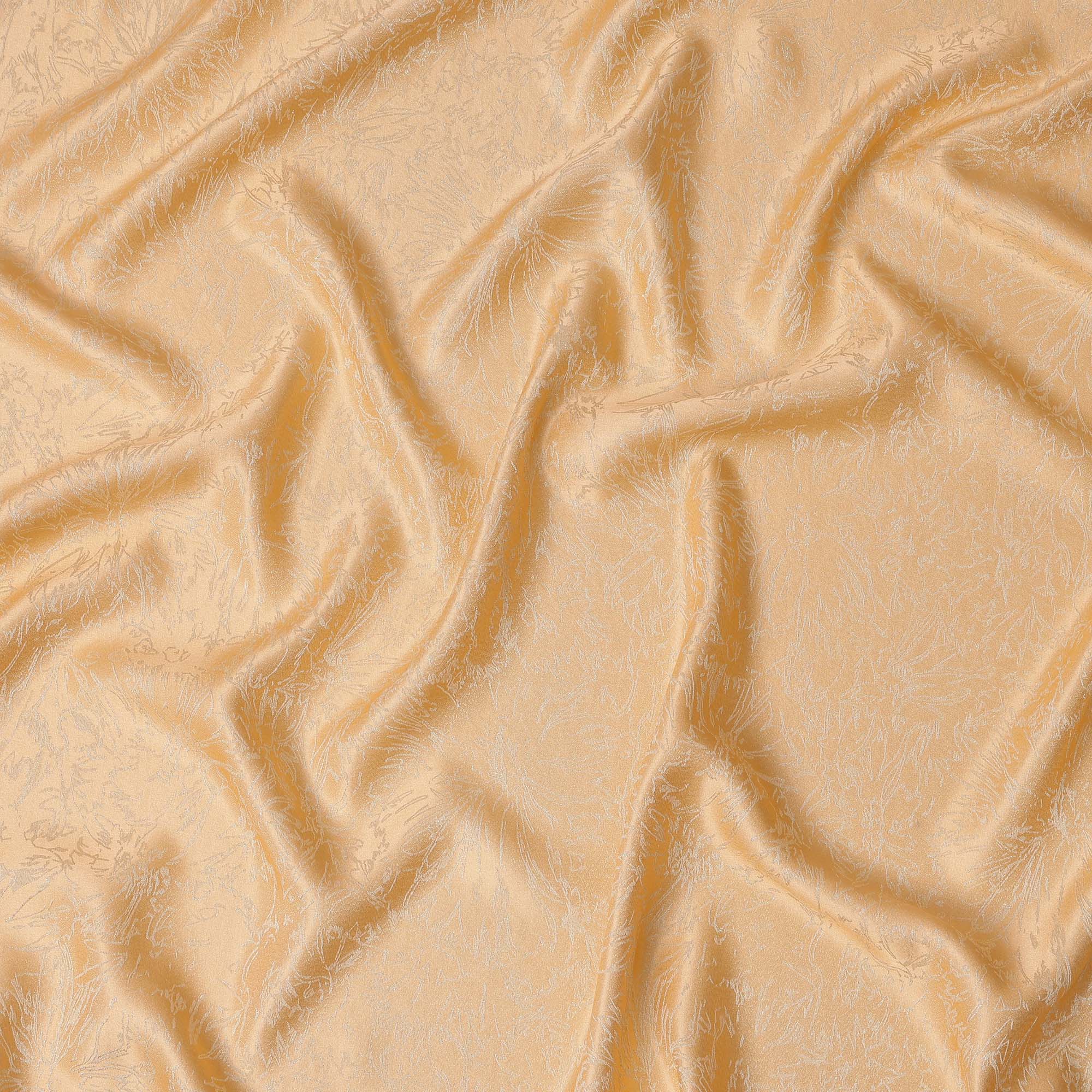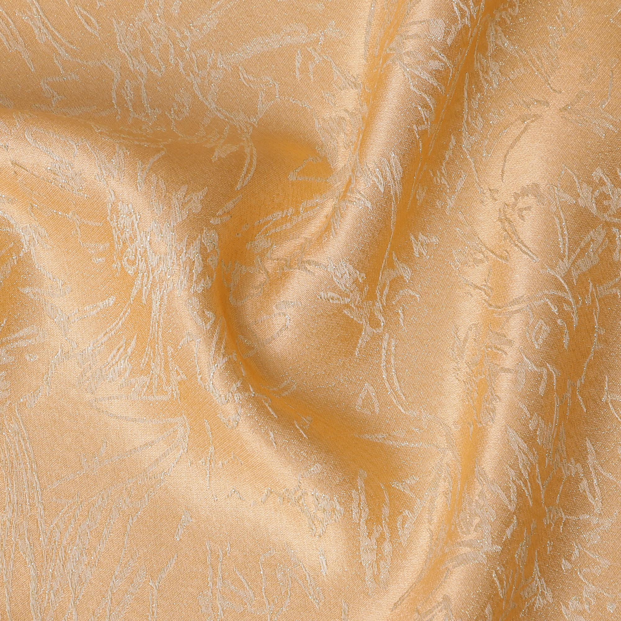 ساتان حريري أنيق باللون الذهبي الخوخي مع نمط زهور معدني معقد من الجاكار
