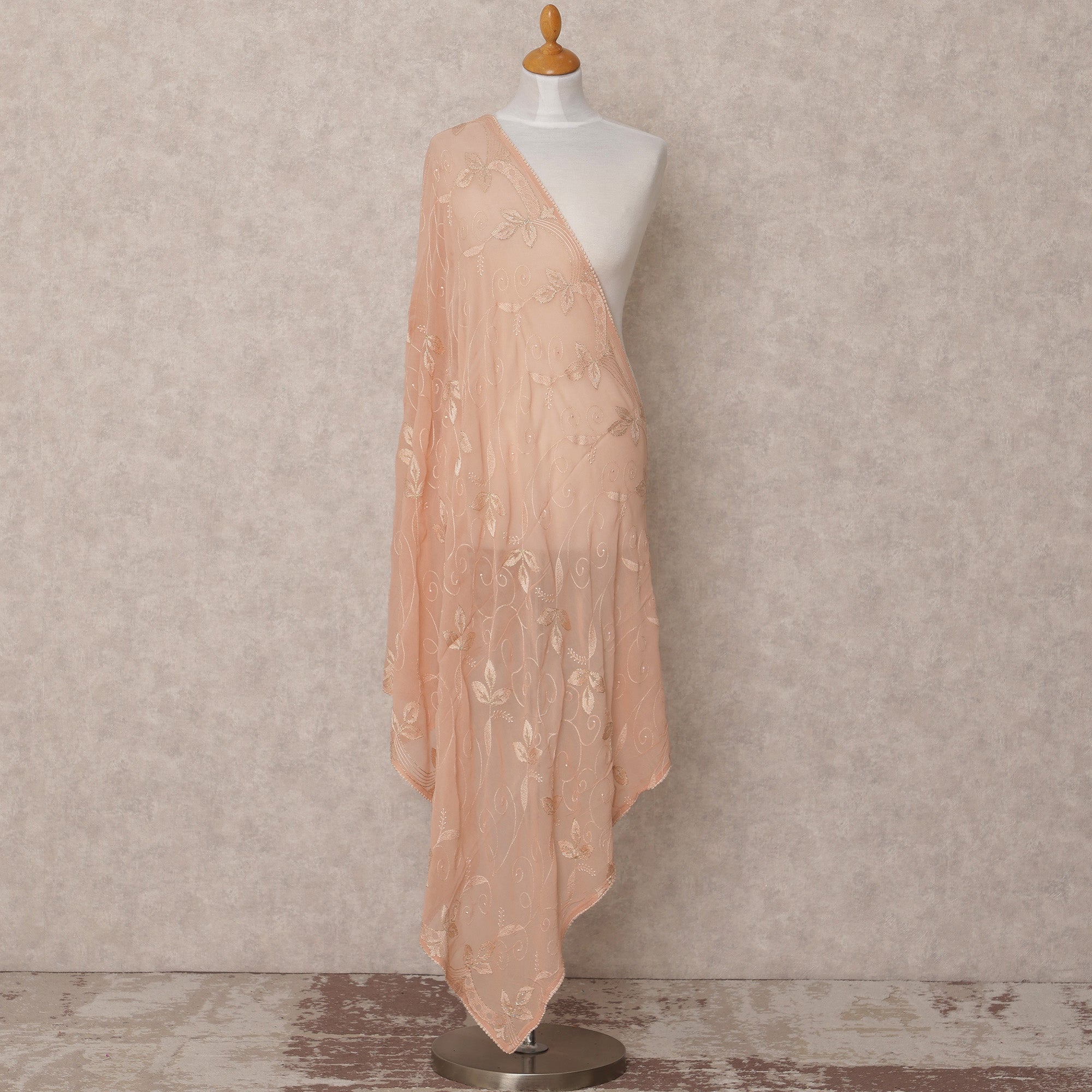 دوباتا جورجيت صناعي مطرز بأوراق الخوخ، مقاس 210×90 سم، الهند - D24837