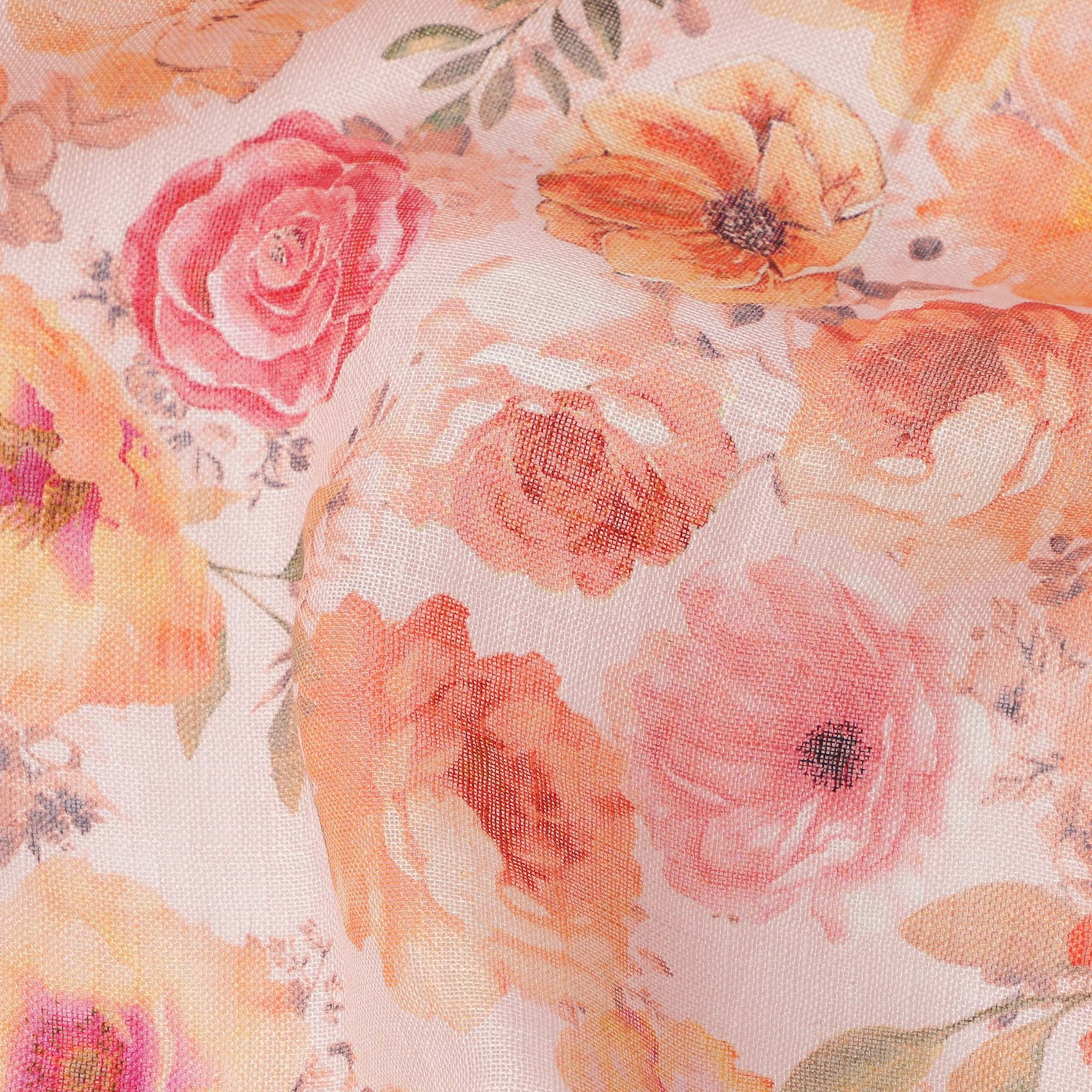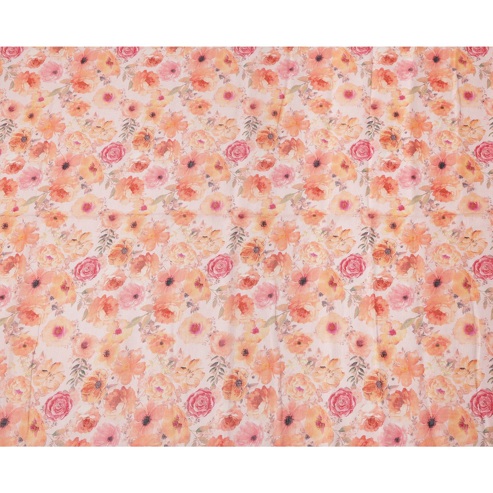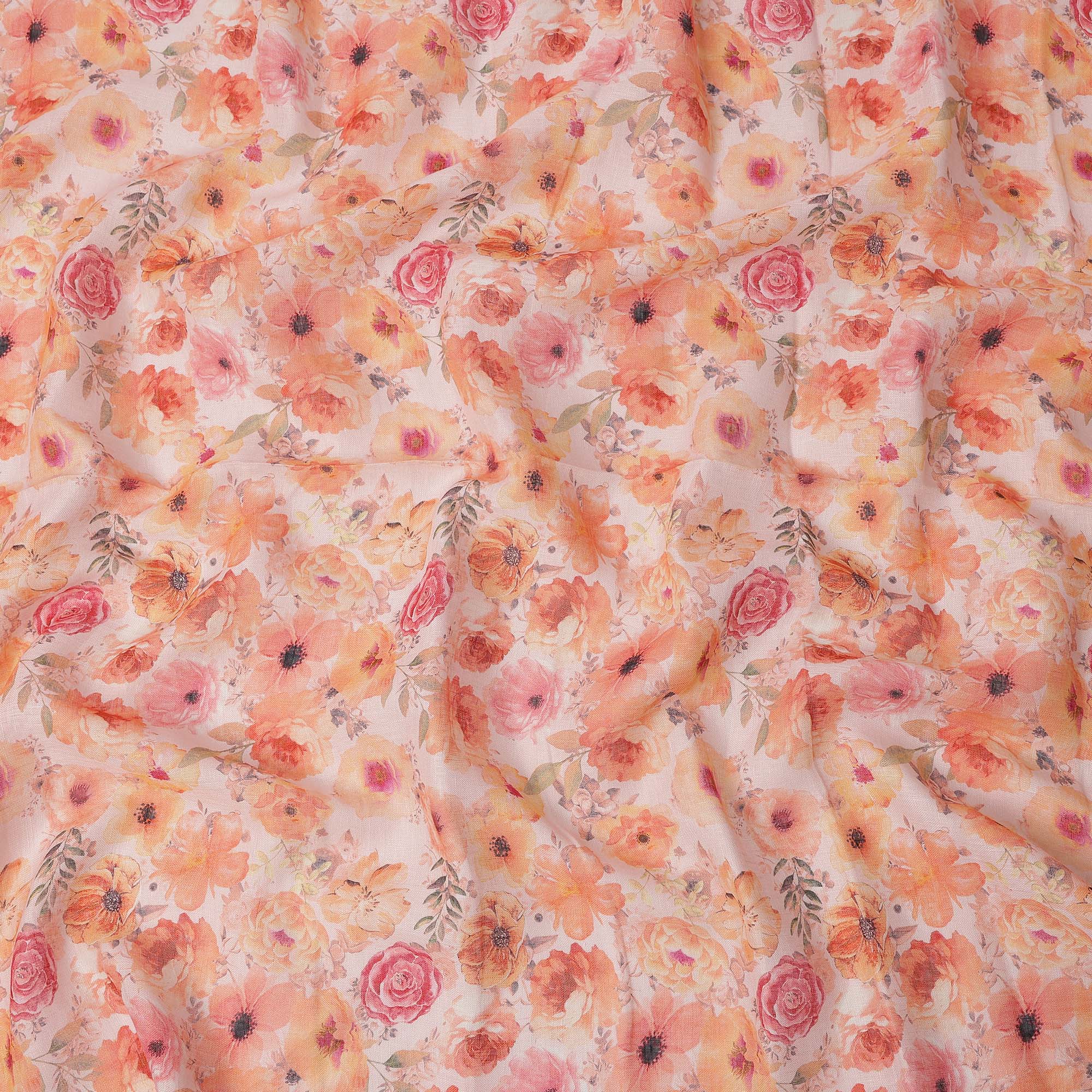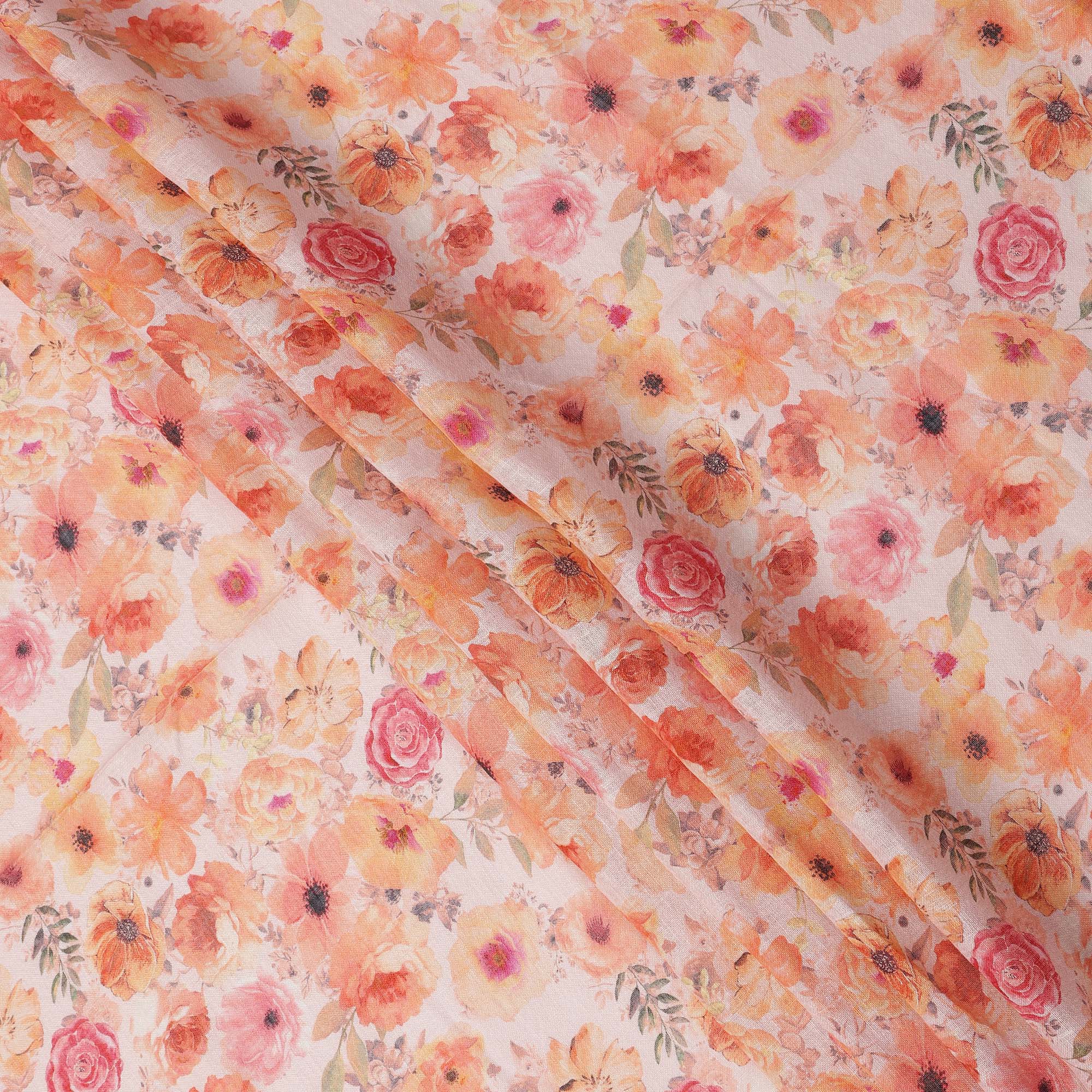 قماش كتان بلون الخوخ مطبوع عليه زهور متعددة الألوان، برتقالي وزهري، عرض 110 سم، صنع في الهند - D25083