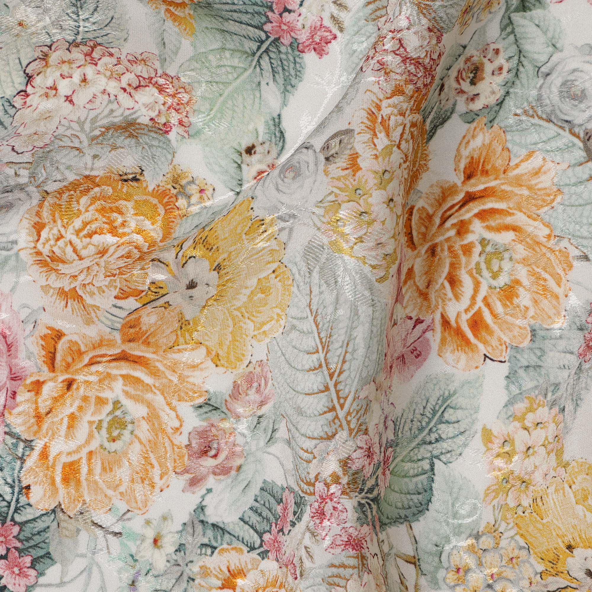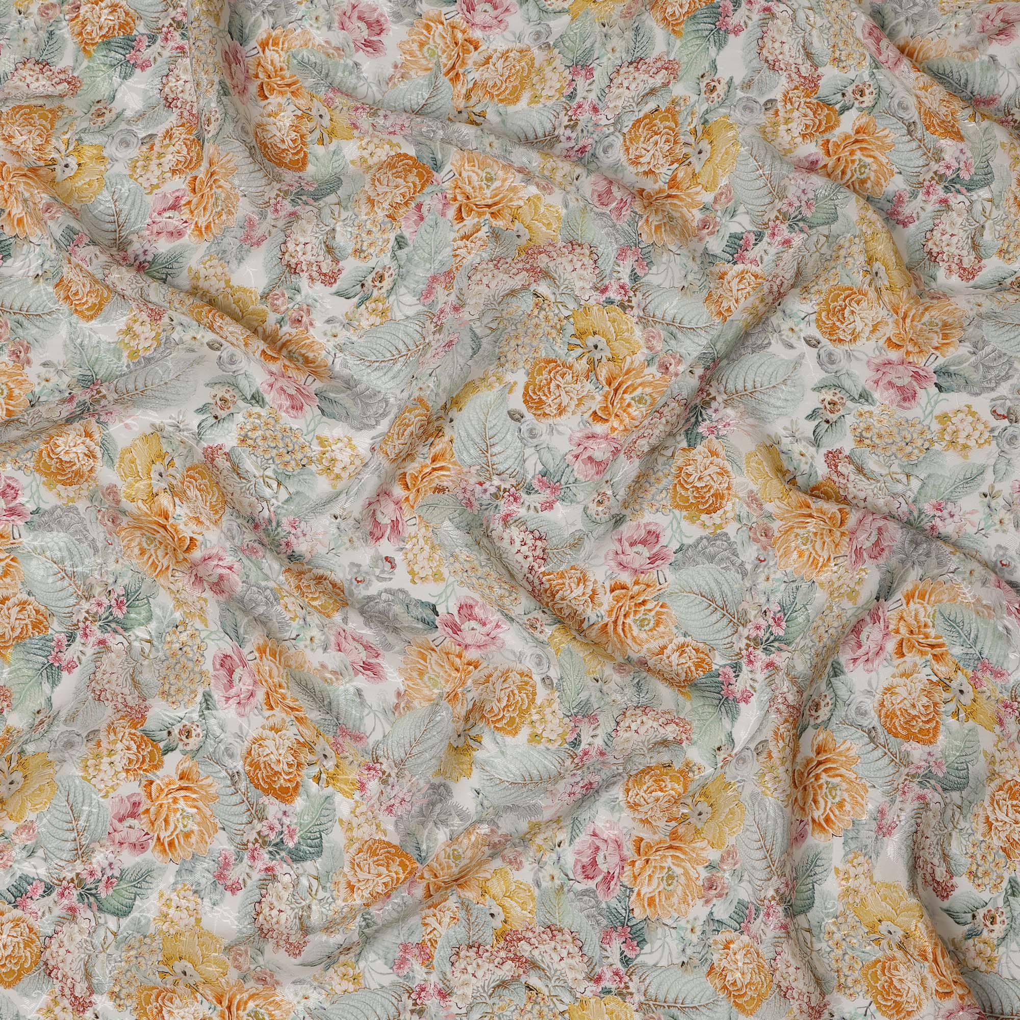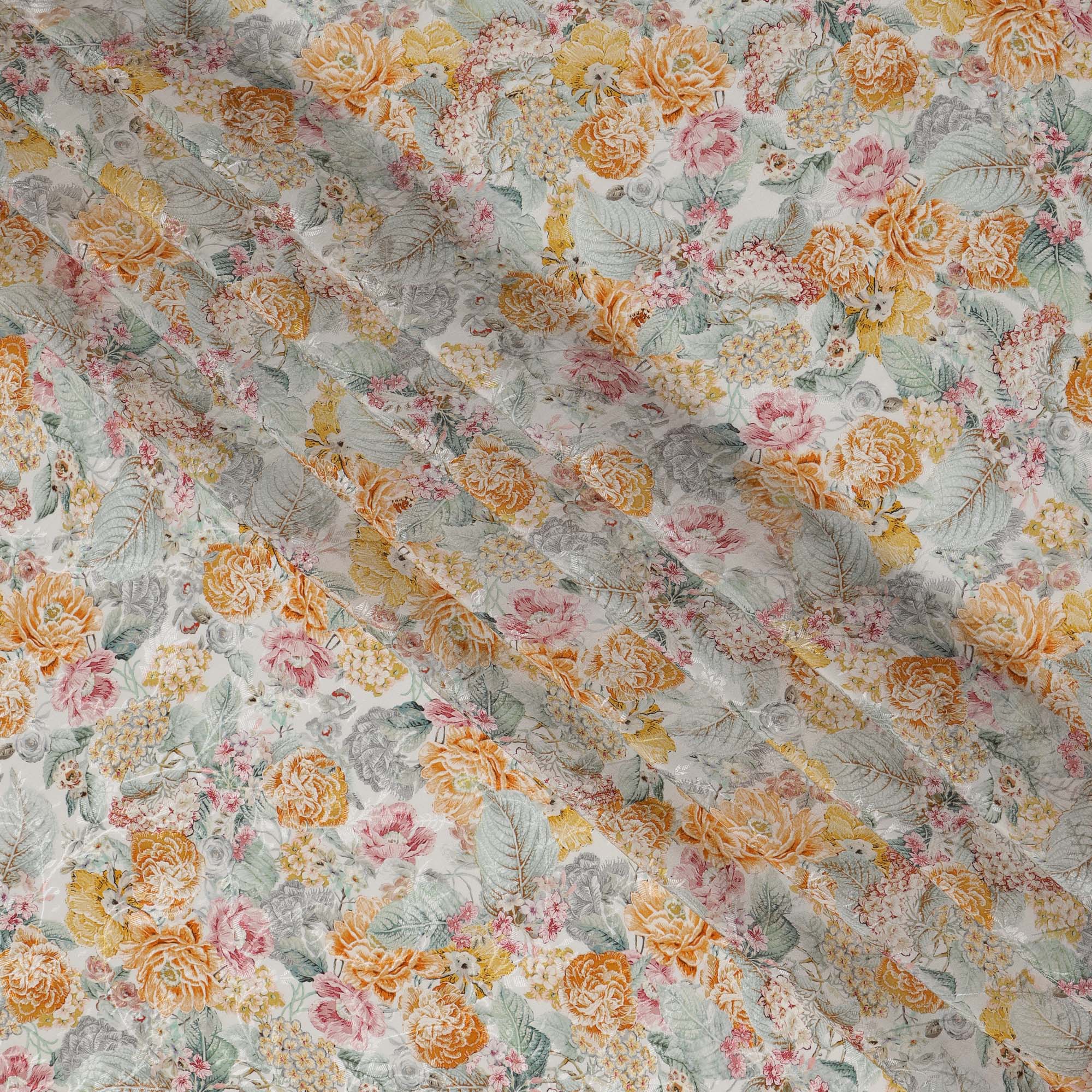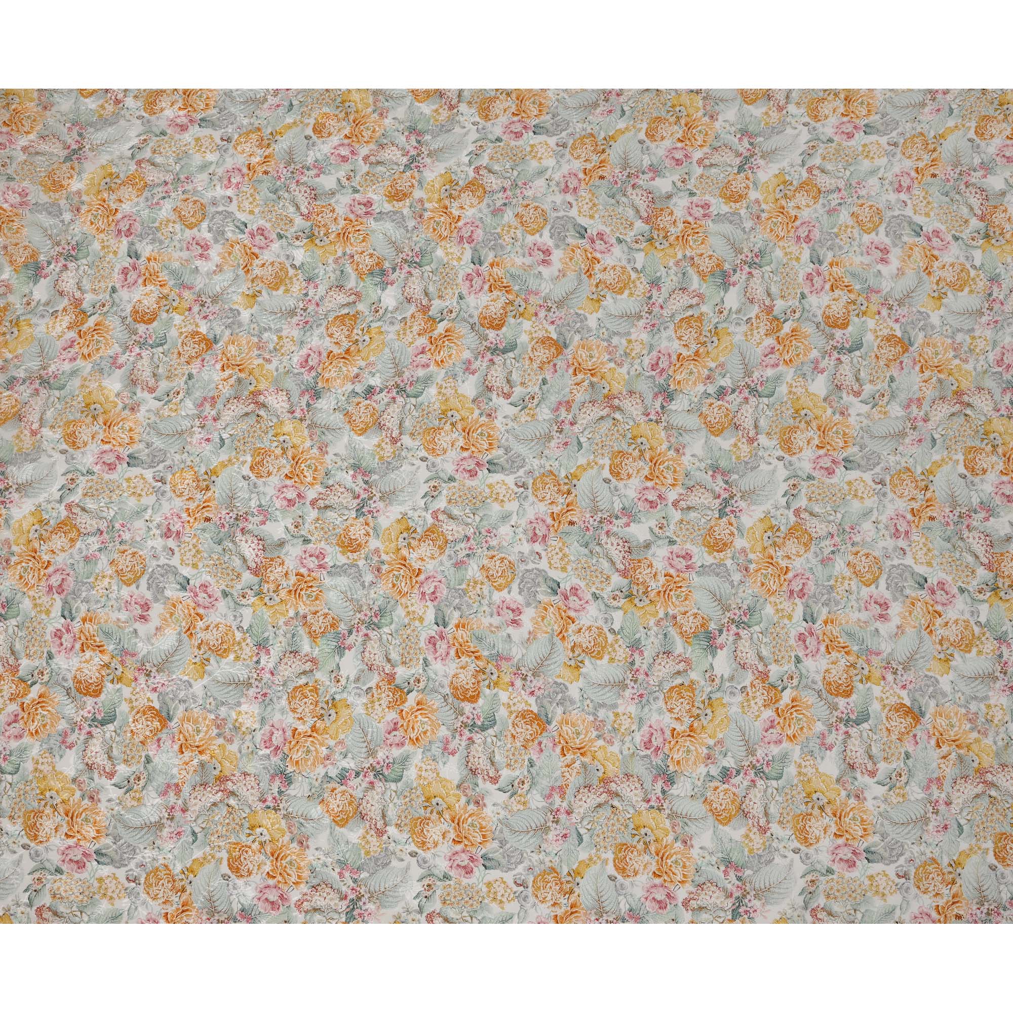قماش فيسكوز بطبعة رقمية زهرية بلون الخوخ والخردل والوردي، عرض 110 سم، صنع في الهند - D22927