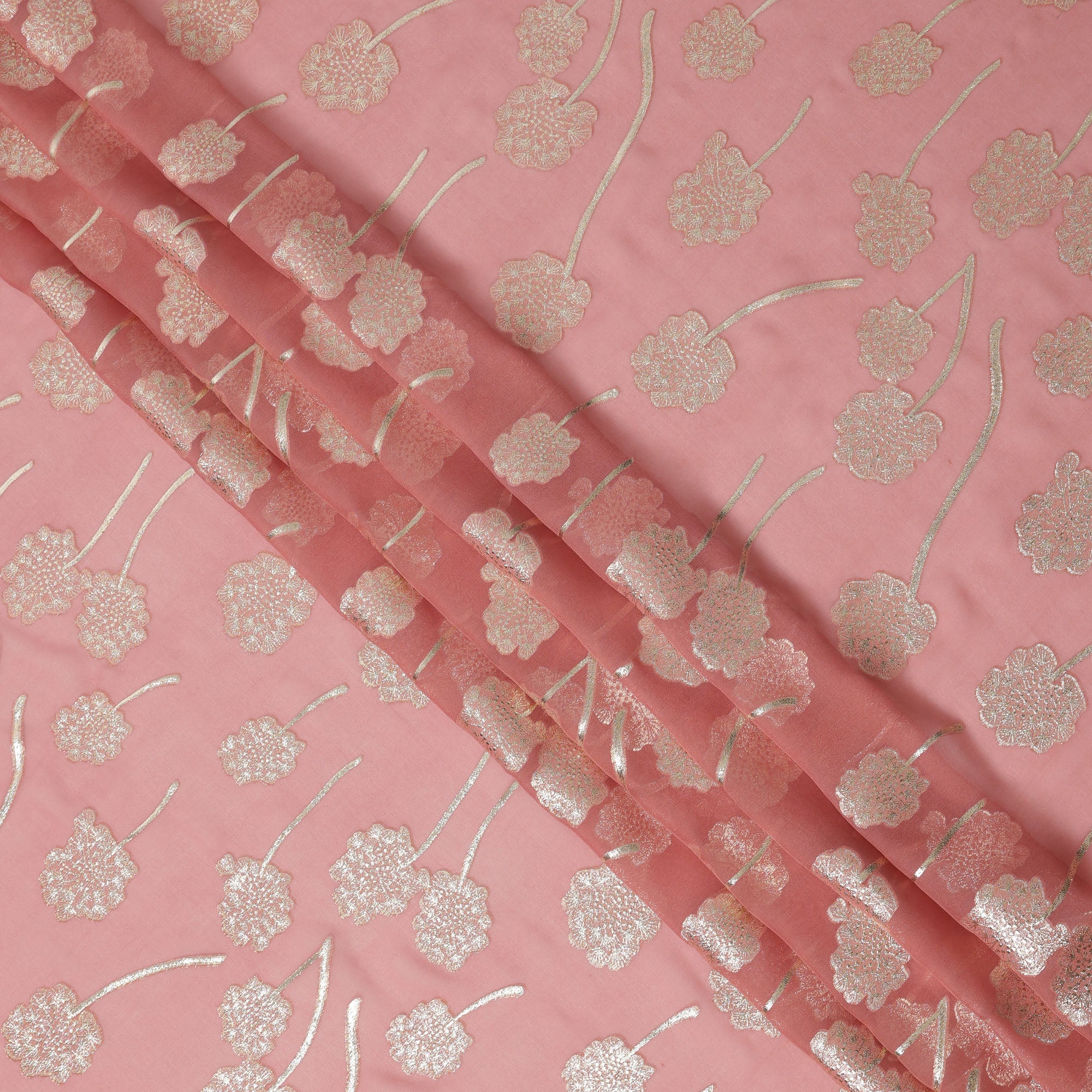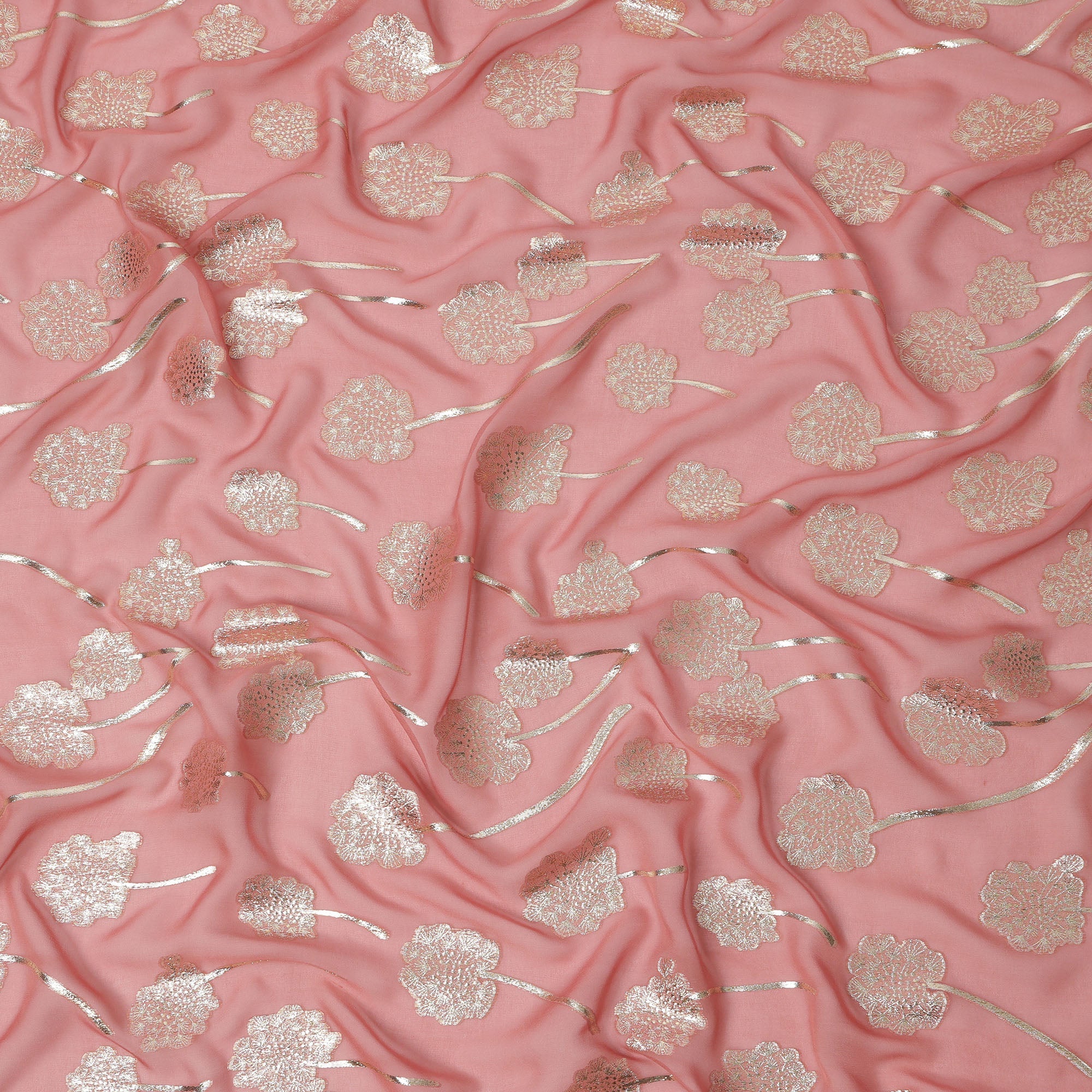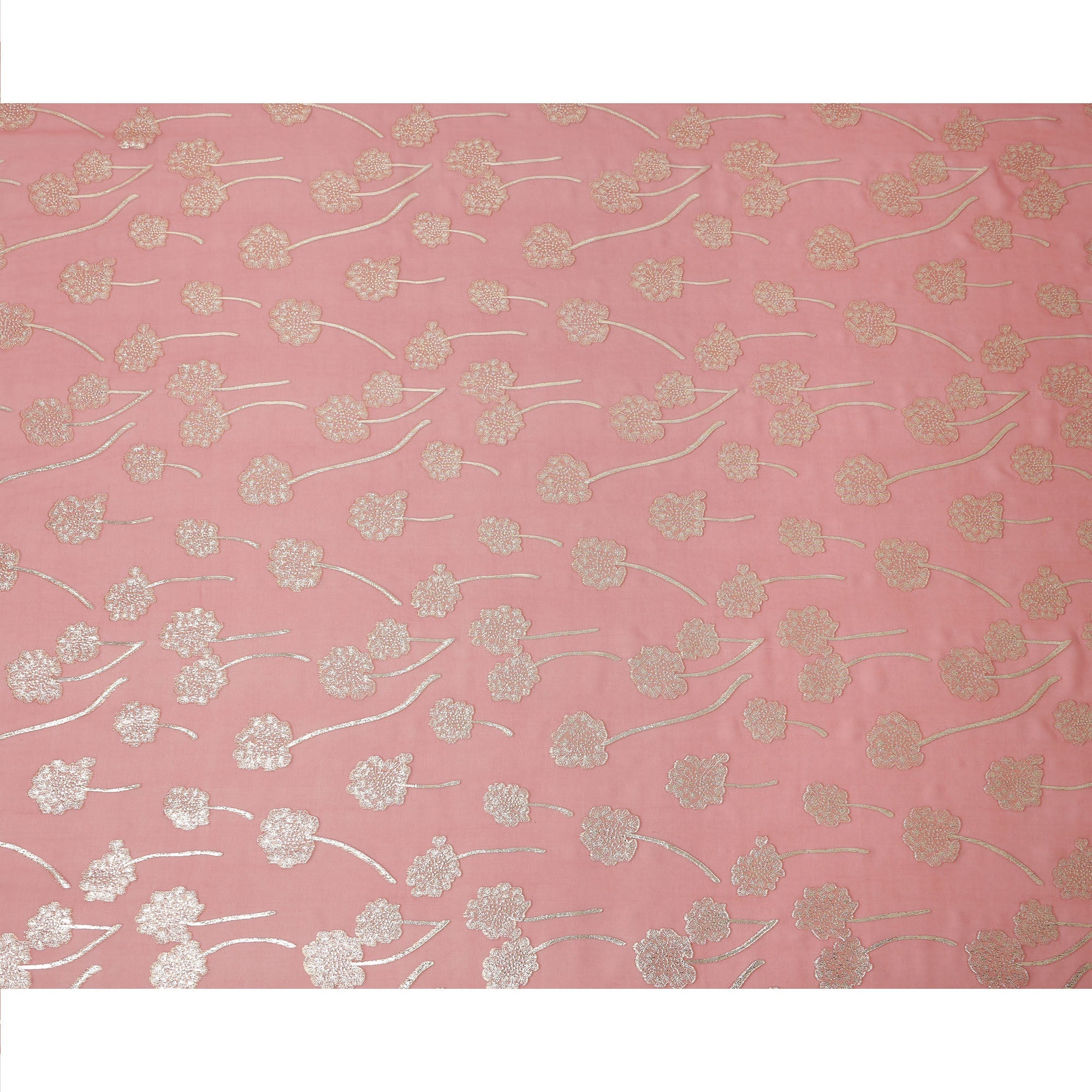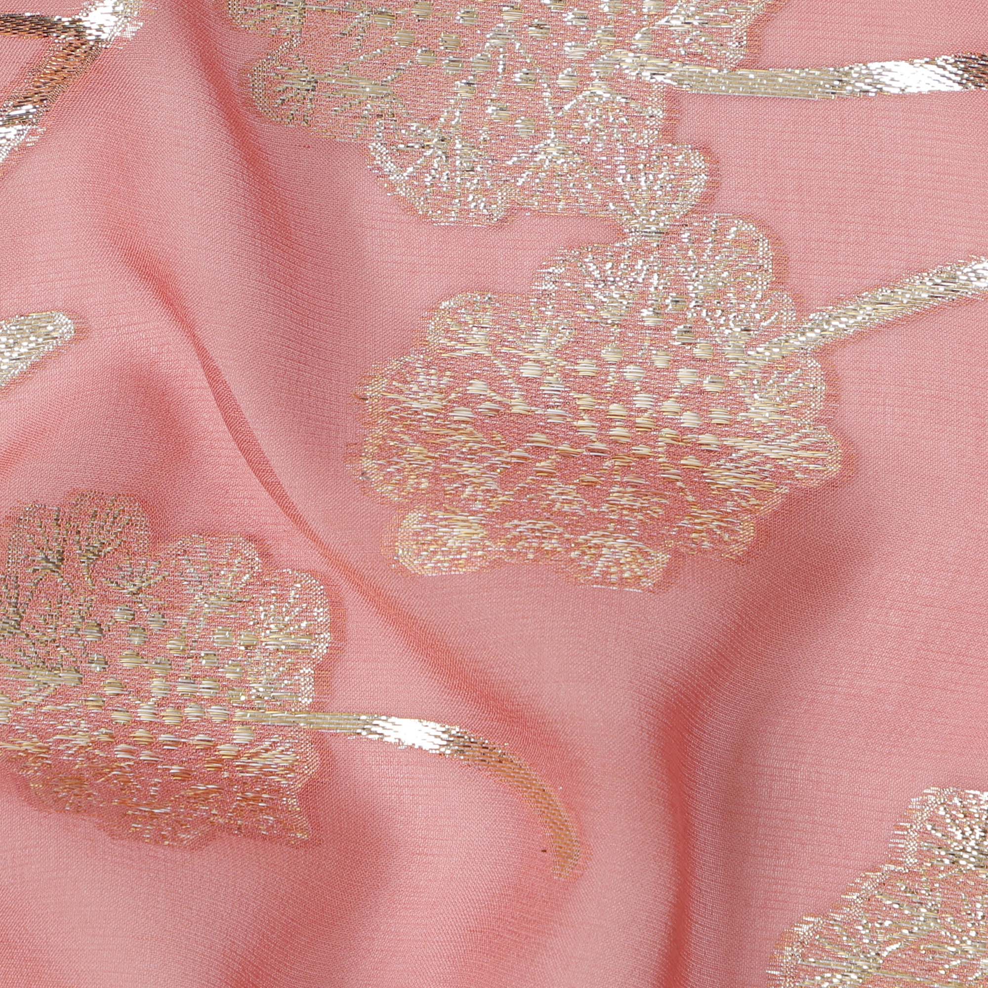 قماش شيفون حريري بنقشة زهور معدنية بلون الخوخ الوردي مع تفاصيل لوريكس ذهبية، 110 سم، كوريا الجنوبية - D23819