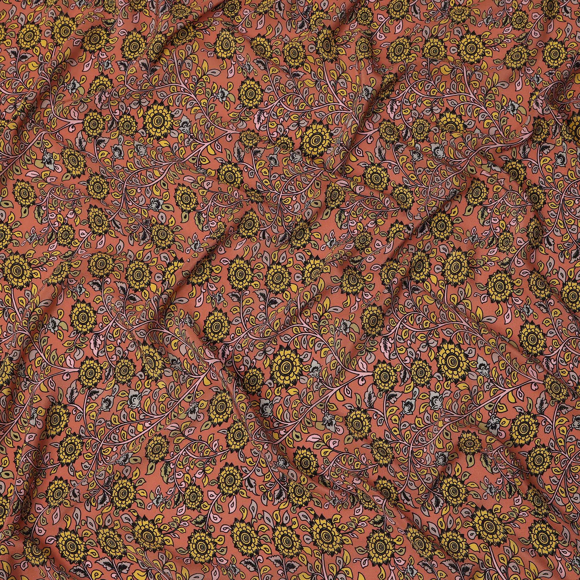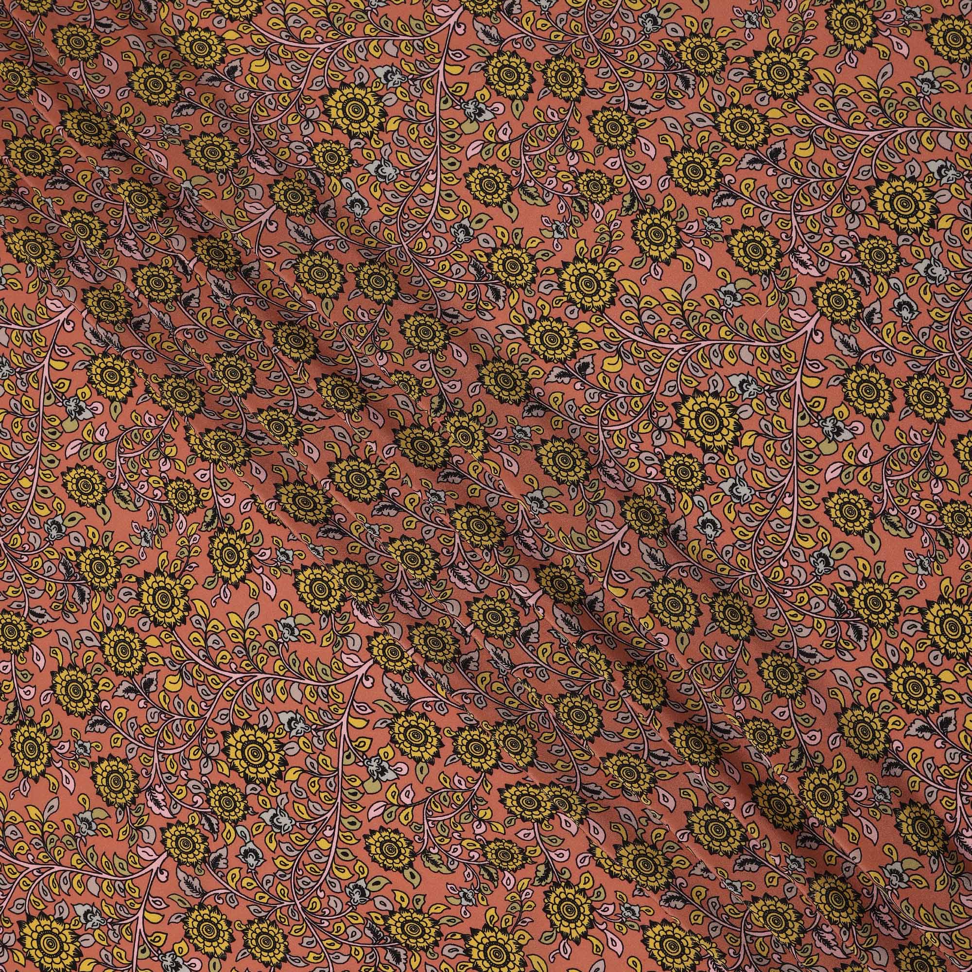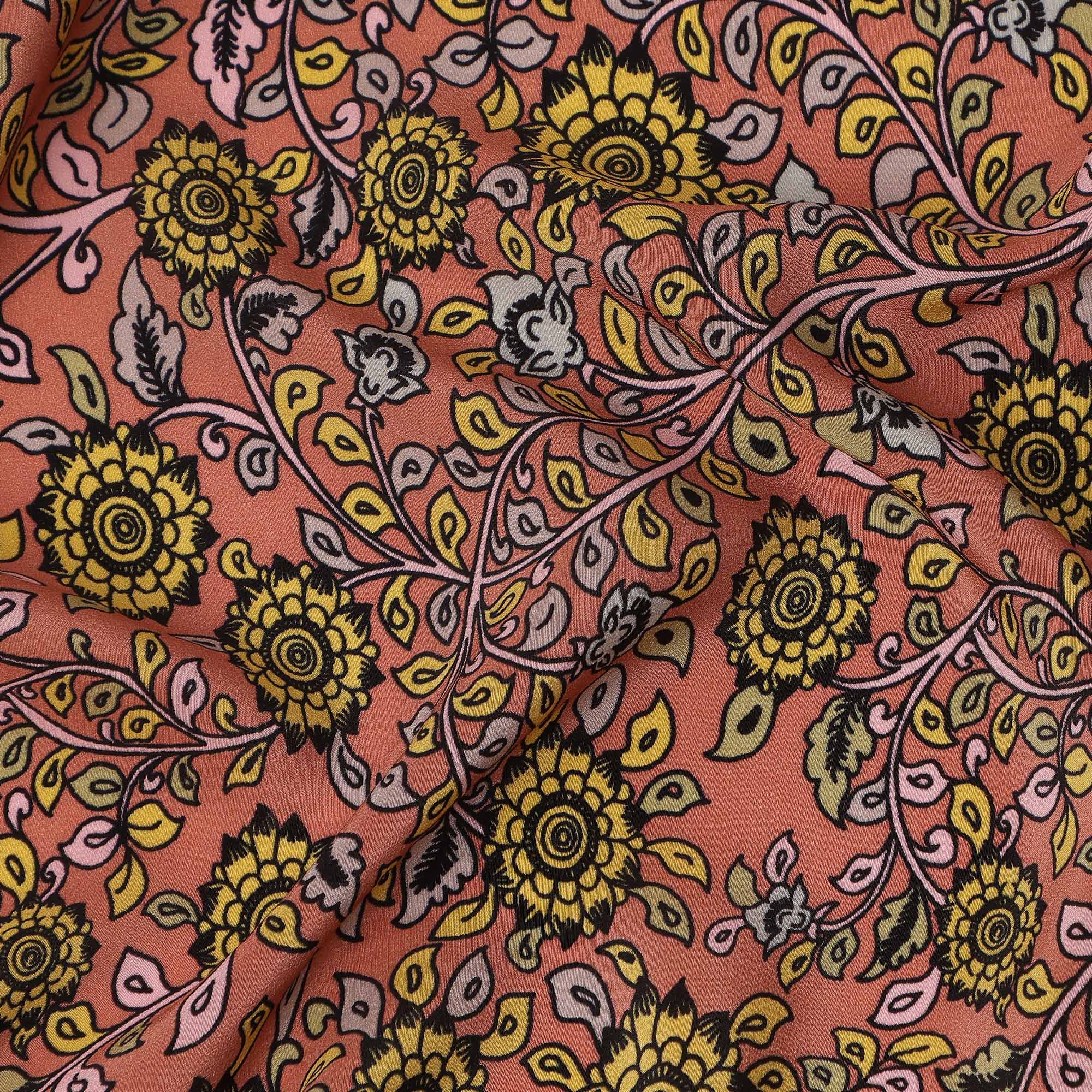 Premium Peach Yellow Floral Pattern Pure Silk Crepe Fabric made in India