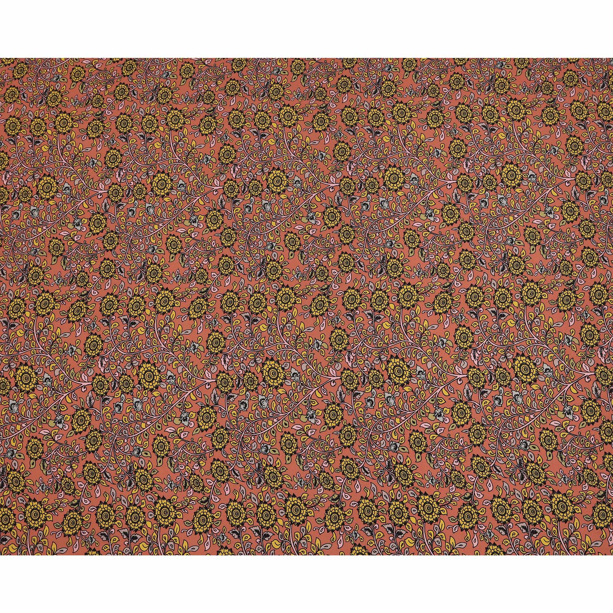 Peach Yellow Floral Pattern Pure Silk Crepe Fabric, Width 110 Cms, Made in India-D26084