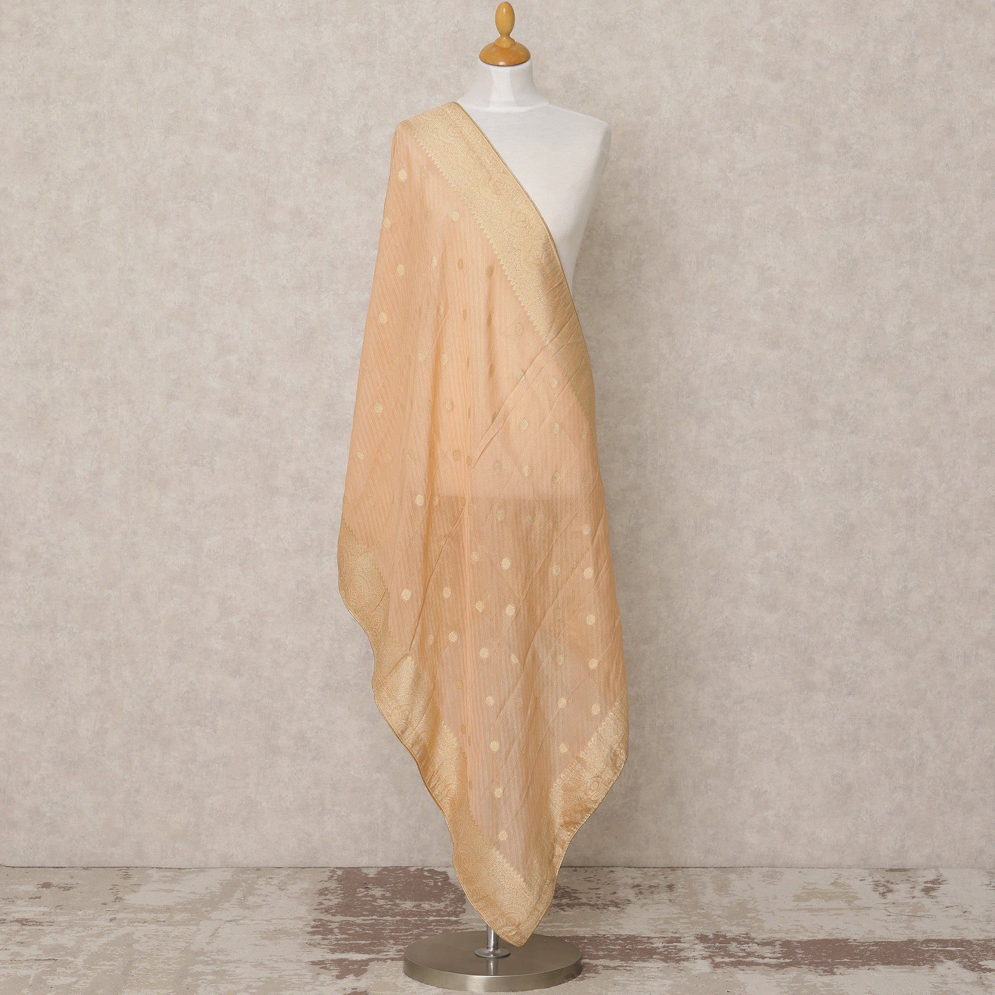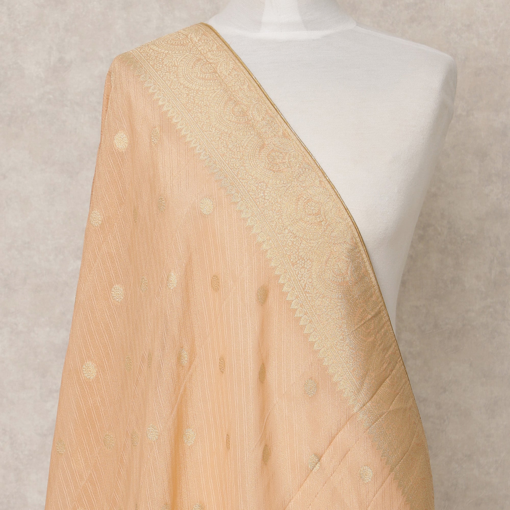 دوباتا من قماش بروكيد صناعي وردي خوخي مع زخارف زاري دوت منسوجة، 210 × 80 سم، صنع في الهند - D24111
