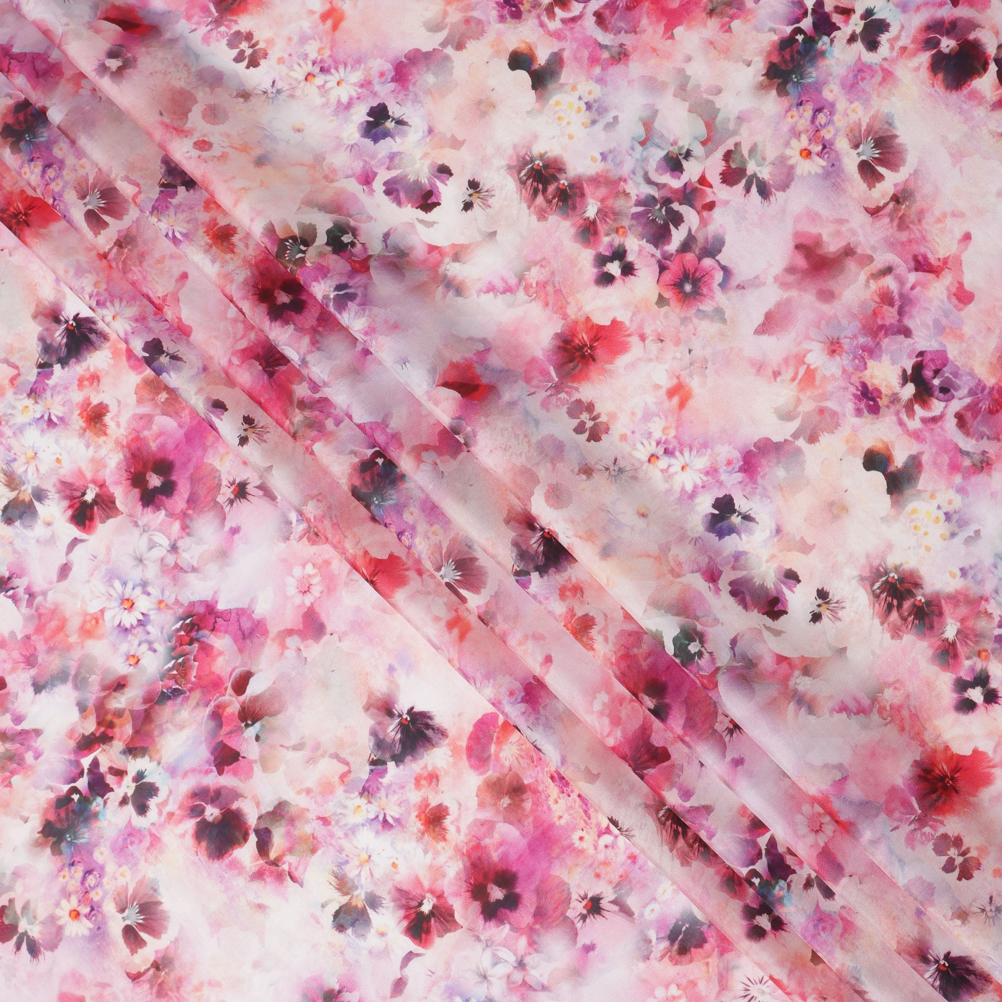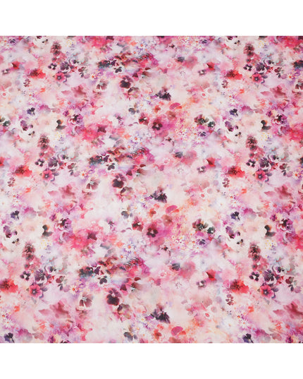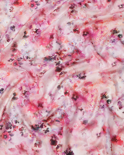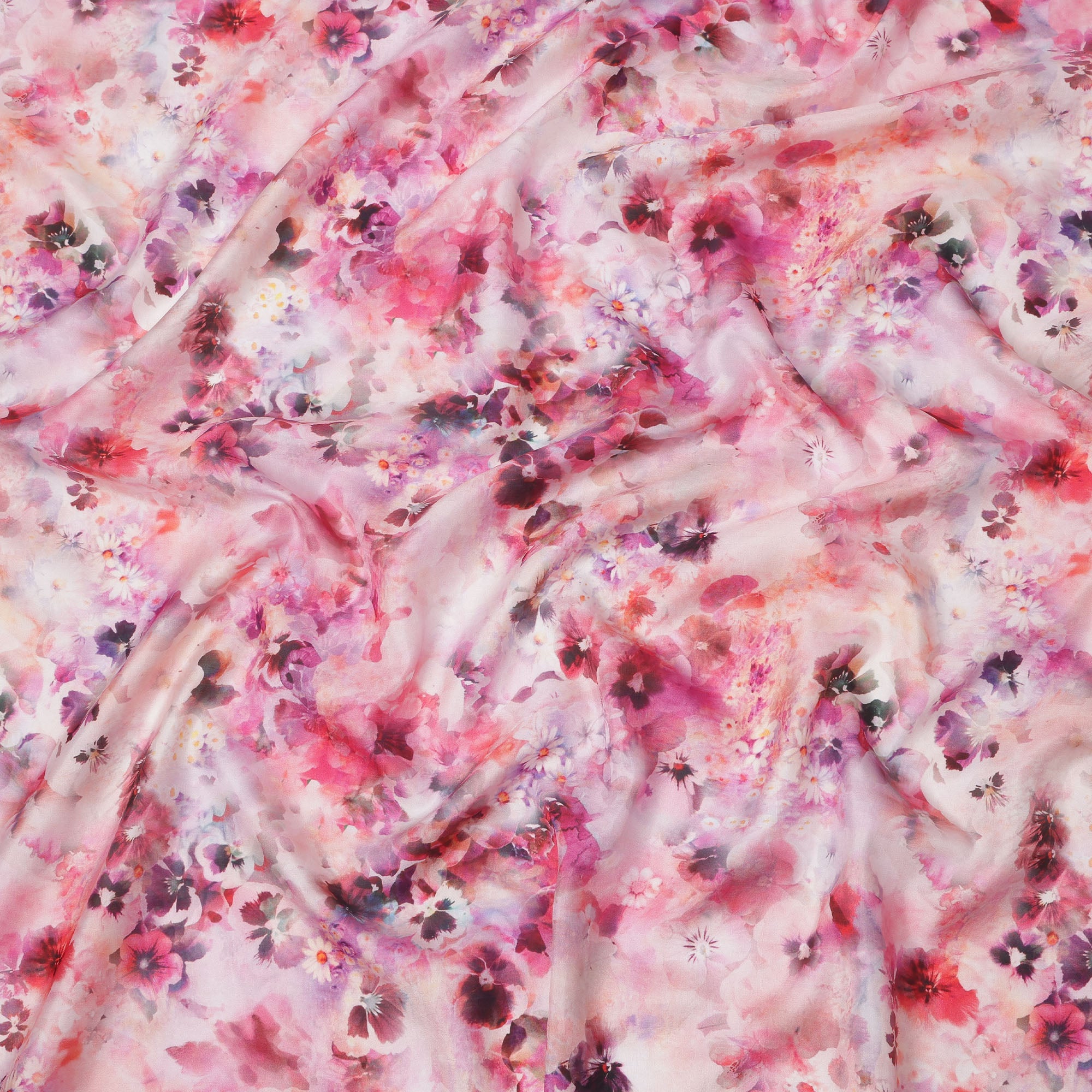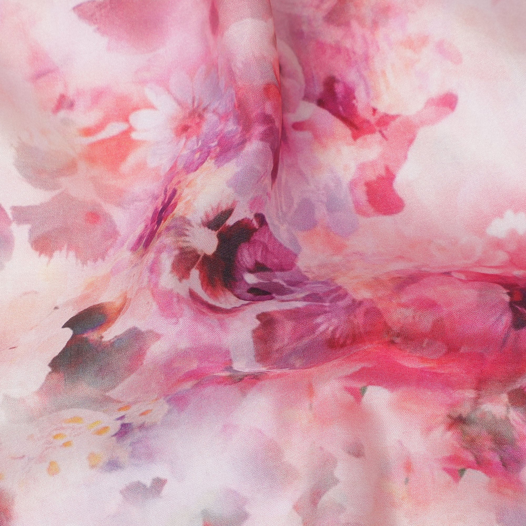 قماش كريب حريري خالص مطبوع بألوان مائية وردية وفوشيا، عرض 110 سم، صنع في الهند - D24021