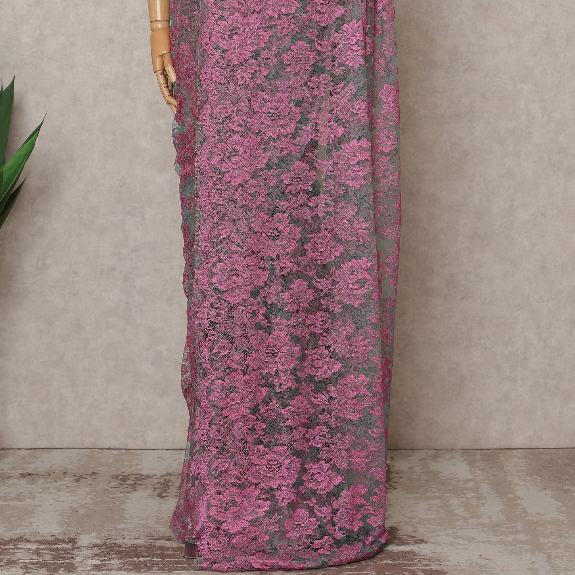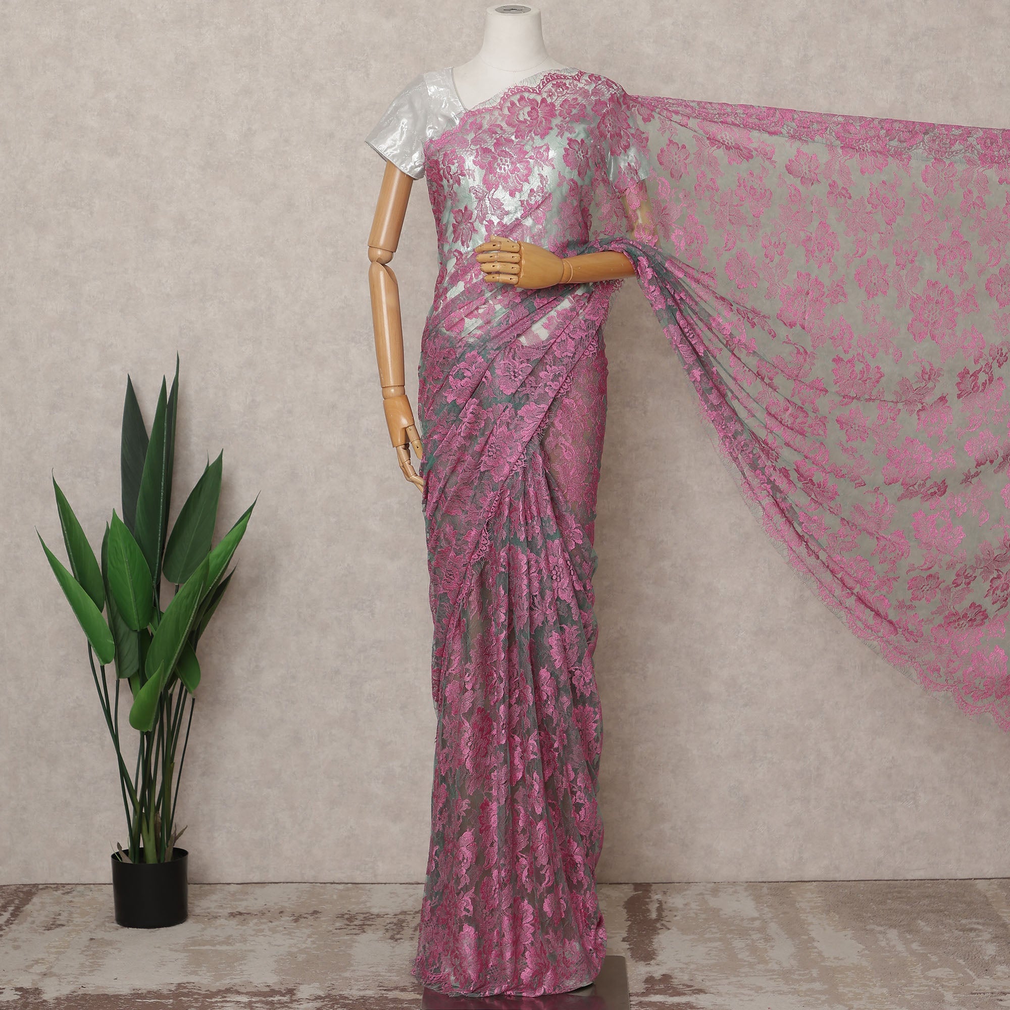 Pink & Blue Premium French 2-Tone Chantilly Lace Saree Fabric – 5.5 Meters Length, 110 Cms Width, Imported from France-D25700