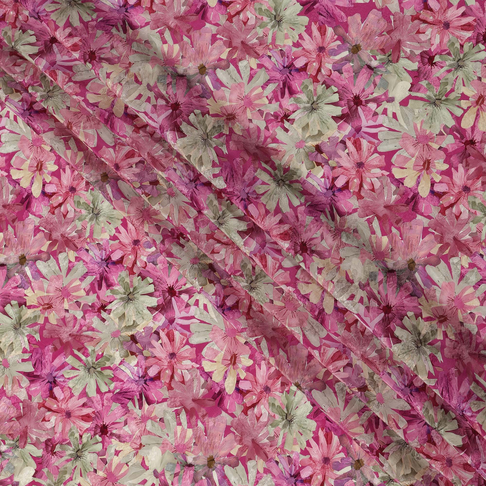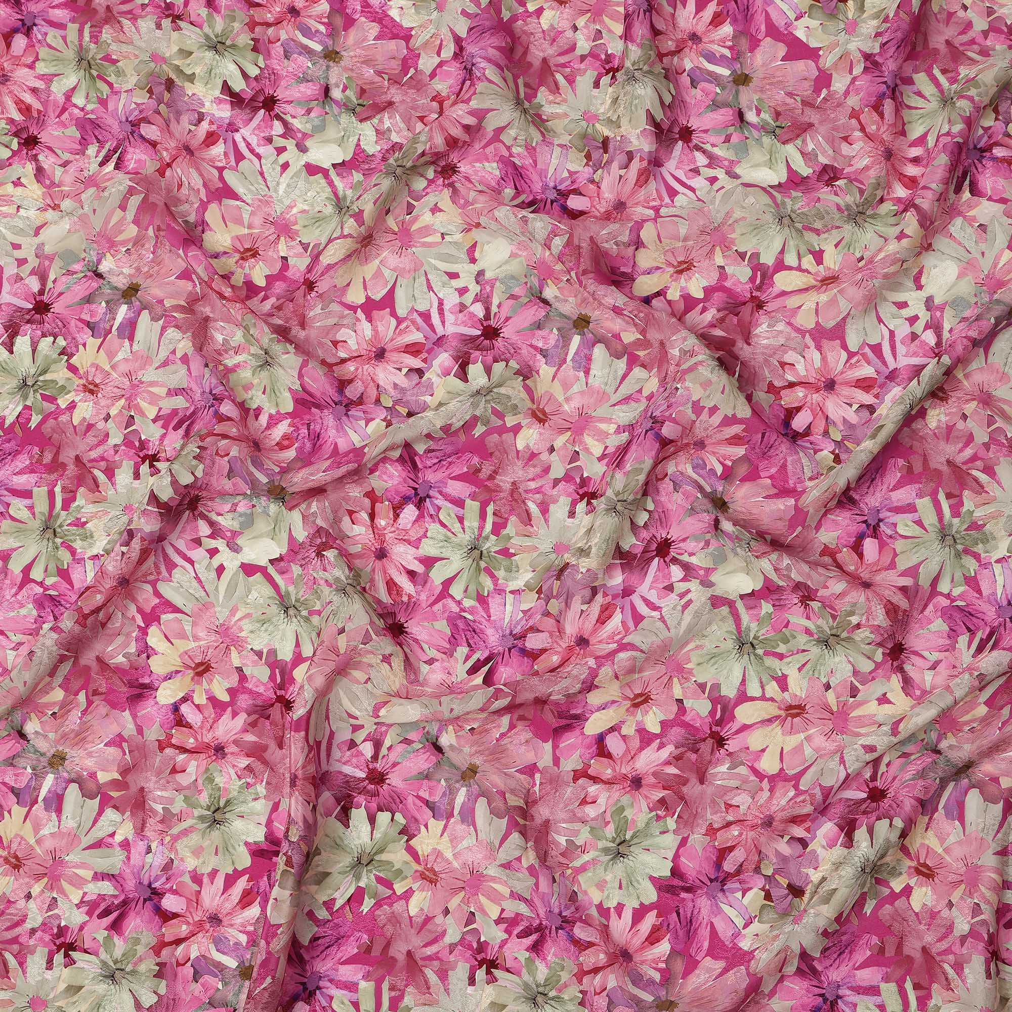 • Pink Floral Printed Viscose Fabric 110 Cms India Origin-D27555