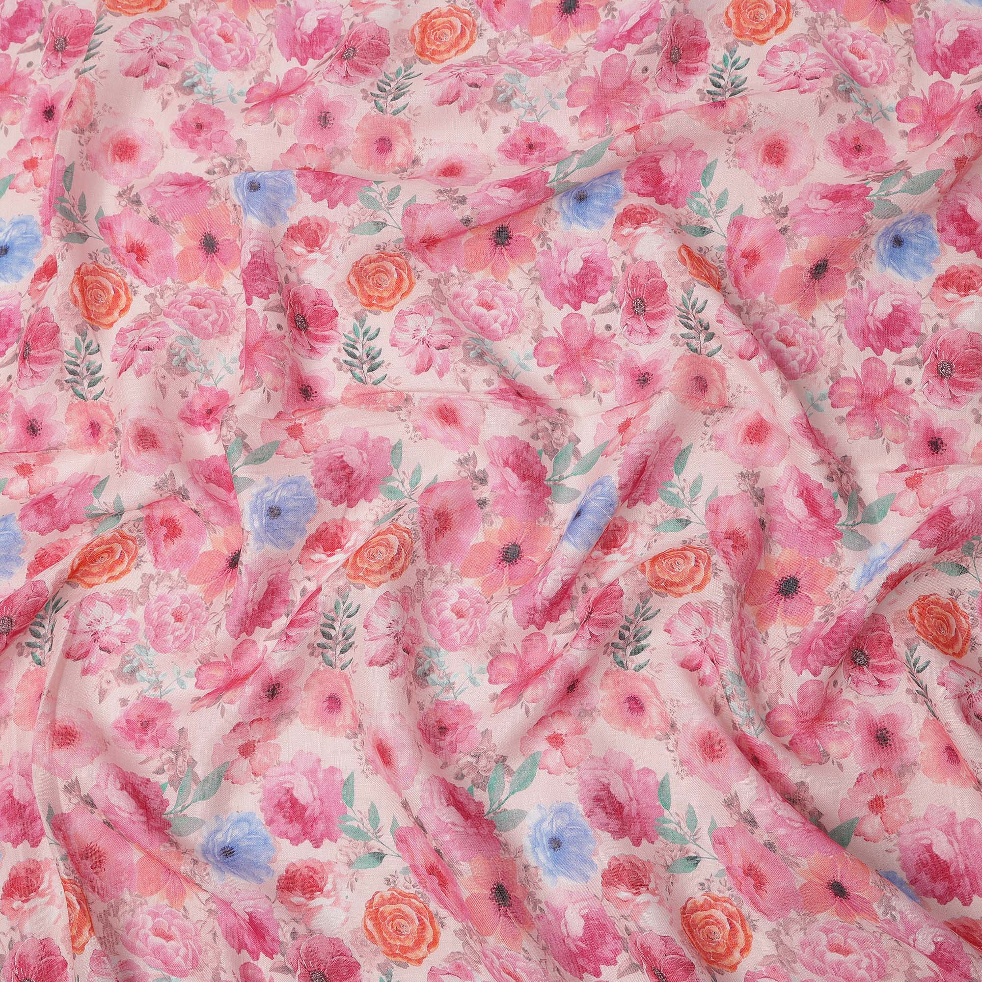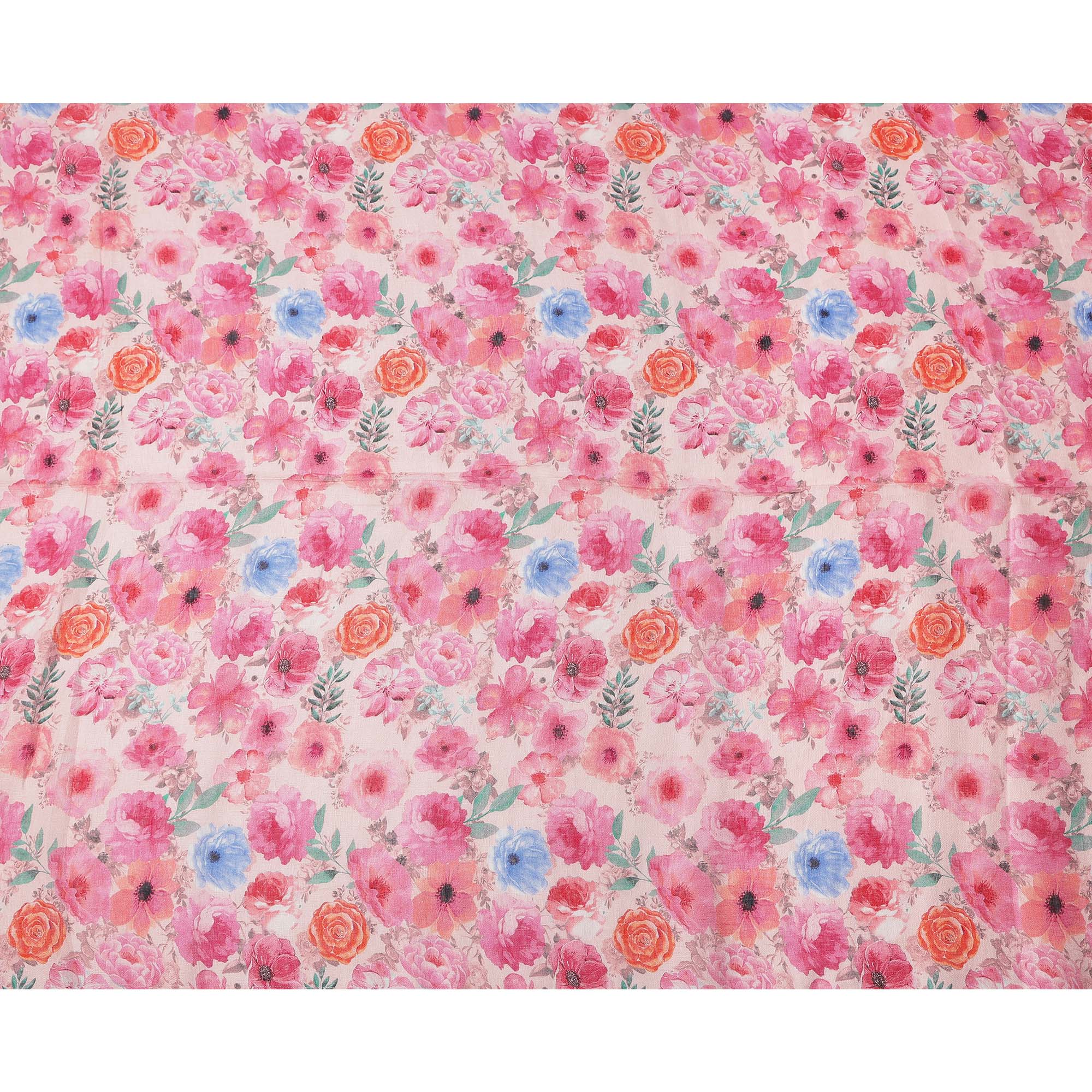 قماش كتان وردي مطبوع عليه زهور بتصميم متعدد الألوان من أزهار البرتقال والأزرق، عرض 110 سم، صنع في الهند - D25084
