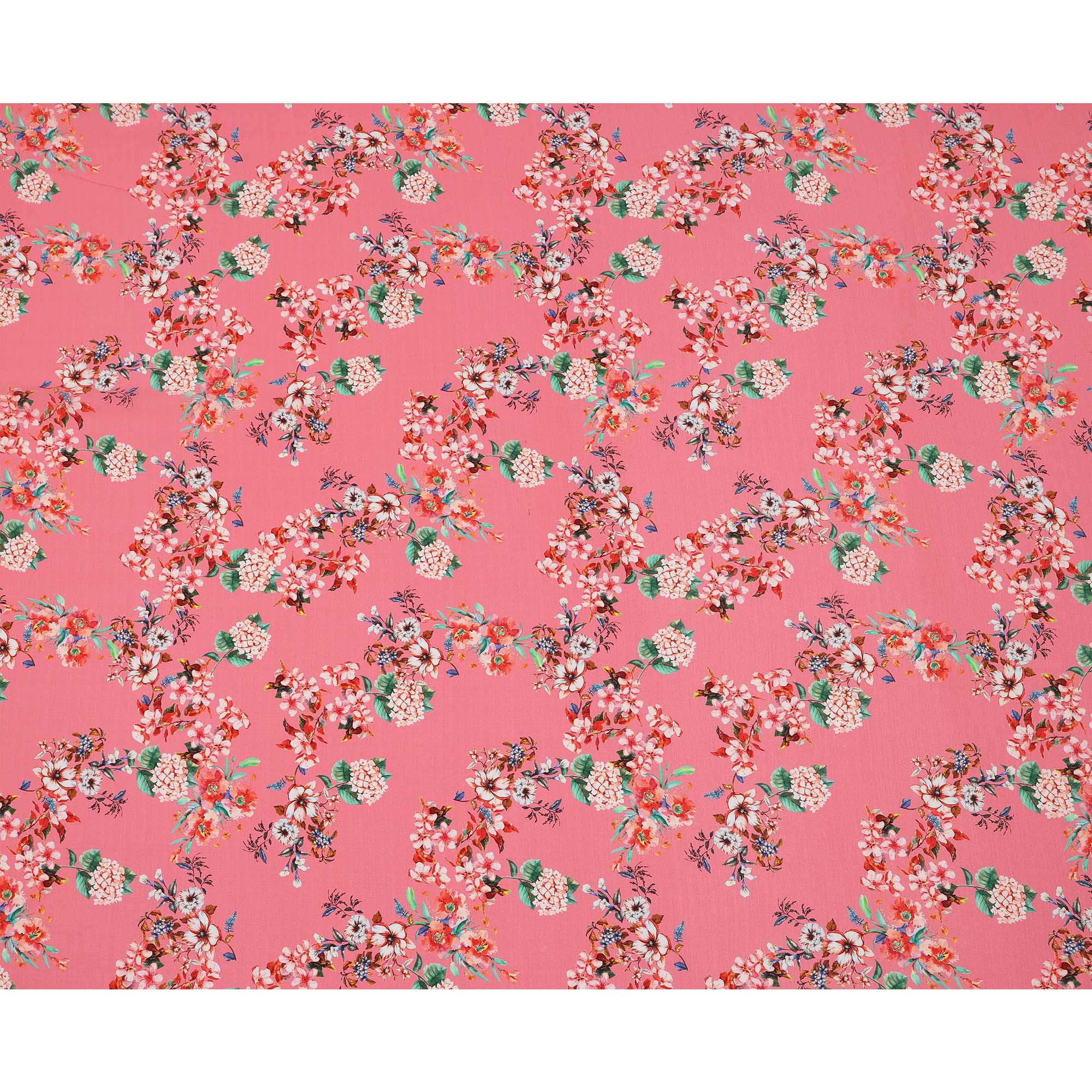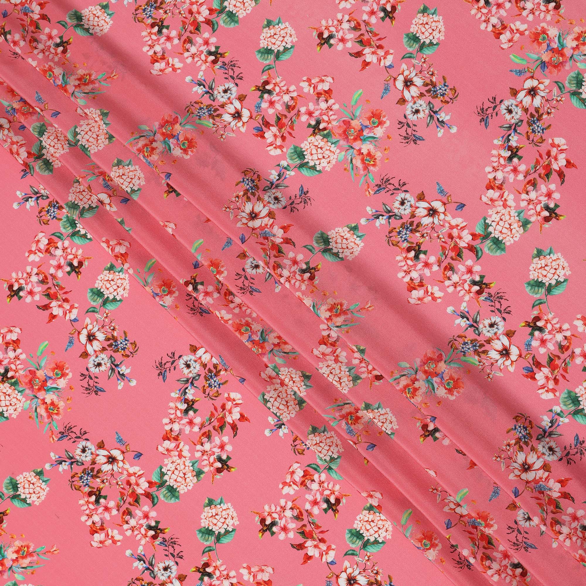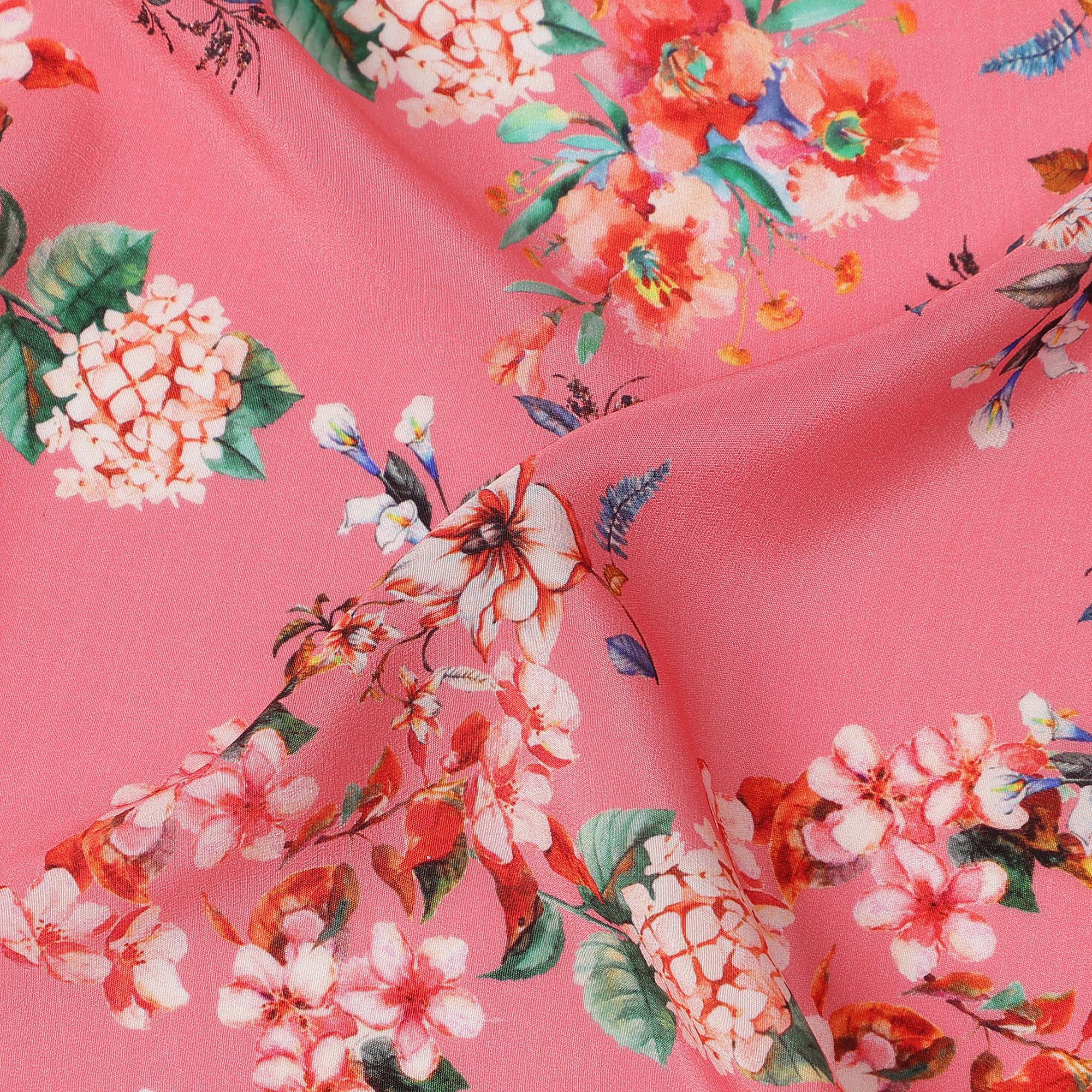 Premium Pink Multicolor Floral Print Pure Silk Crepe Fabric made in India