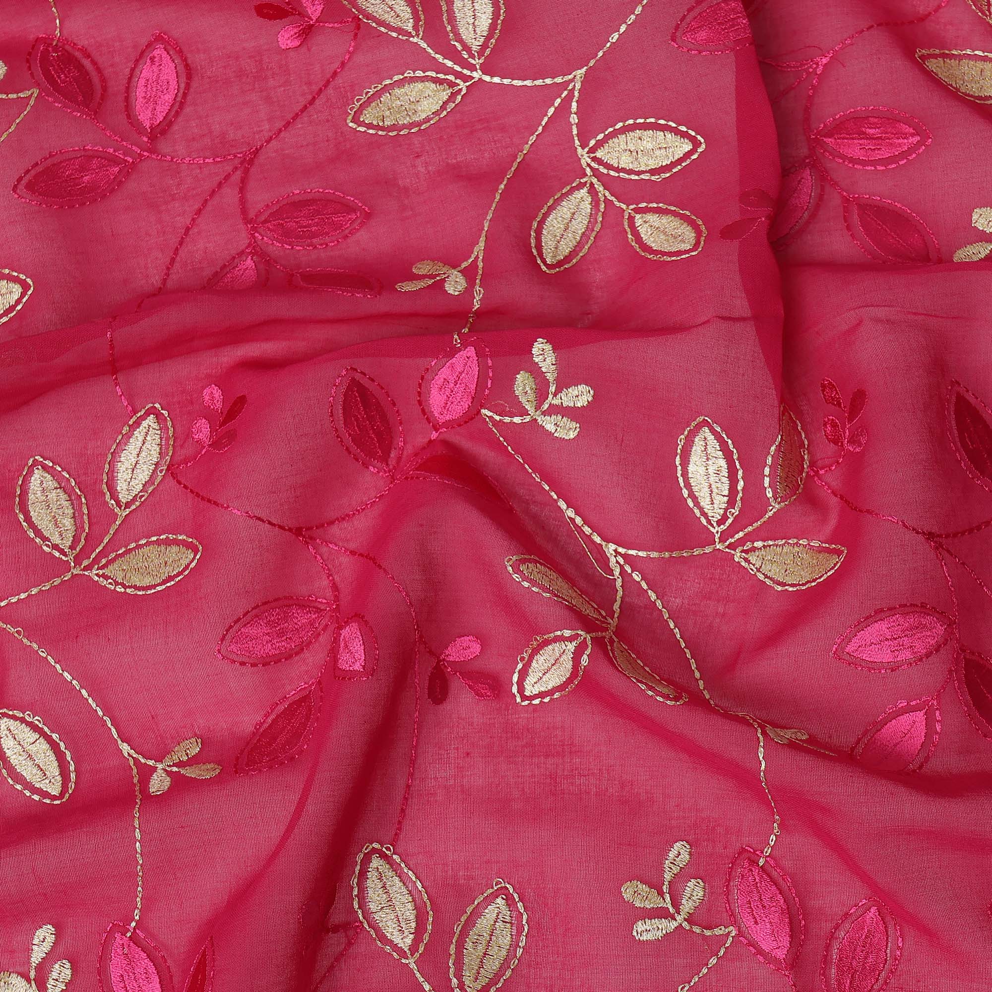 Vibrant pink base adorned with golden and fuchsia embroidery