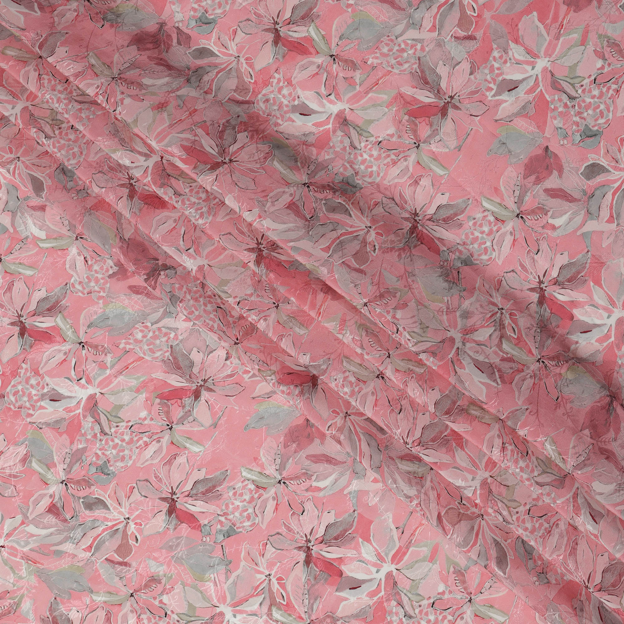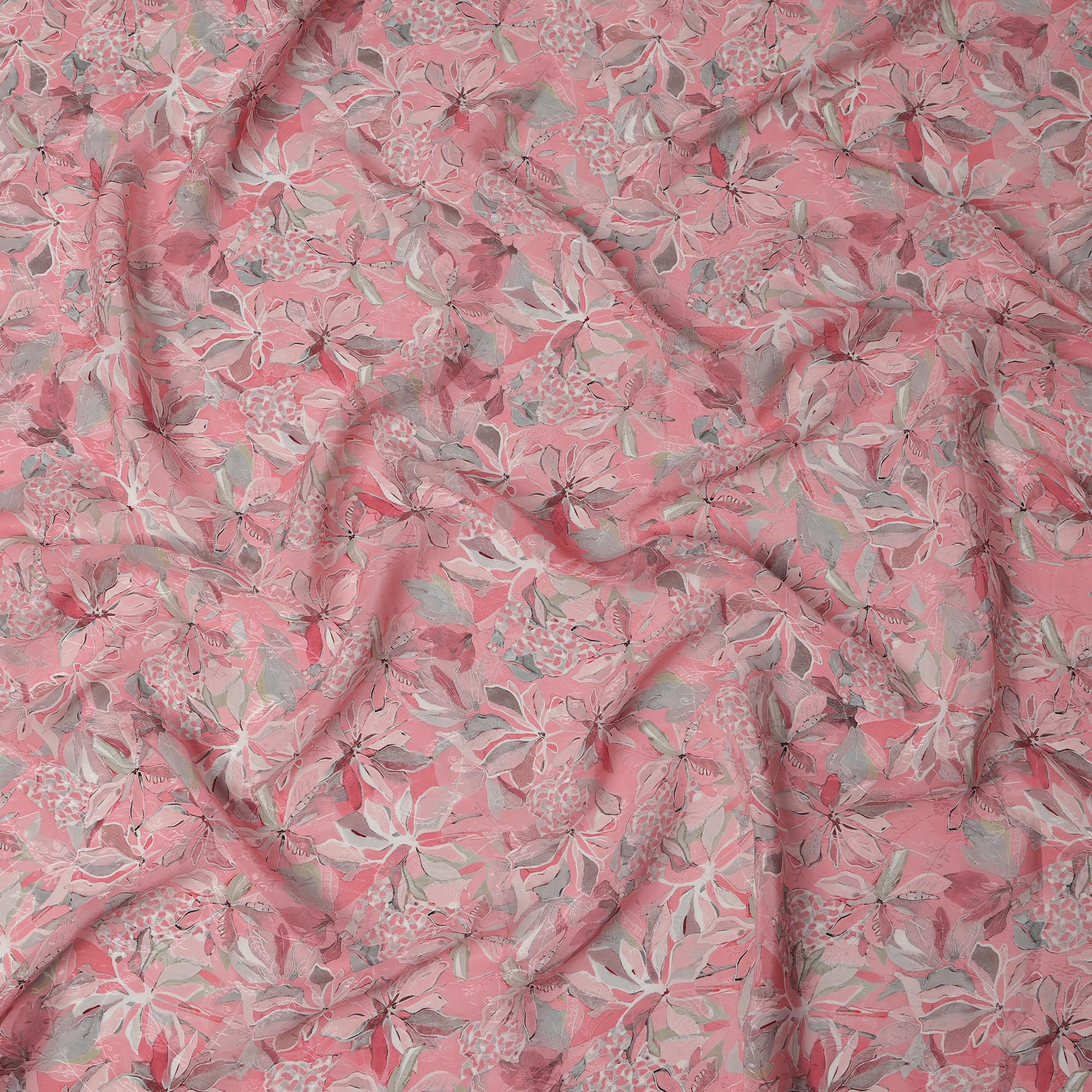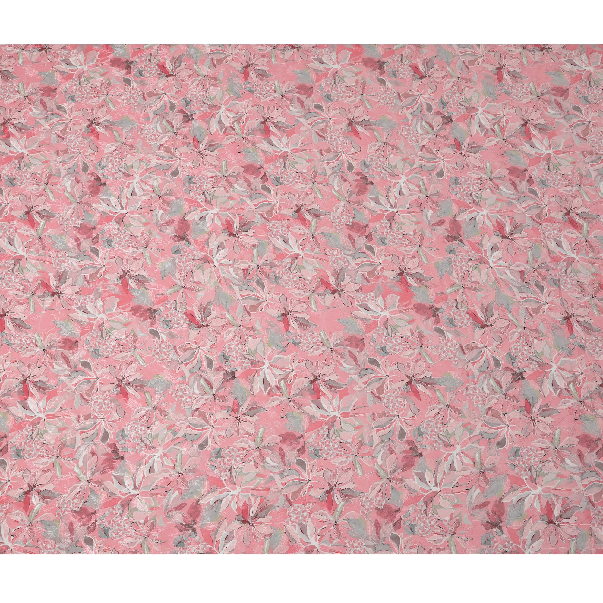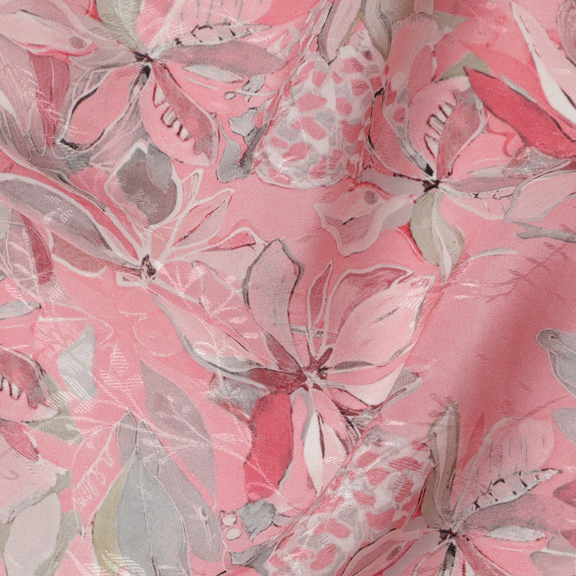 قماش كريب فيسكوز مطبوع عليه زهور استوائية وردية، عرض 110 سم، الهند - D23426