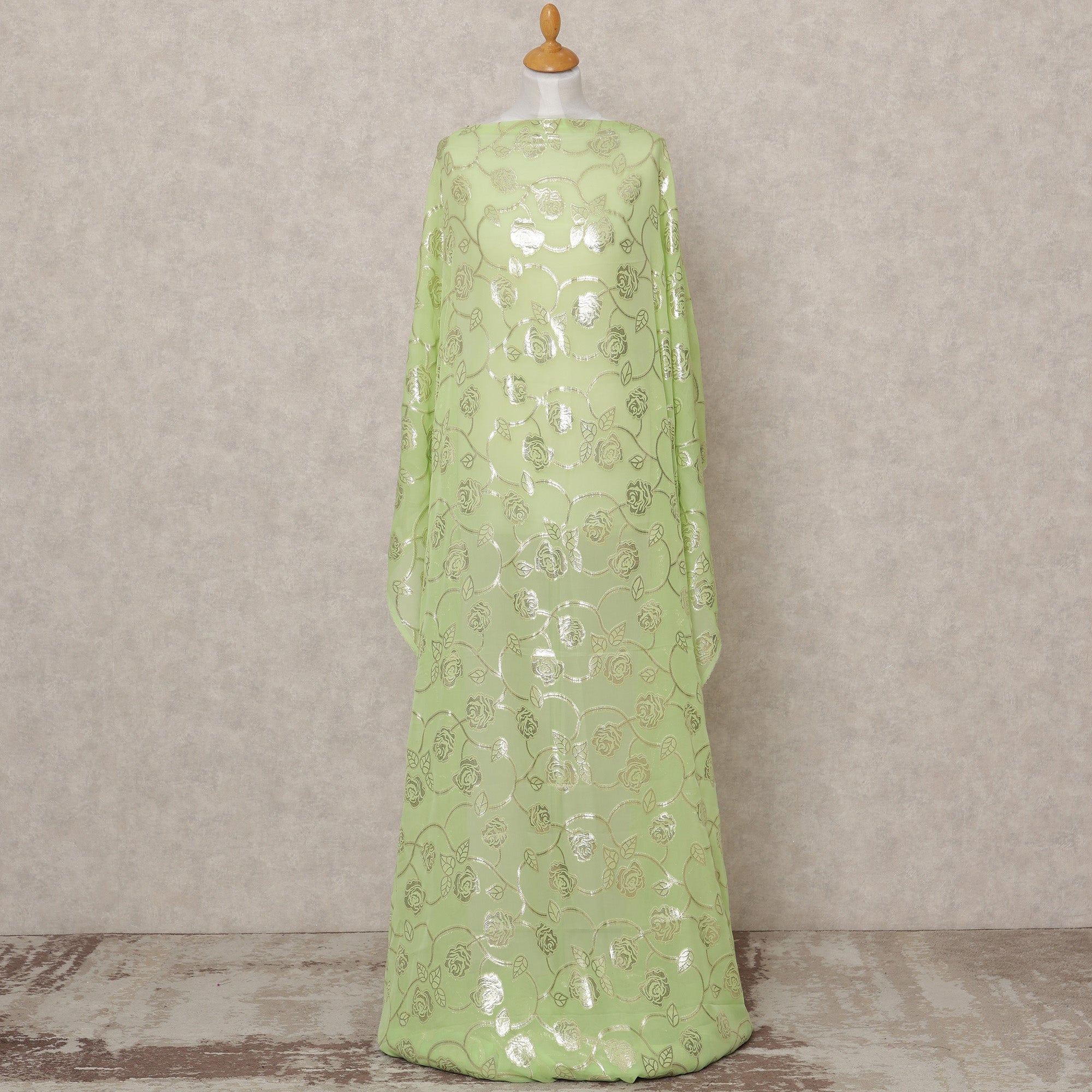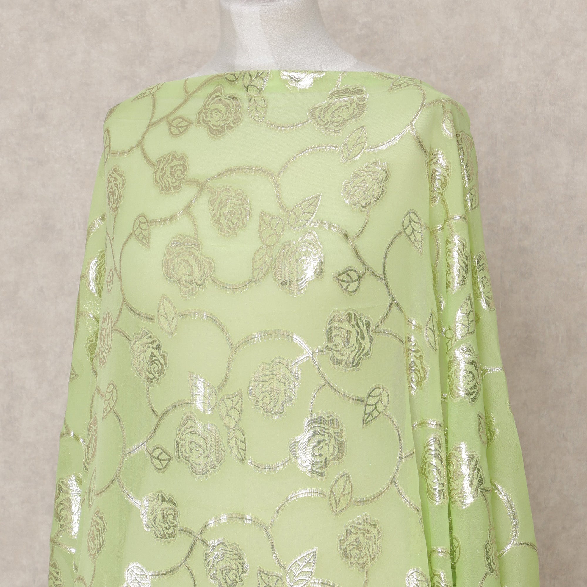 قماش ديراك شيفون حريري صومالي أخضر فستقي مع لوركس فضي معدني - 3.5 متر، عرض 140 سم، صنع في كوريا الجنوبية - D24538