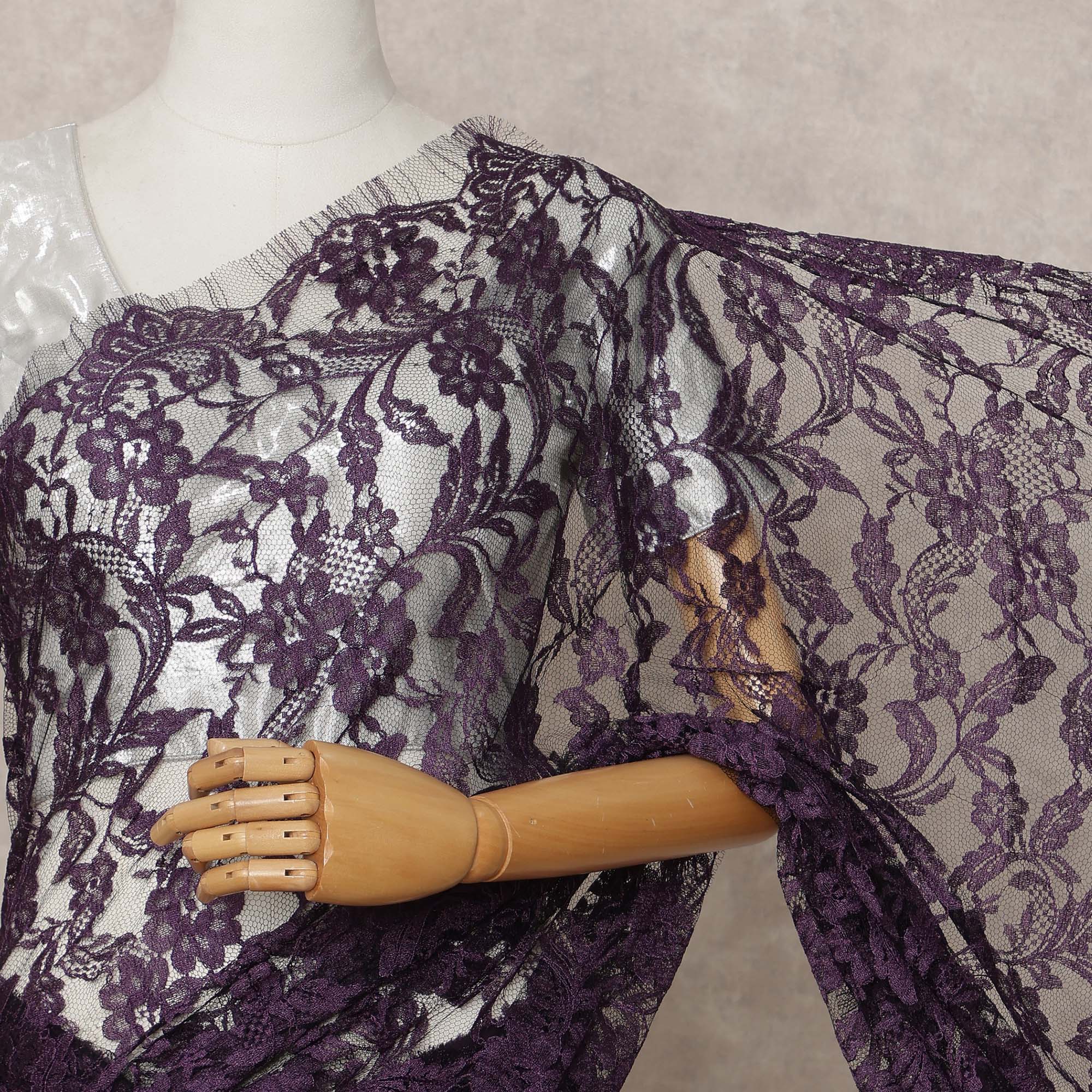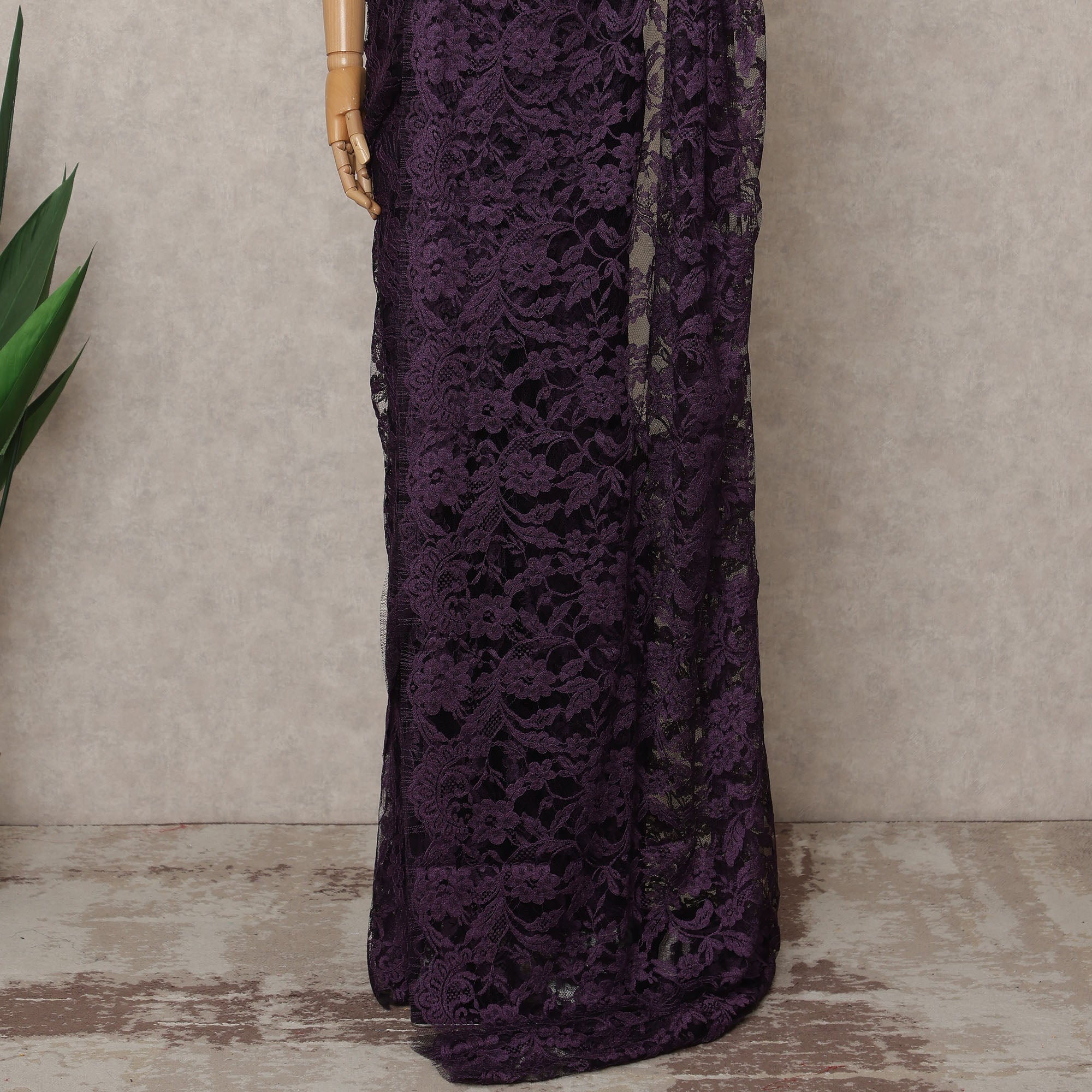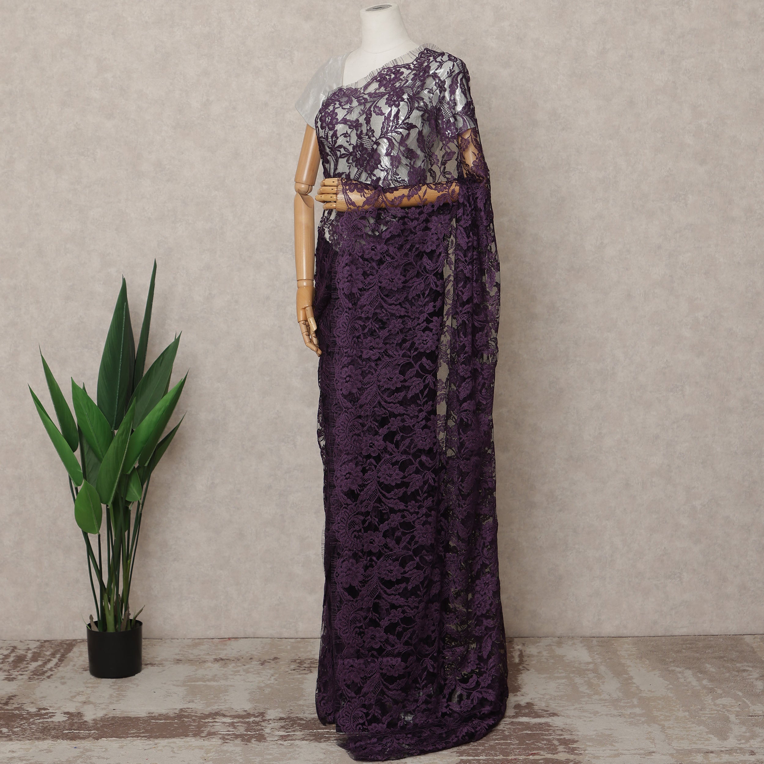 Plum Premium 2-Tone French Chantilly Lace Saree Fabric 5.5 Mtrs with 110 Cms Width – Imported from France-D25650