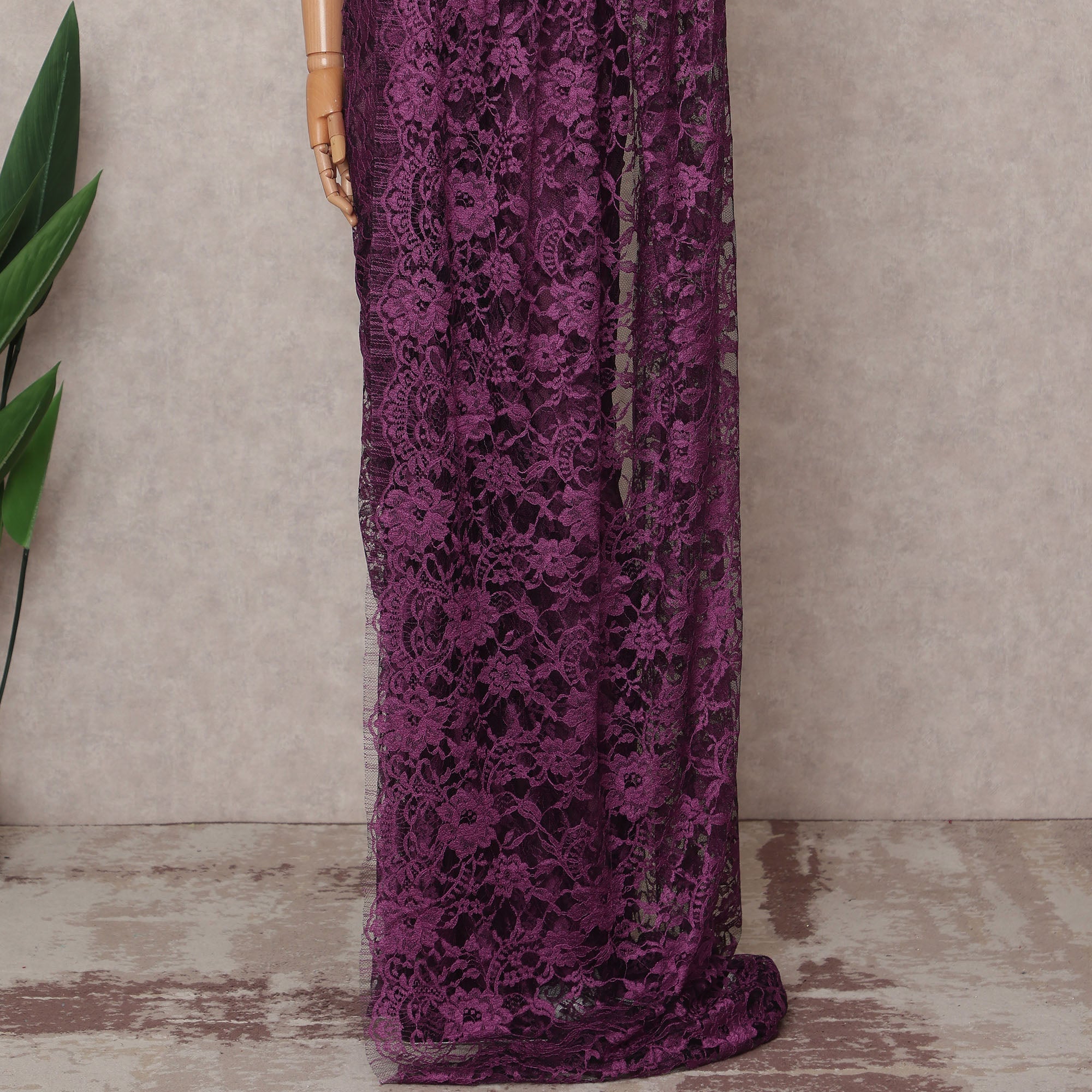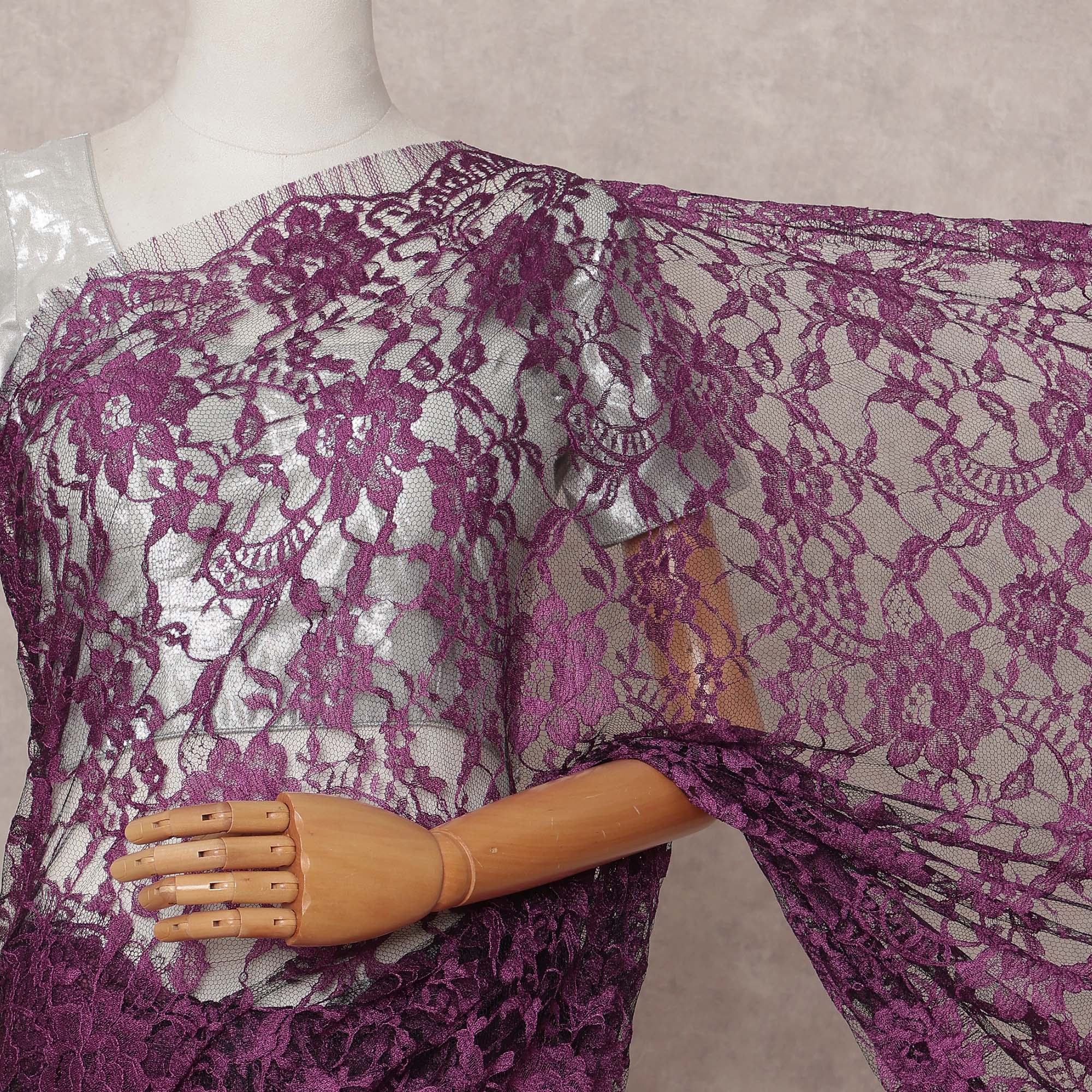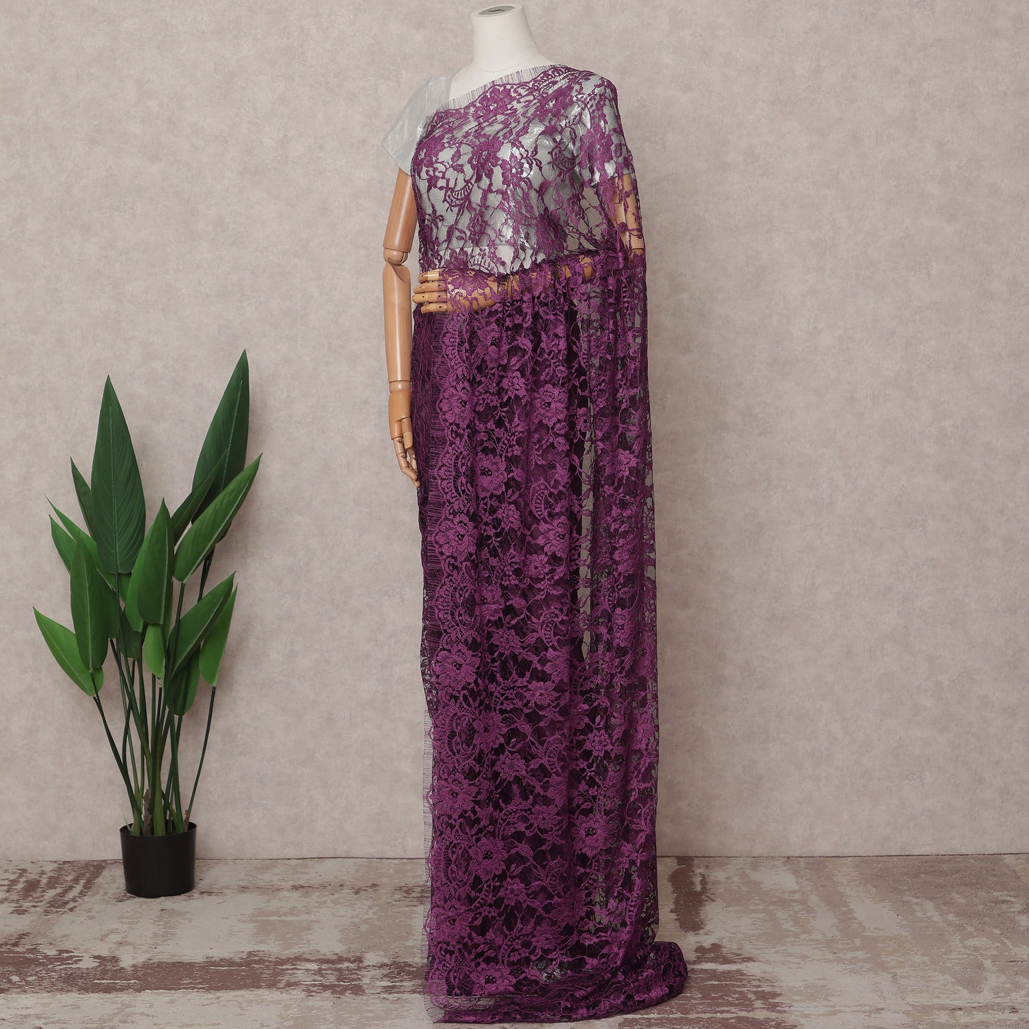 Plum Premium 2-Tone French Chantilly Lace Saree Fabric 5.5 Mtrs with 110 Cms Width – Imported from France-D25665