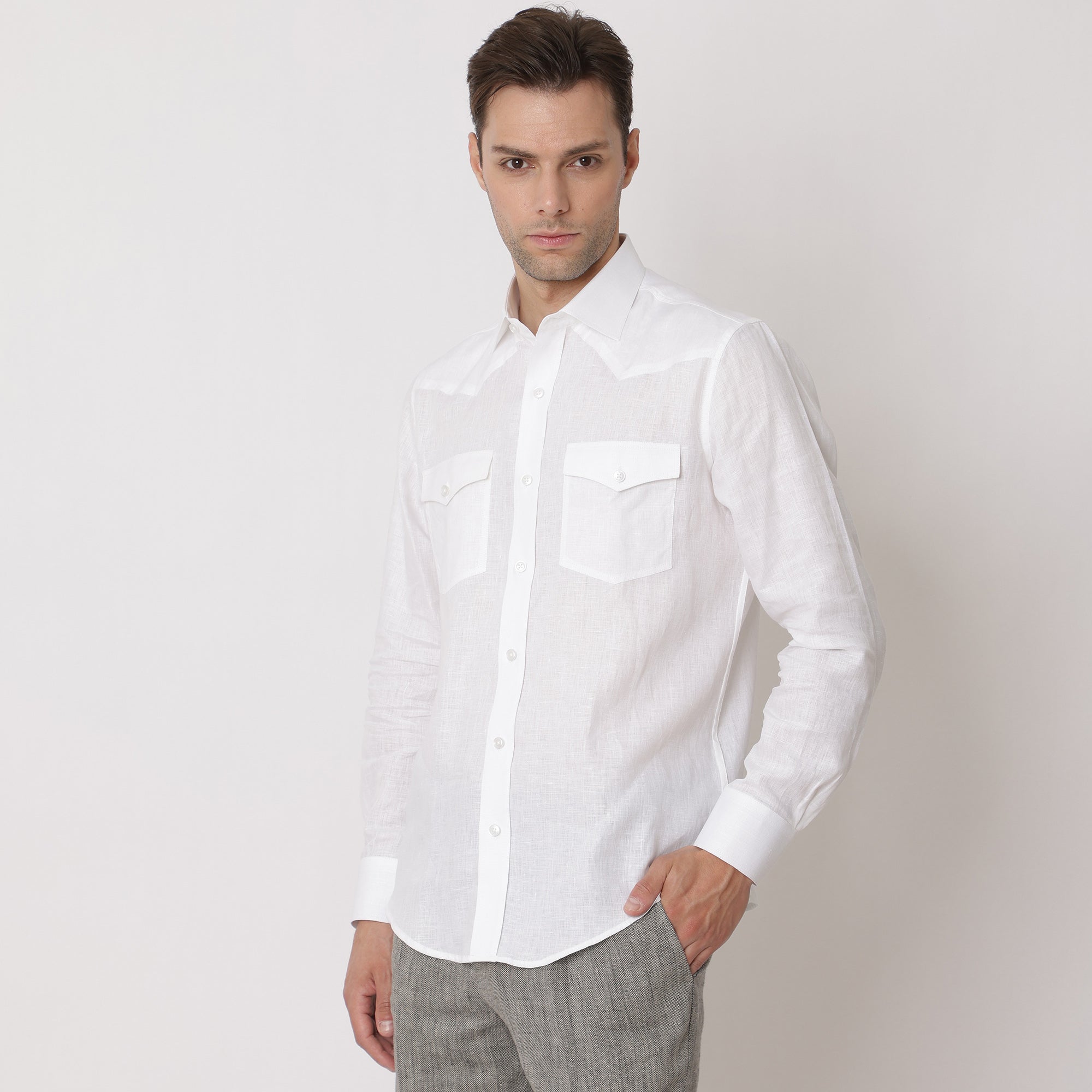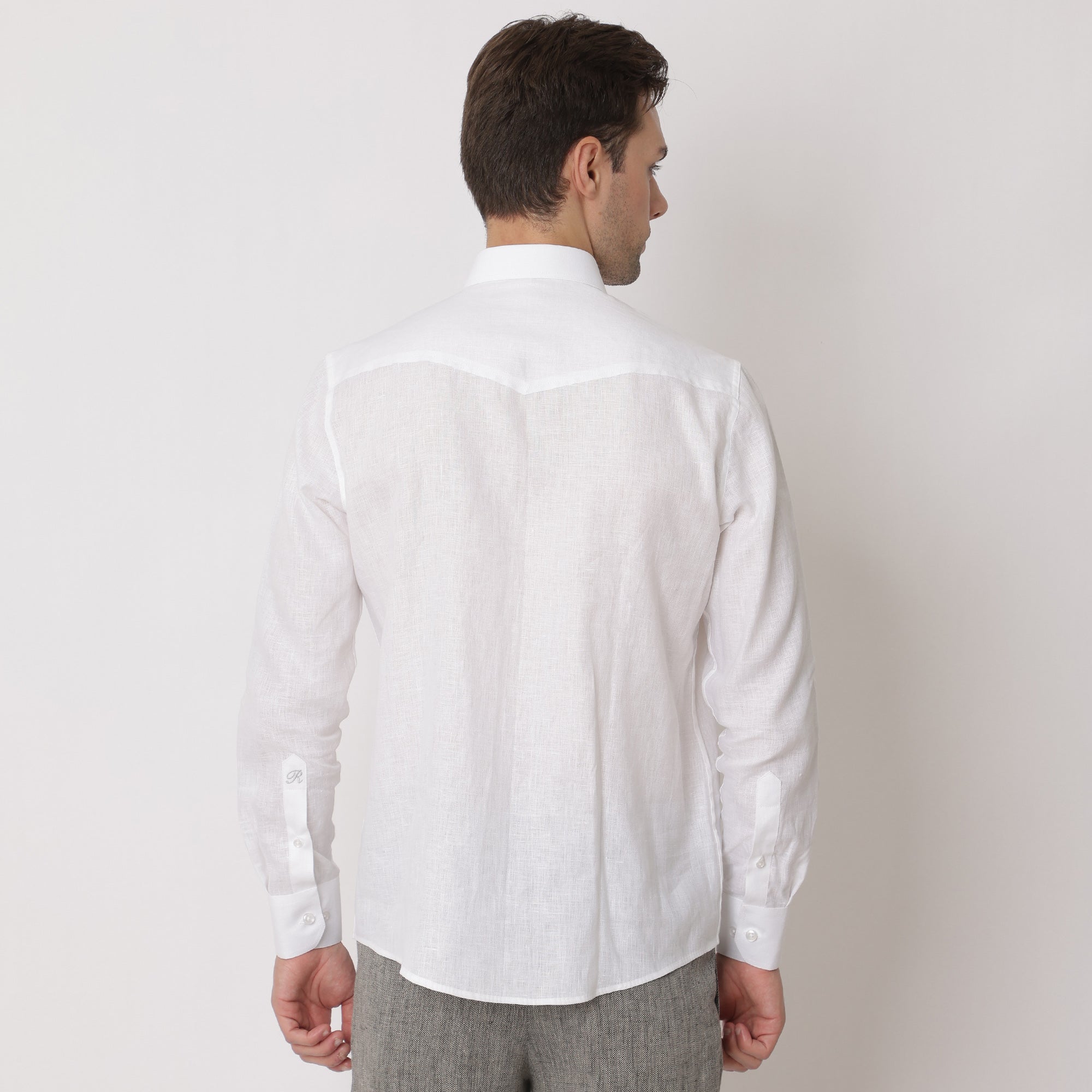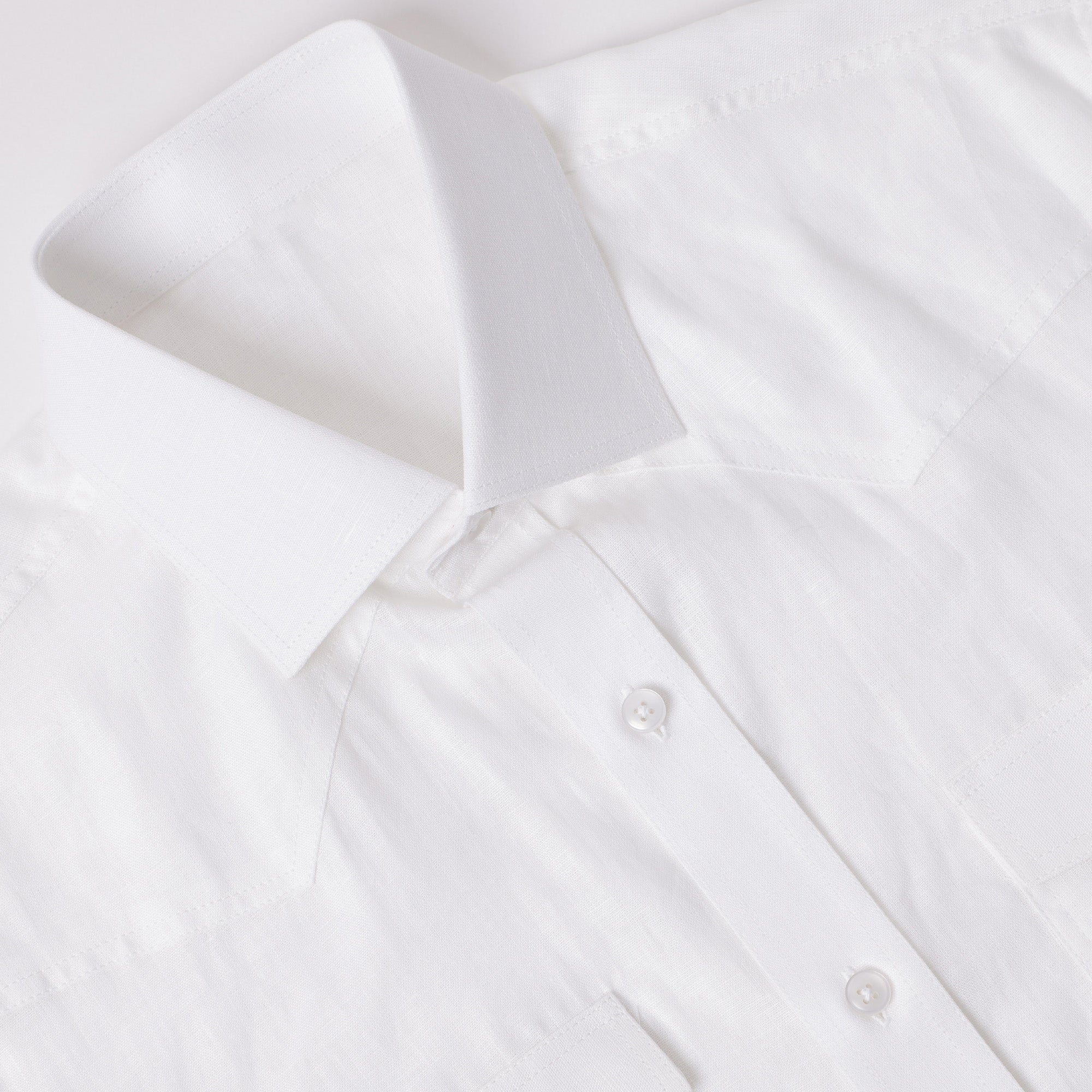 قميص كتان أبيض نقي فاخر بقصة كلاسيكية، صنع في الإمارات العربية المتحدة - D22006