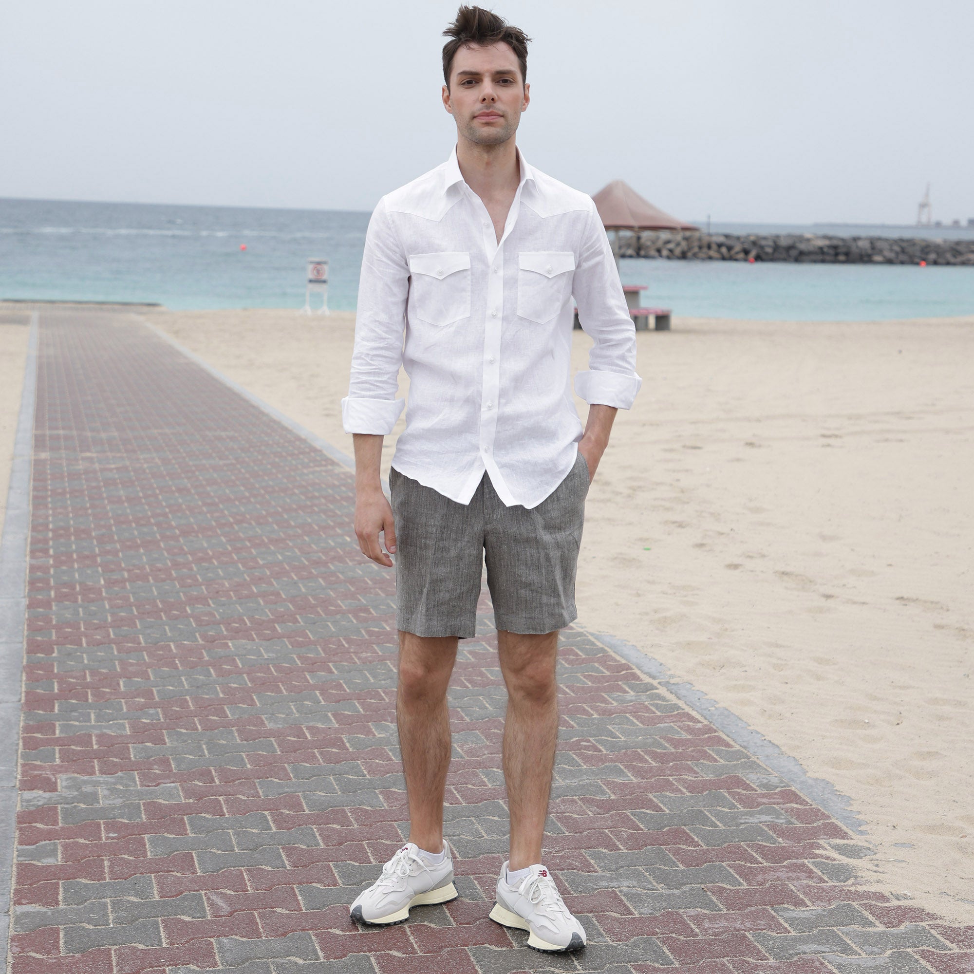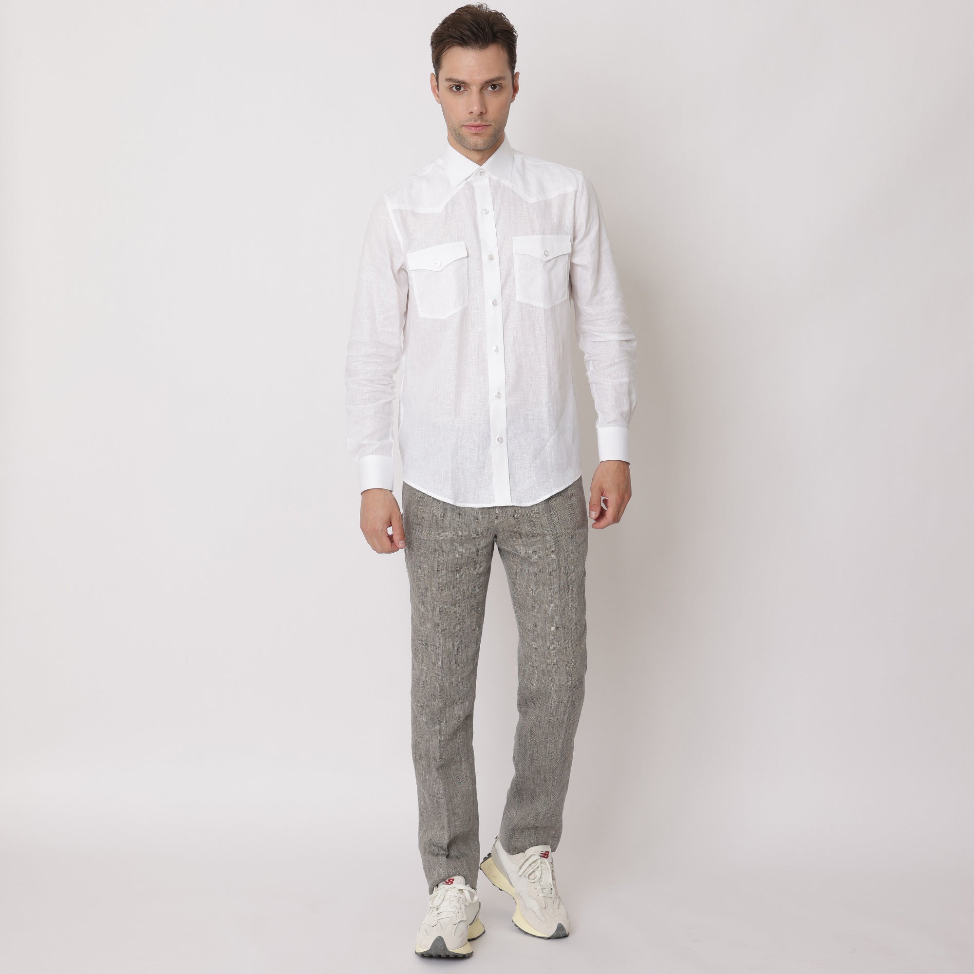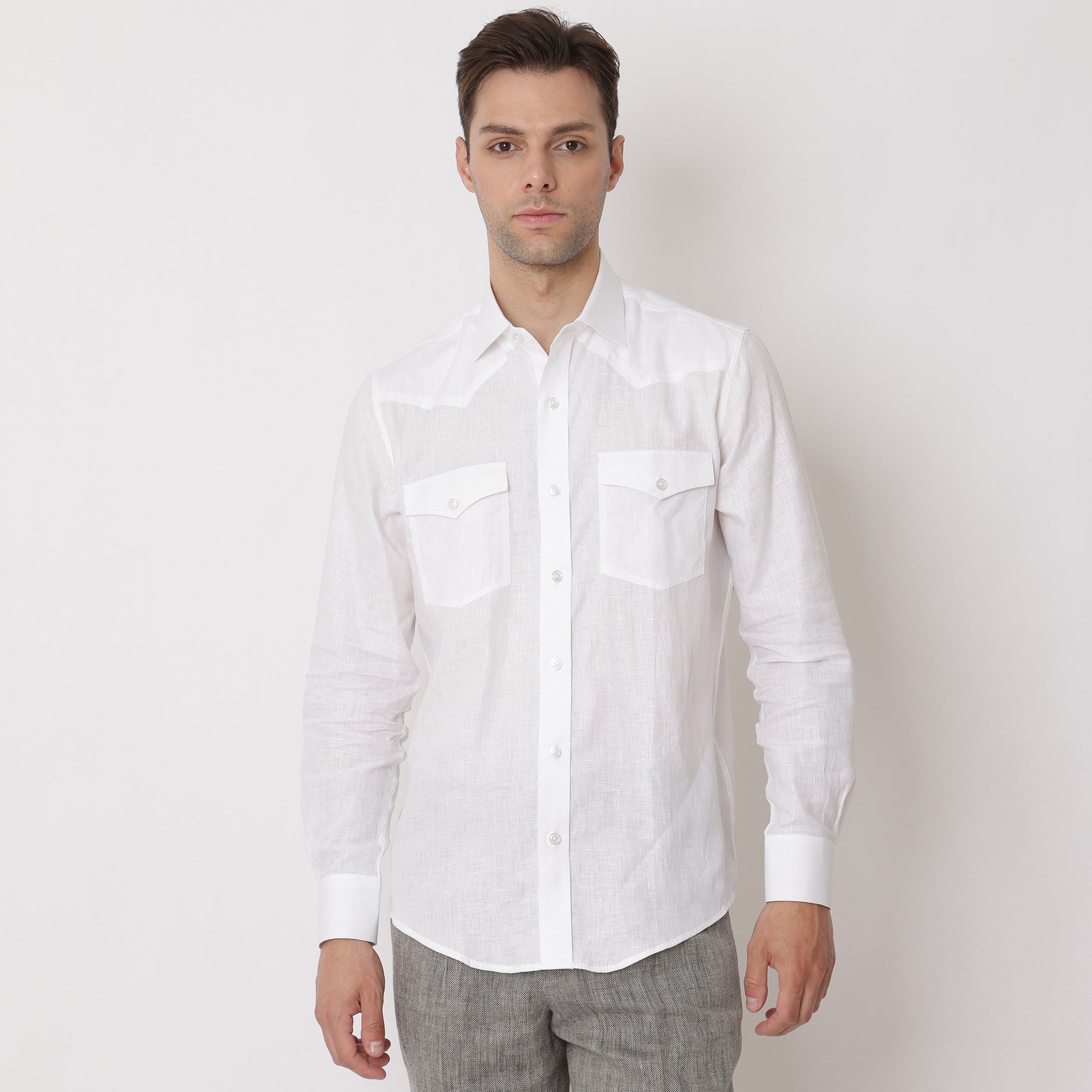 قميص كتان أبيض نقي فاخر بقصة كلاسيكية، صنع في الإمارات العربية المتحدة - D22006