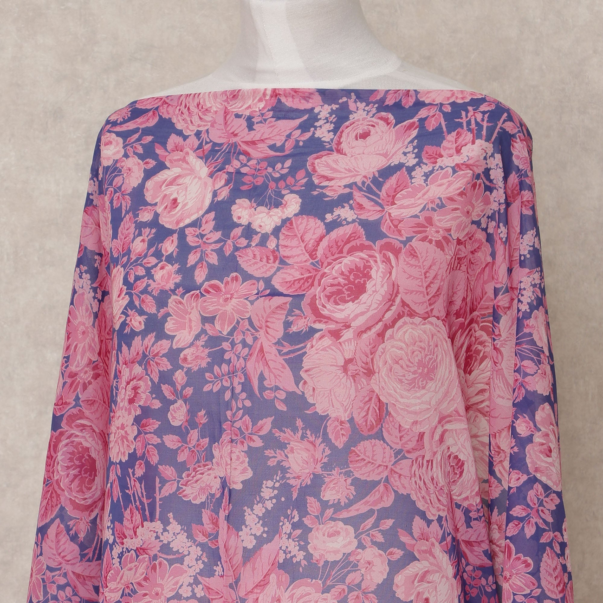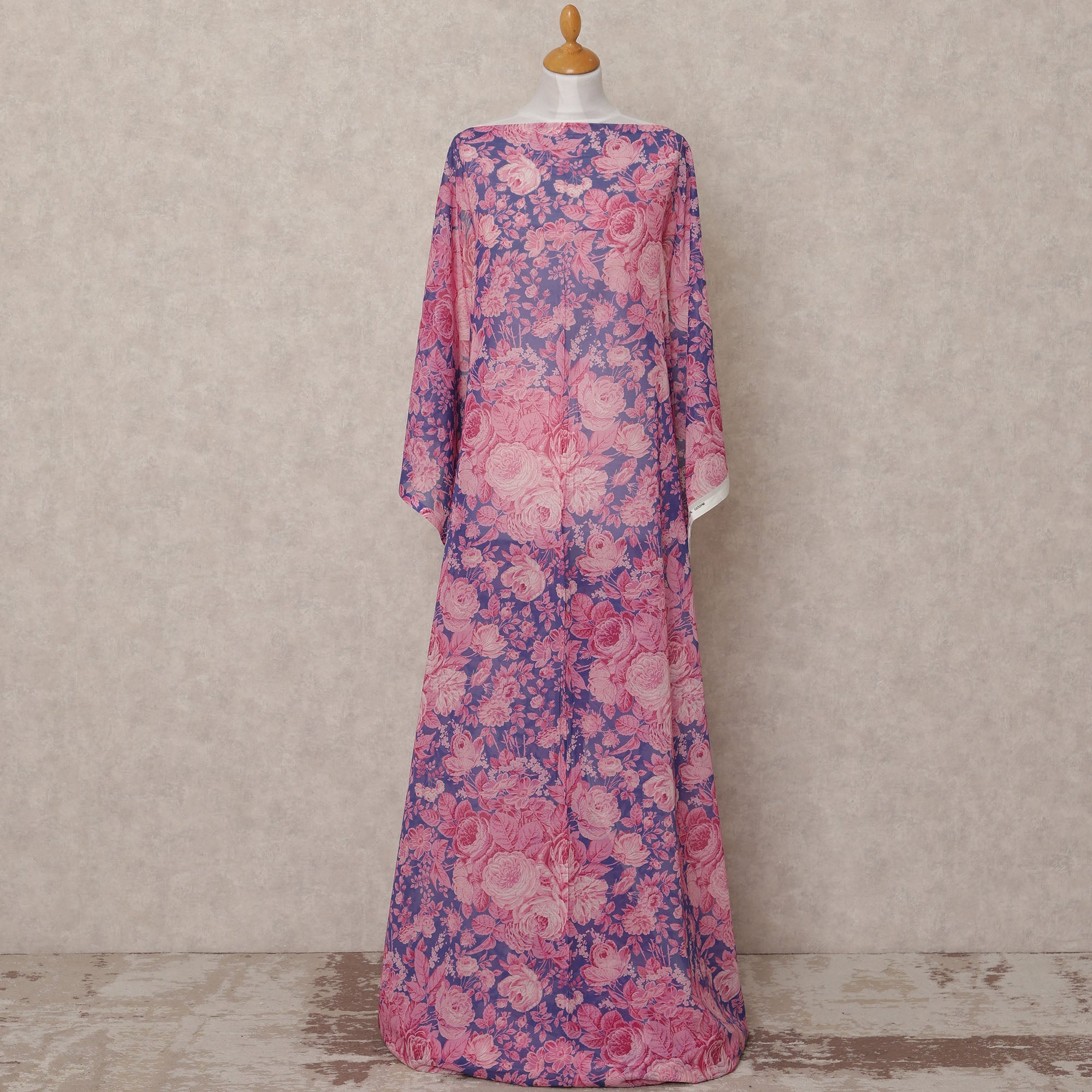 قماش ديراك تقليدي من القطن الصومالي، مزين بنقشة زهور بنفسجية ووردية، بطول 3.5 متر، وعرض 140 سم، صنع في إيطاليا - D24727