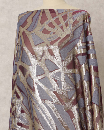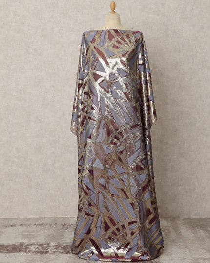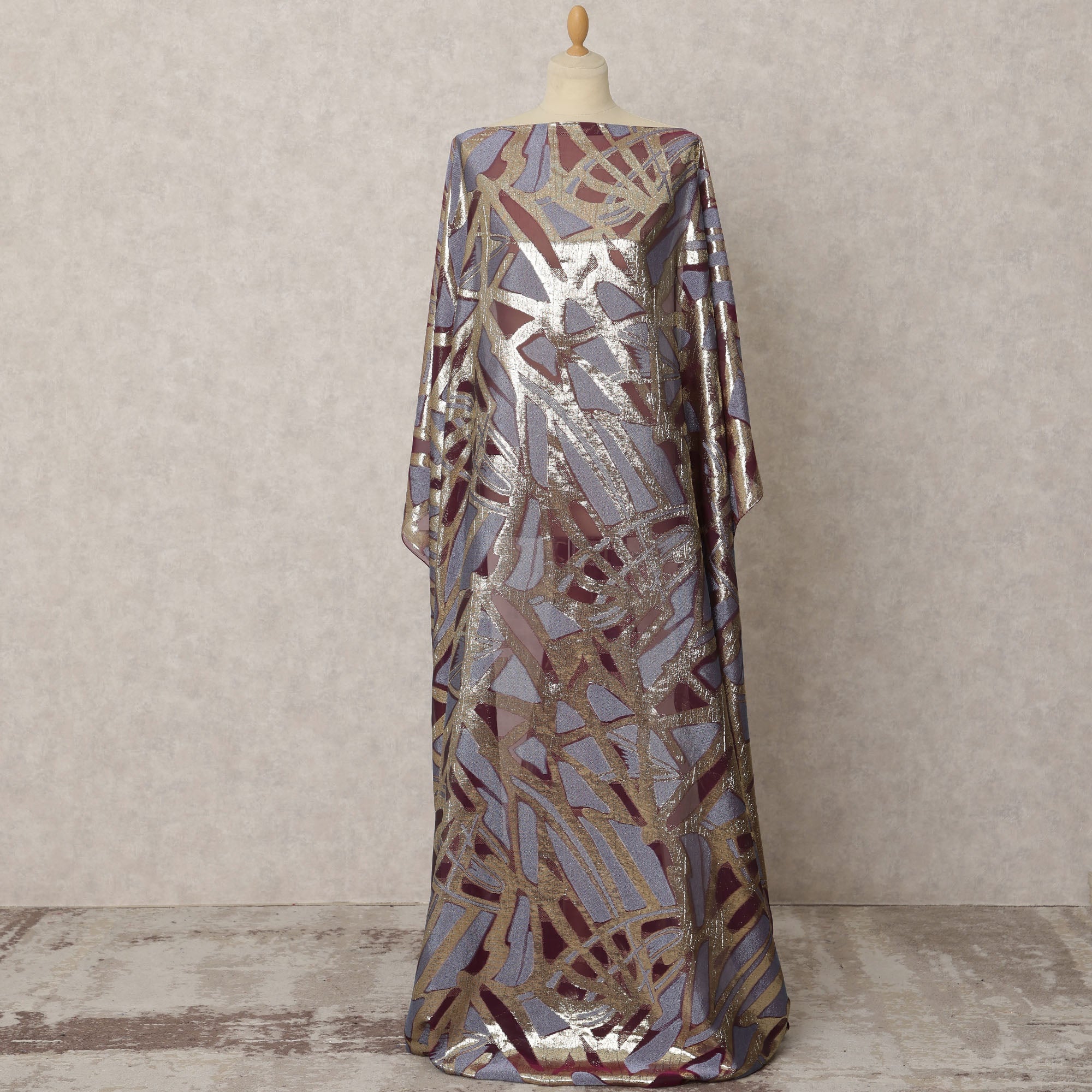 • قماش شيفون حرير ديراك من فرانساوي باللون البنفسجي والوردي مع لوركس معدني بتصميم تجريدي - 3.5 متر × 140 سم - D21782