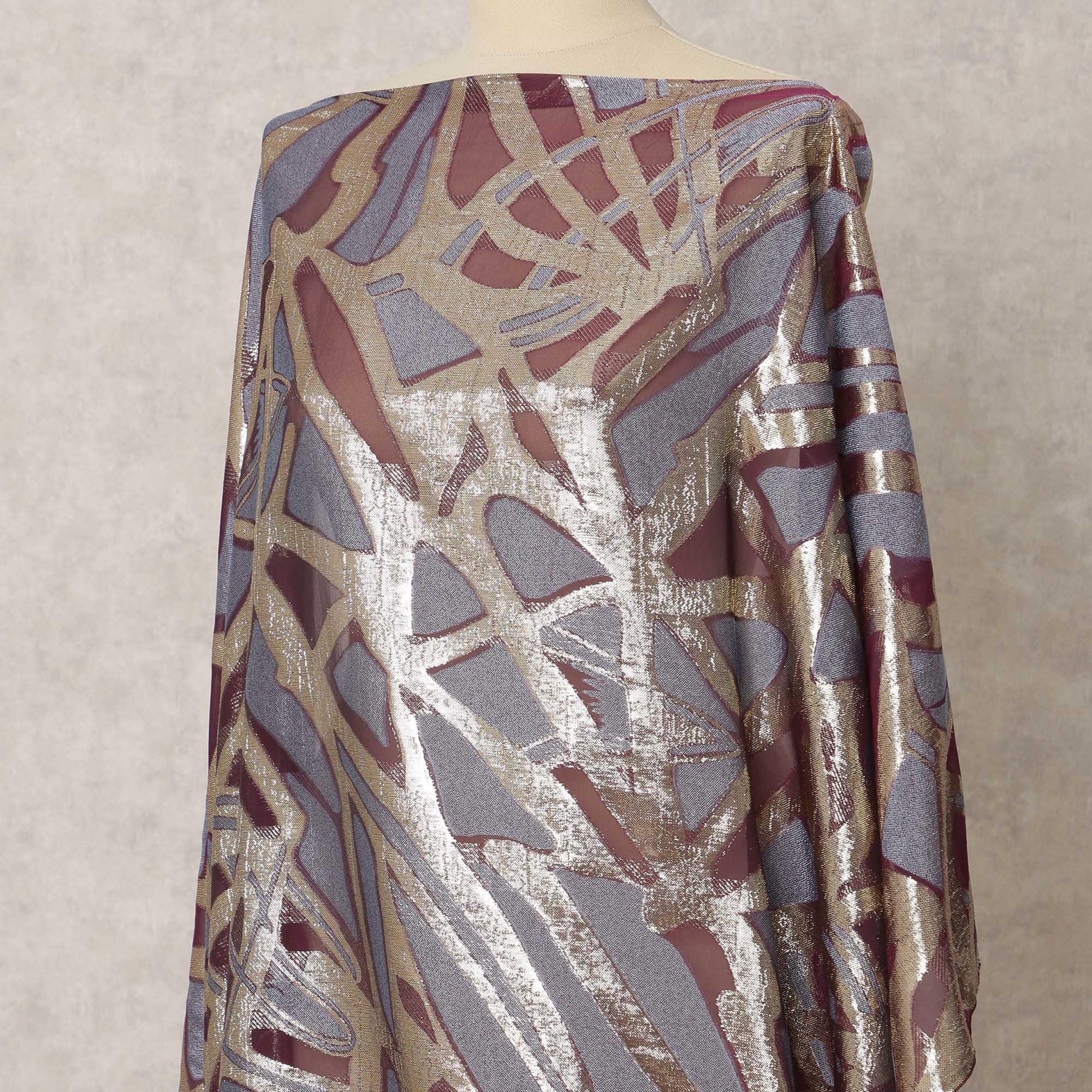قماش شيفون حرير فاخر بتصميم لوركس معدني جريء.