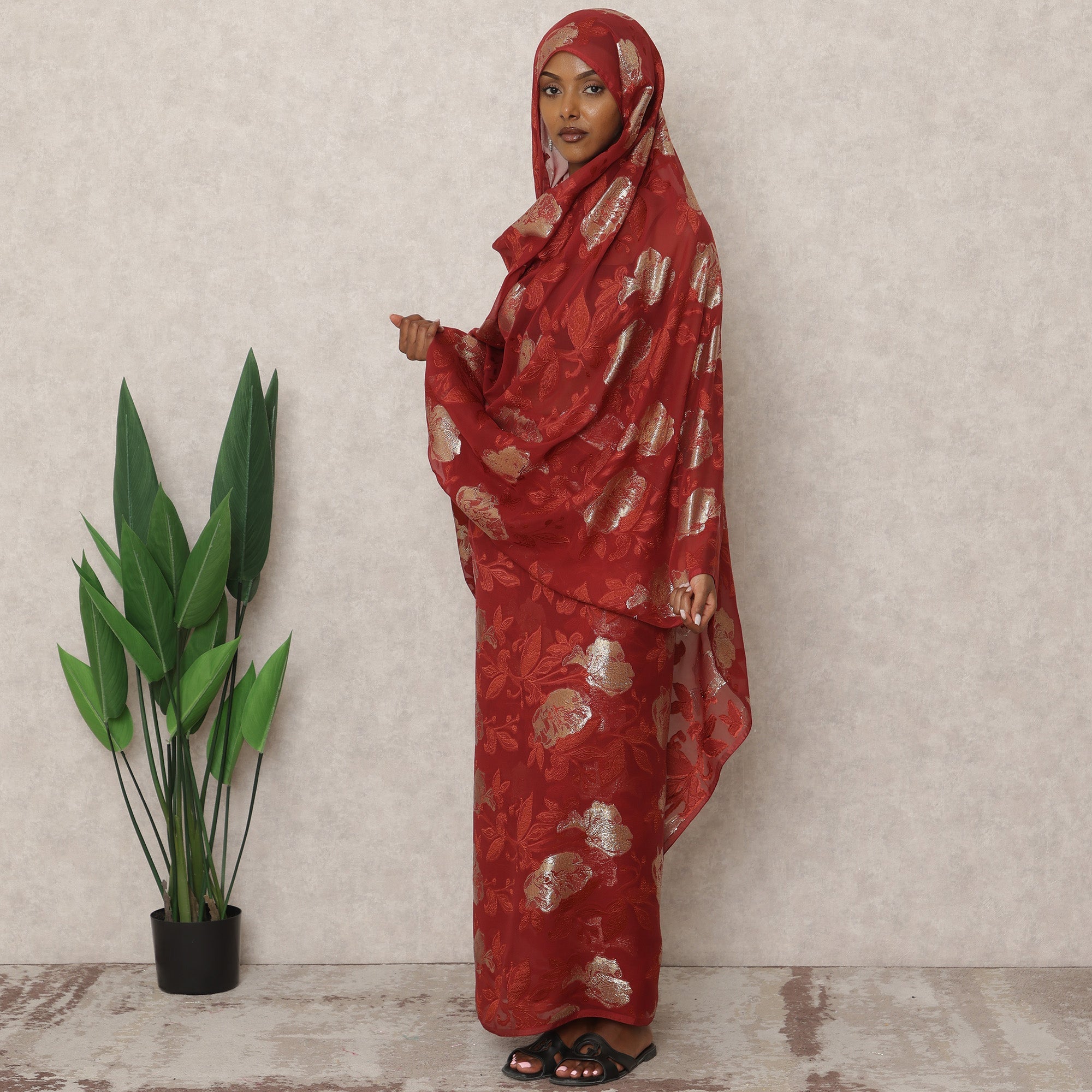 تألقي بإطلالة جريئة وملكية مع هذا الثوب السوداني التقليدي الفرنسي الأحمر، المصنوع من قماش شيفون حريري فرنسي فاخر بطول 4.5 أمتار، منسوج بدقة متناهية مع نقوش زهور لوريكس معدنية لامعة. يمزج لونه القرمزي الغني مع زخارف ذهبية لامعة، مما يعكس أناقةً وتراثًا عريقًا، مما يجعله خيارًا رائعًا للاحتفالات والتجمعات الثقافية. صُمم هذا الثوب بعرض 140 سم، ويتيح لك إمكانية ارتدائه بانسيابية وسهولة في التصميم، ليعكس مزيجًا مثاليًا من الحرفية الفرنسية والتقاليد السودانية. مثالي لمن يبحثون عن ملابس عرقية فاخرة عبر الإنترنت، حيث يجمع بين الخفة والفخامة، ويضمن لهم الراحة والفخامة في آن واحد.