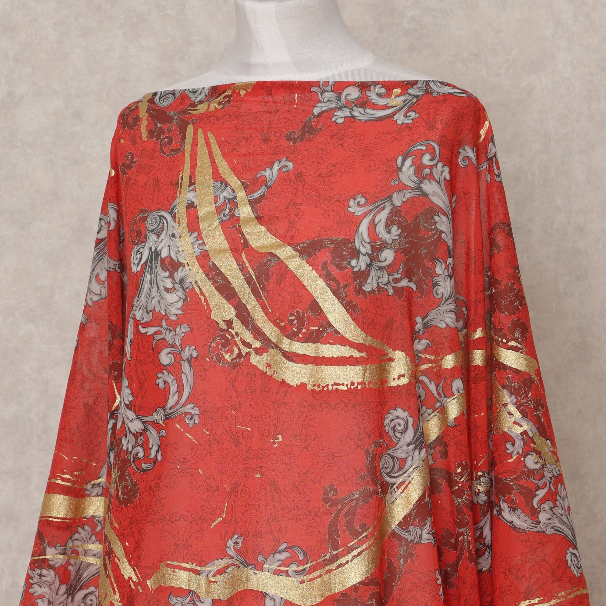 • أُوكَازيُون -50% قماش ديراك صومالي تجريدي باللون الأحمر الذهبي الرمادي، 3.5 متر، عرض 150 سم، صنع في إيطاليا - D24635