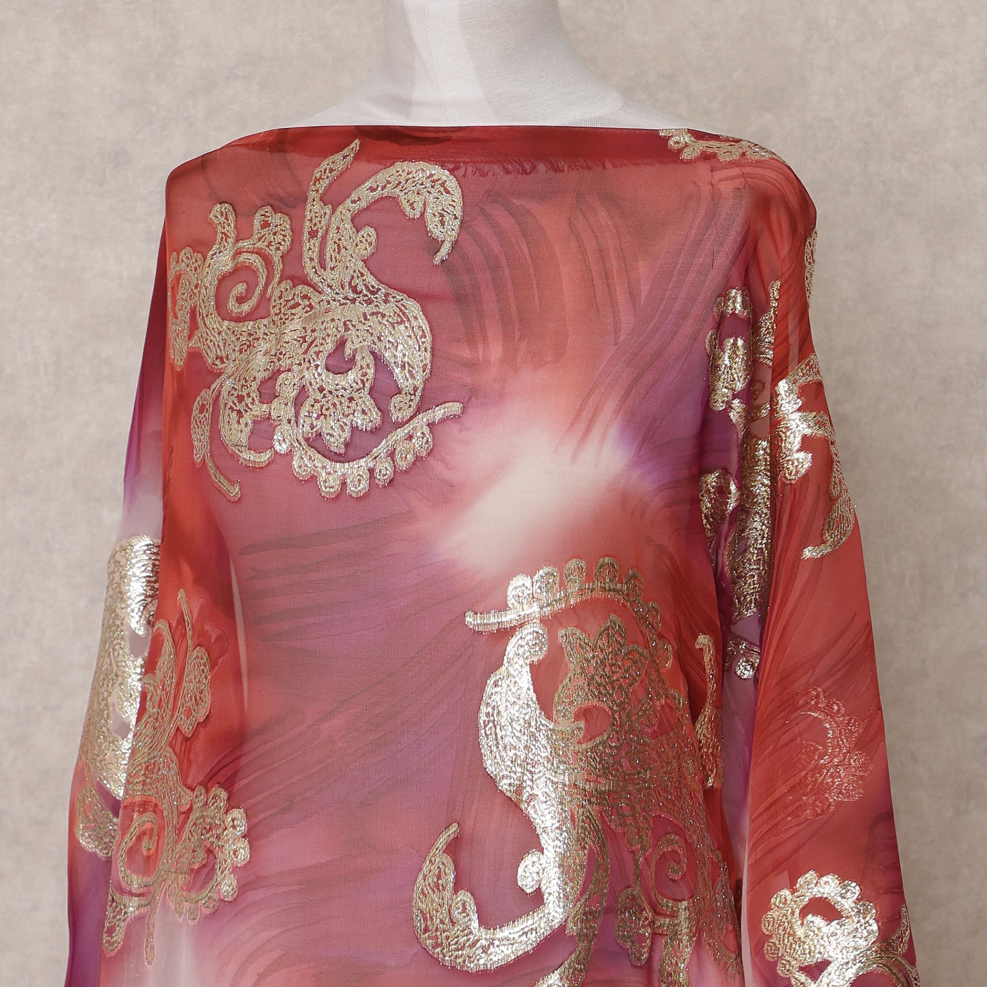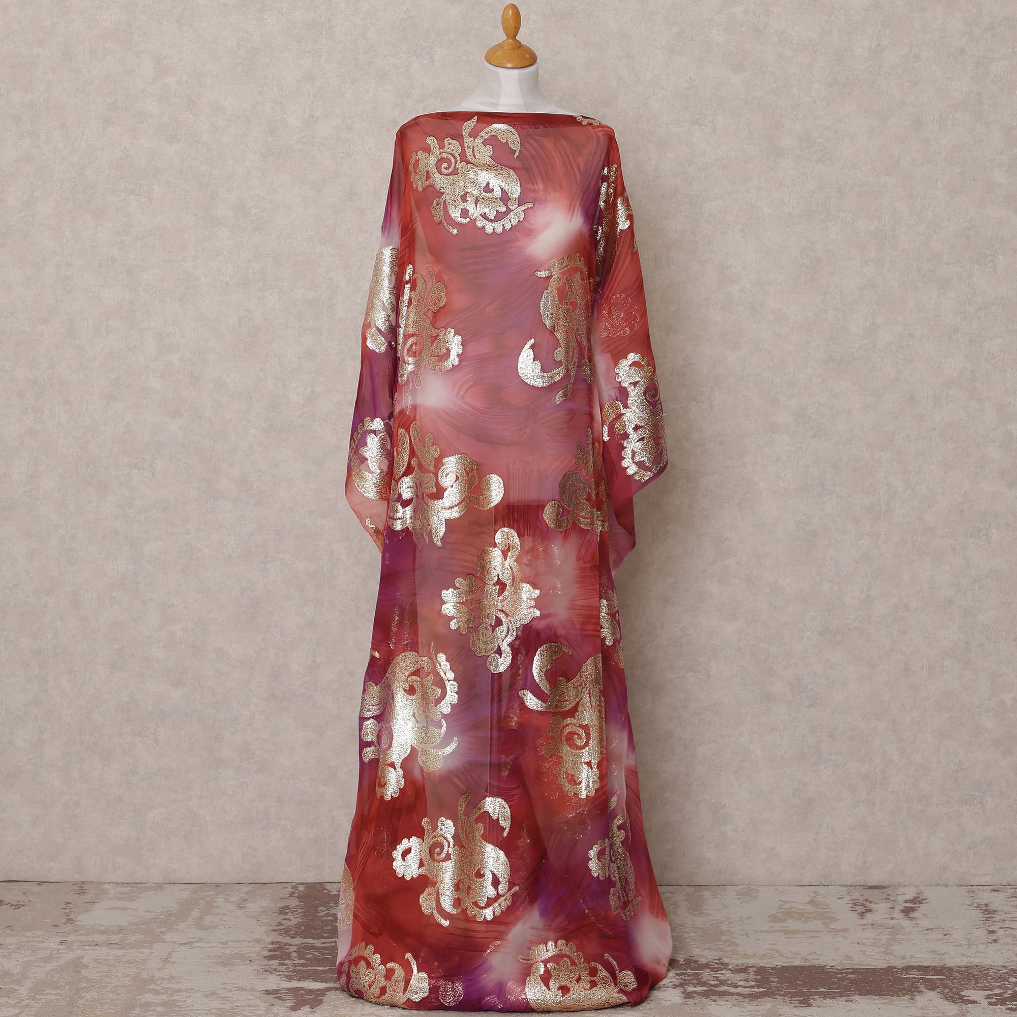 قماش ديراك شيفون حريري صومالي تقليدي أحمر أرجواني مع لوركس معدني، 3.5 متر، عرض 140 سم، صنع في كوريا الجنوبية - D25036