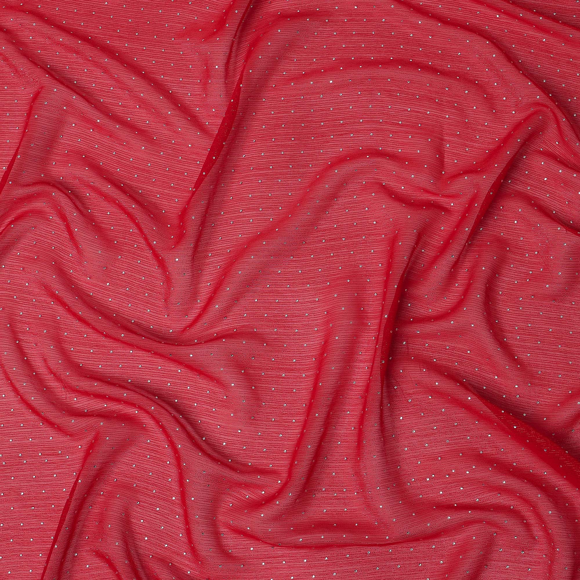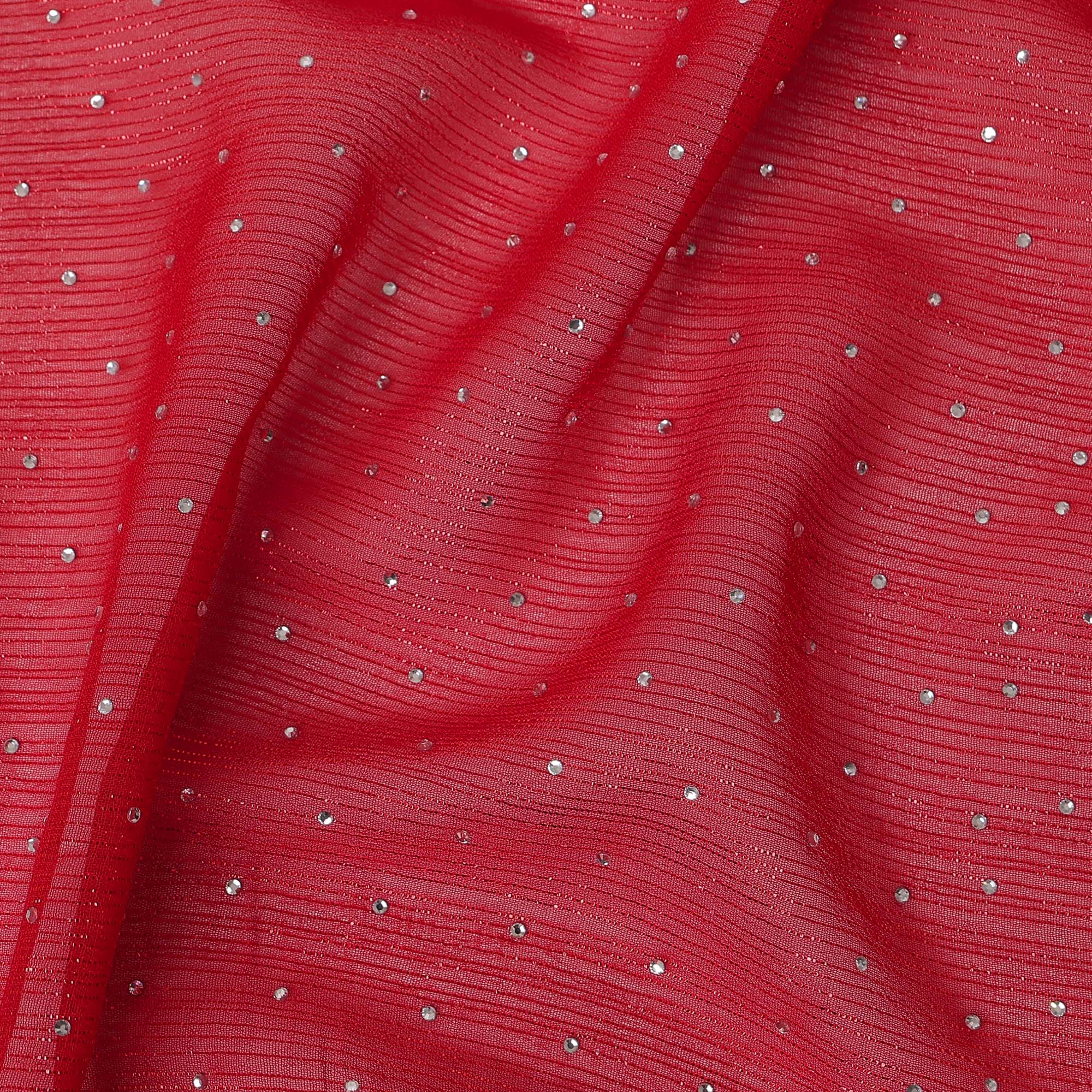 Red Synthetic Chiffon Traditional Sudanese Thobe with Stone Work, 4.5 Mtrs Piece, Width 110 Cms, Made in India-D26447