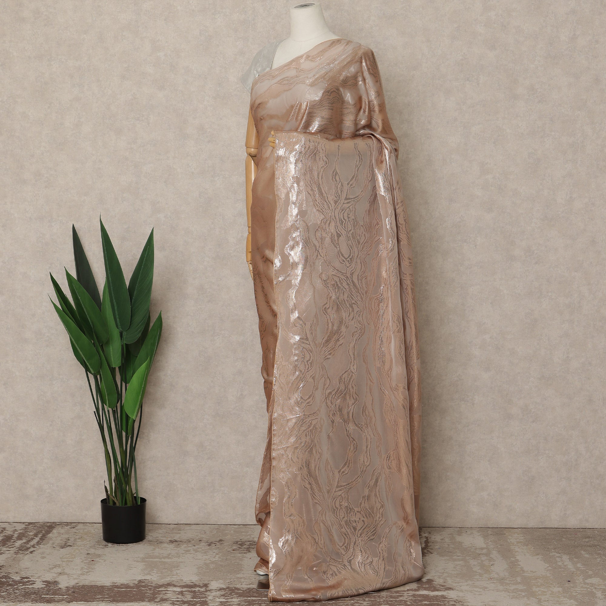 Rose Gold Brown Premium French Silk Chiffon Saree With Metallic Abstract Woven Design 5.5 Mtrs Length 110 Cms Width, Made in France and Blouse Not Included-D27228