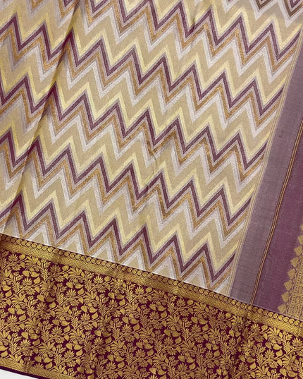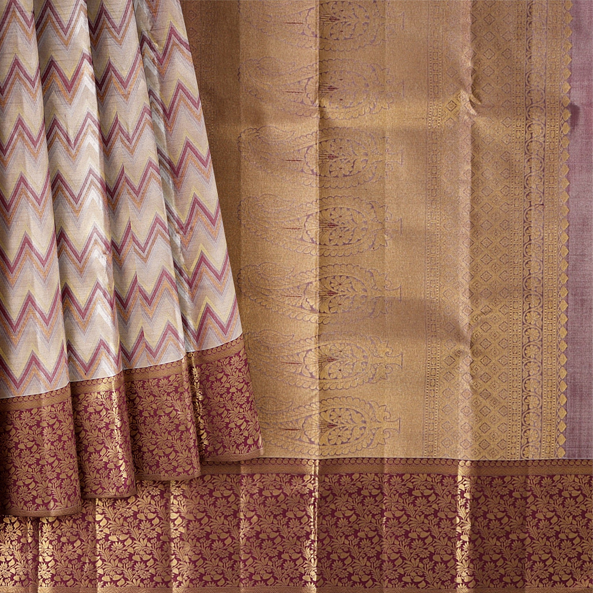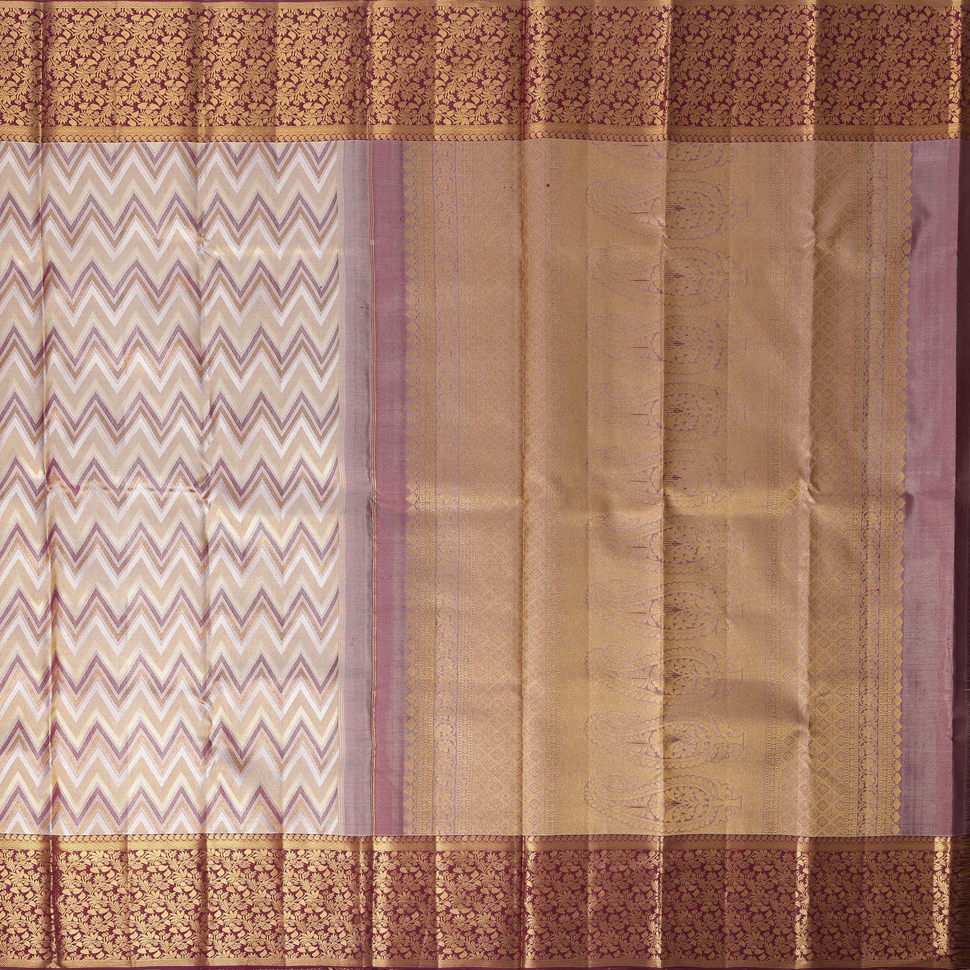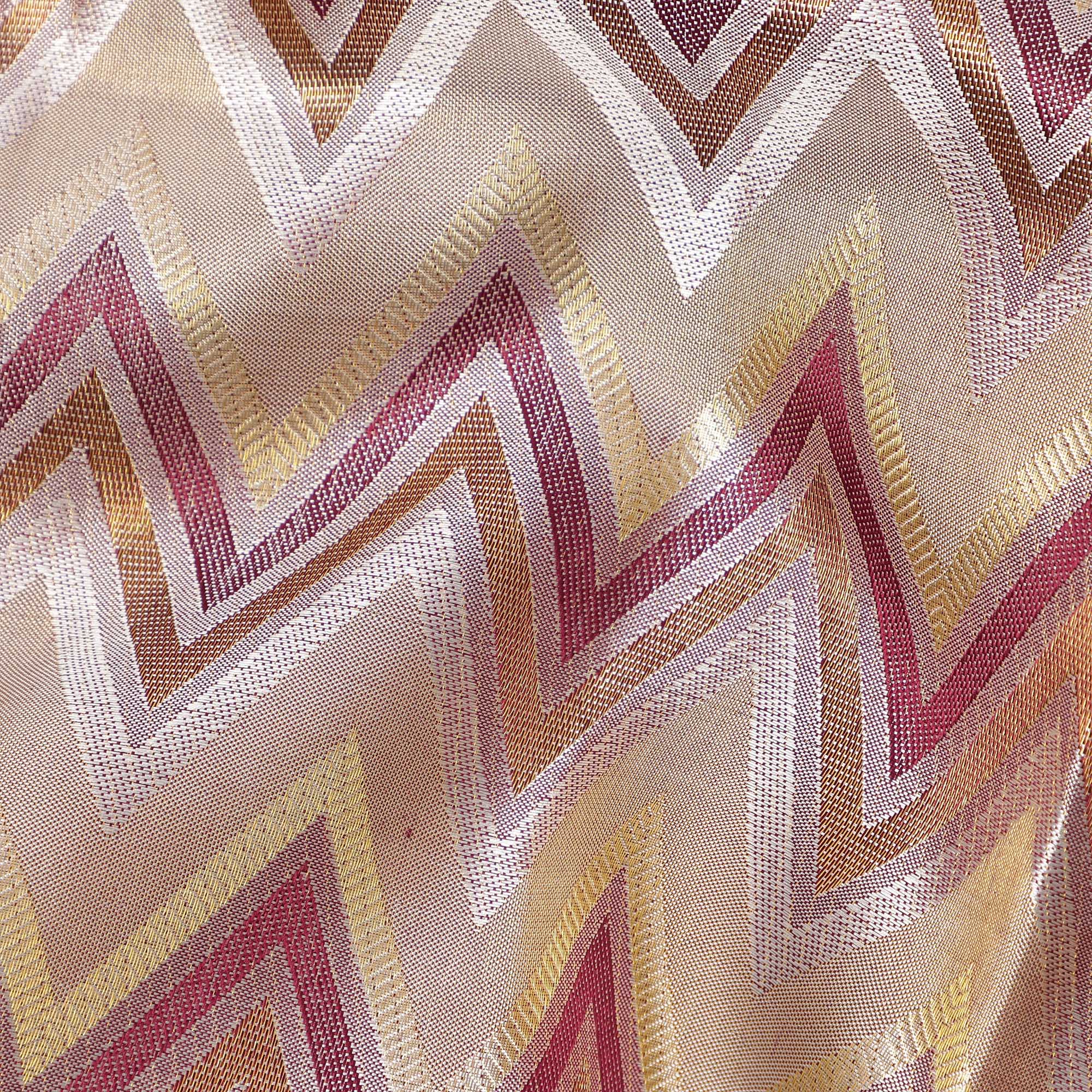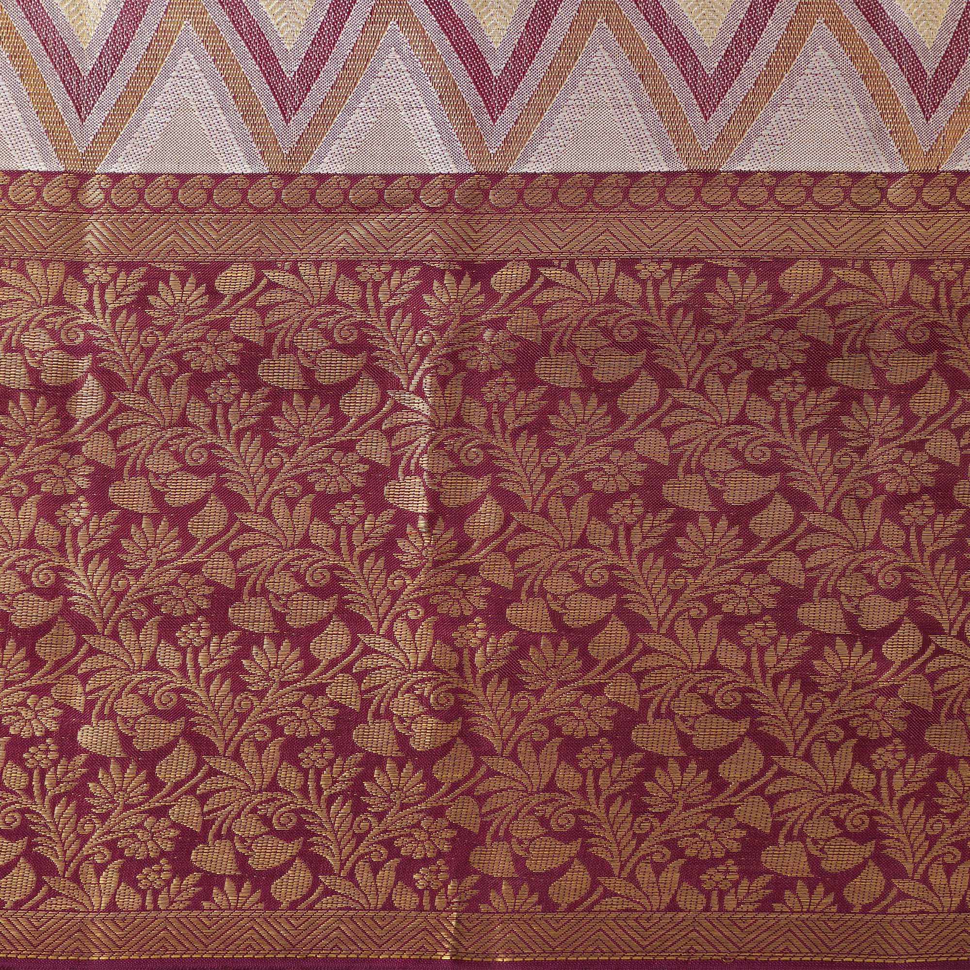 ساري كانجيفارام من الحرير الخالص باللون الوردي والأحمر الداكن بتصميم متعرج هندسي منسوج يدويًا وحواف زاري زهرية غنية، بطول 5.5 متر مع قطعة بلوزة، من أصل هندي - D22718