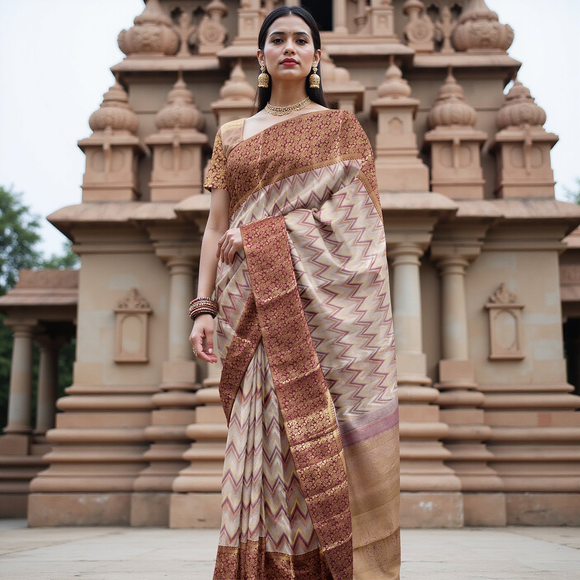 يمنح قماش الحرير الخالص للساري ملمسًا غنيًا وثنية متدفقة.