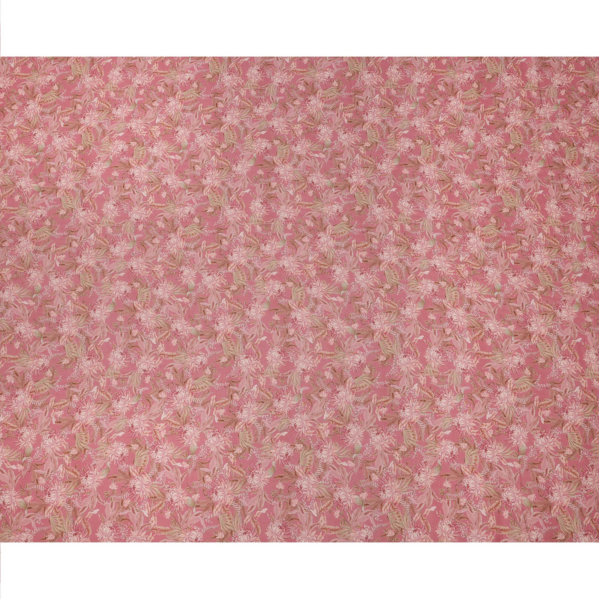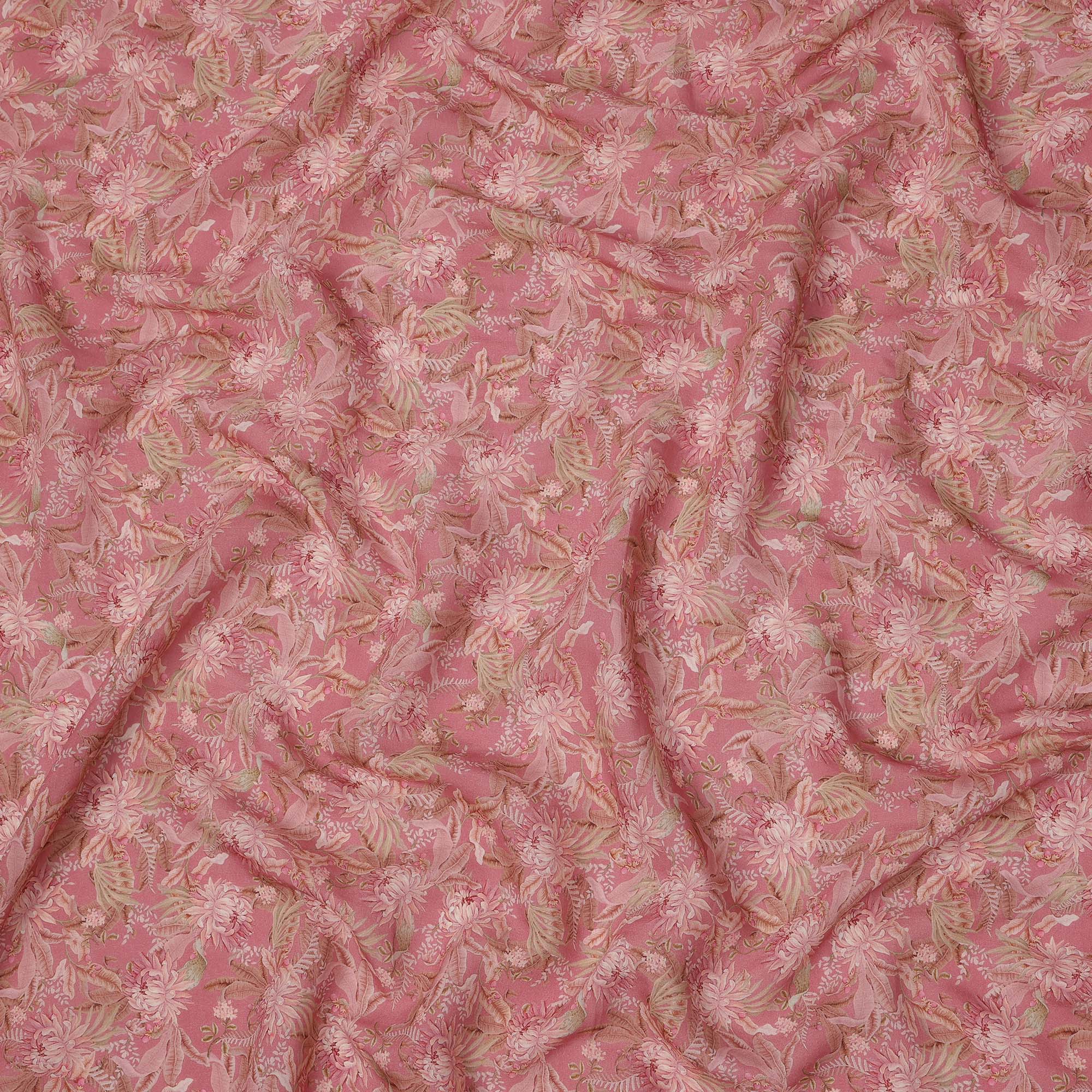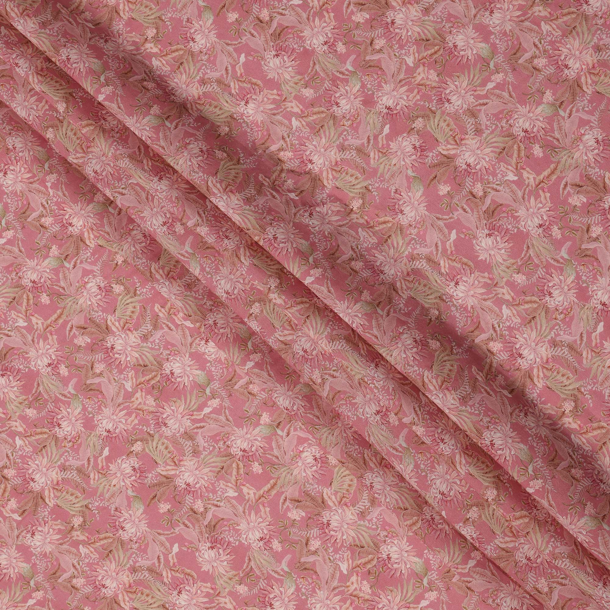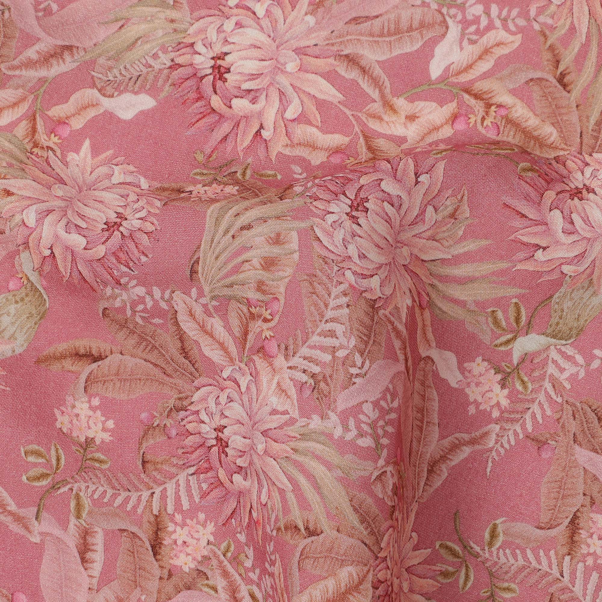 قماش كريب فيسكوز بطبعة زهور استوائية، قاعدة وردية وردية، لون بيج وزيتوني فاتح، عرض 110 سم، صنع في الهند - D23981